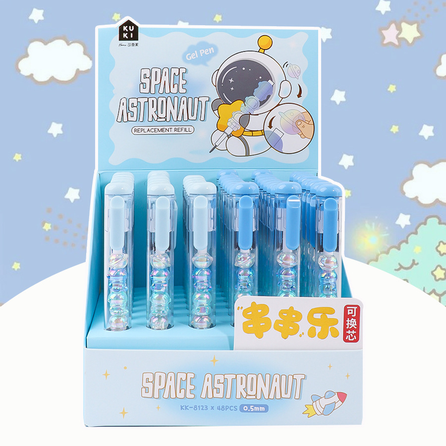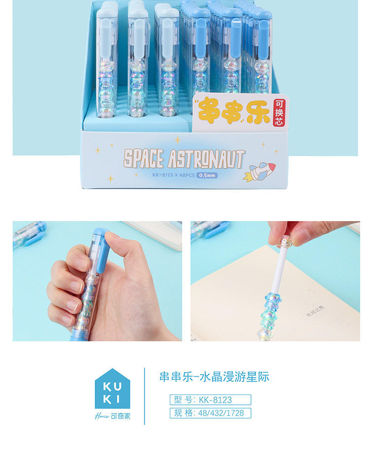 Keqi 크리에이티브 크리스탈 우주 비행사 현악 젤 펜 귀여운 만화 학생 문구 사이드 프레스 블랙 프레스 펜