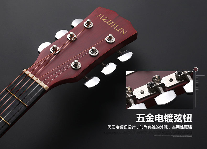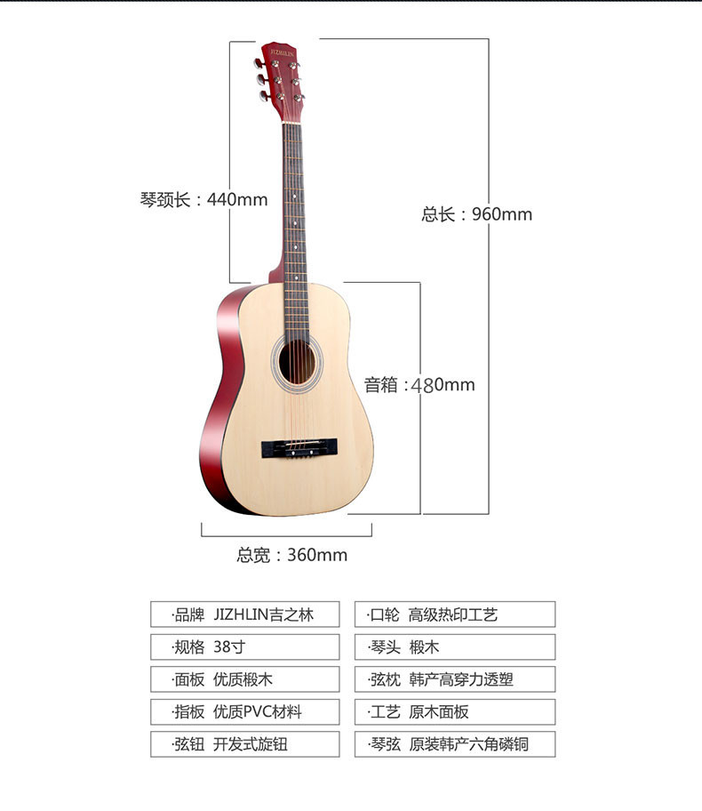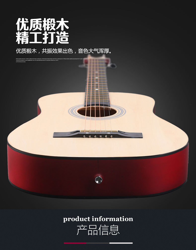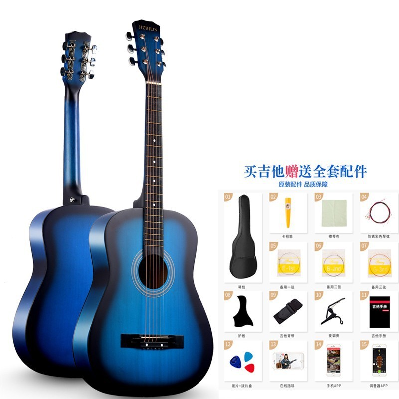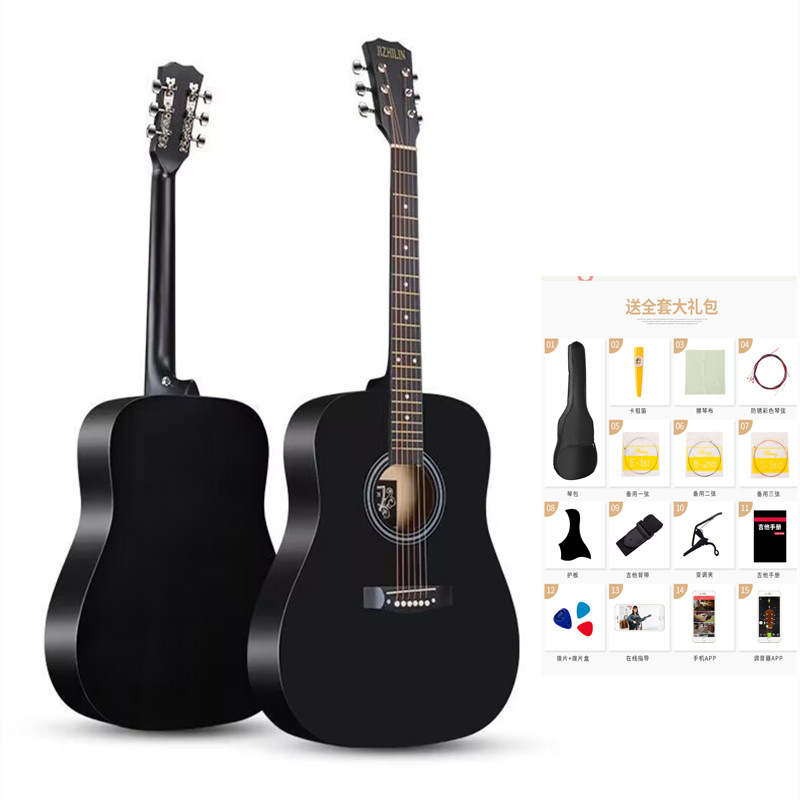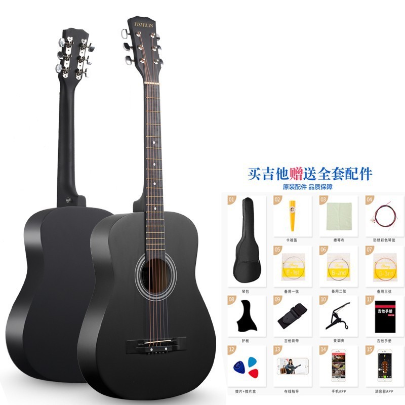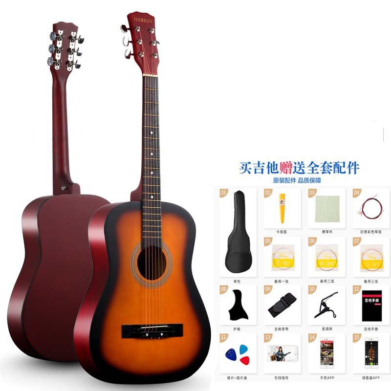공장에서 제작한 포크 기타(둥근 모서리) 38inch 41inch 초보자용 연습 악기, 풀세트 제공, 직배송