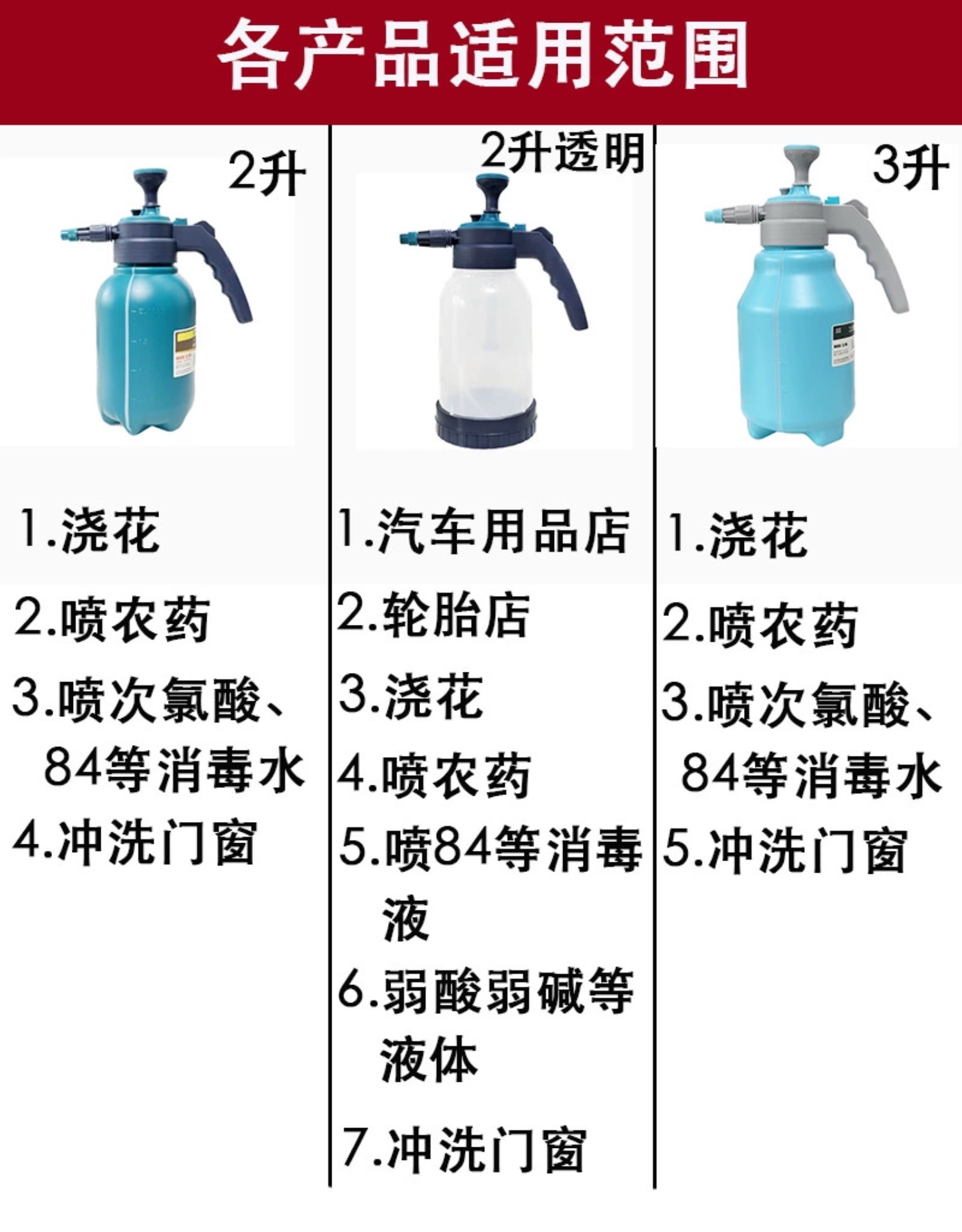 • 2리터 분사 가능한 폼과 물 분사 기능이 있는 다기능 투명 모델