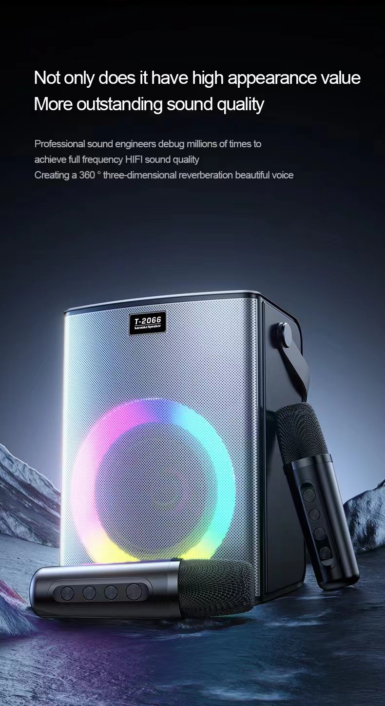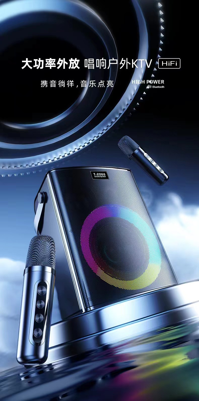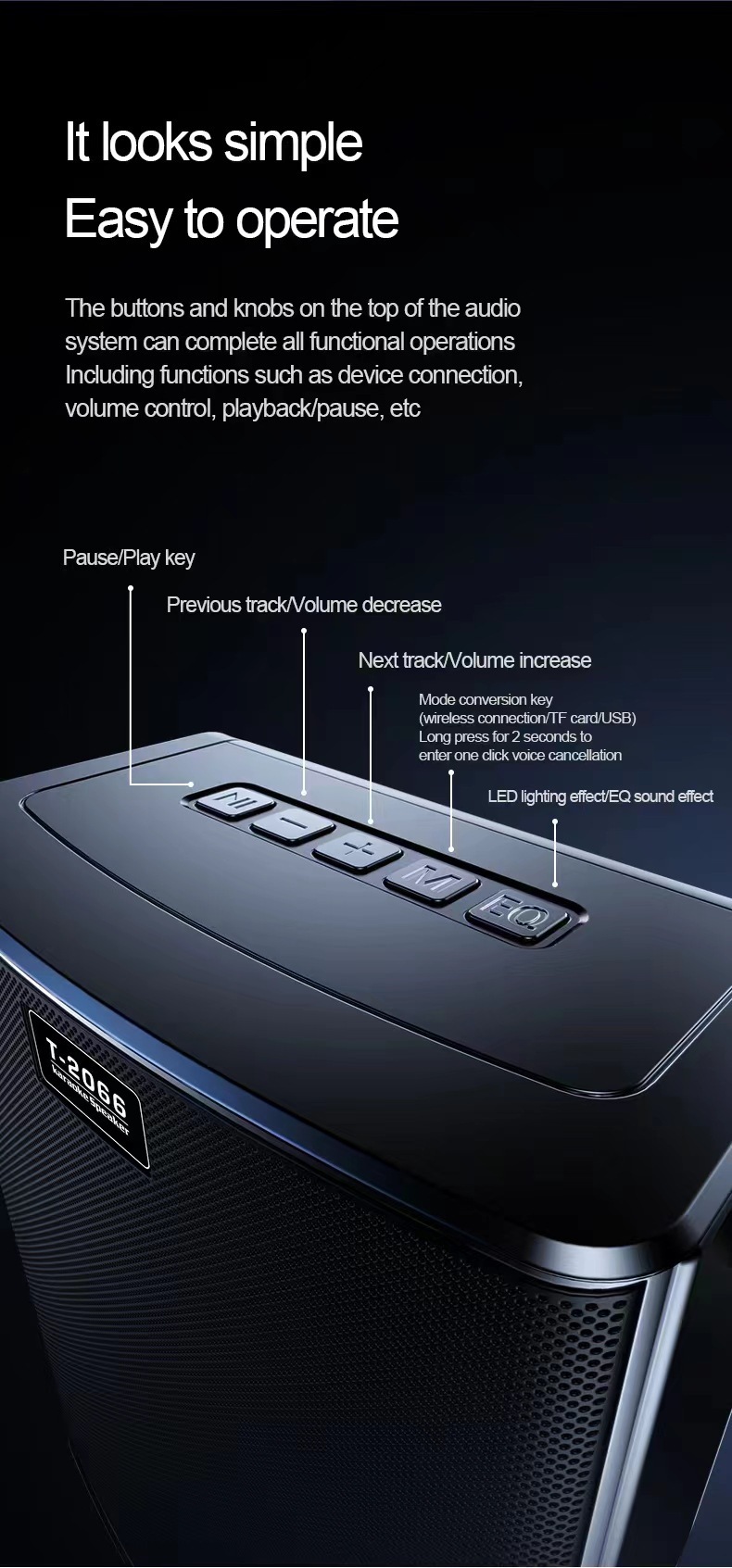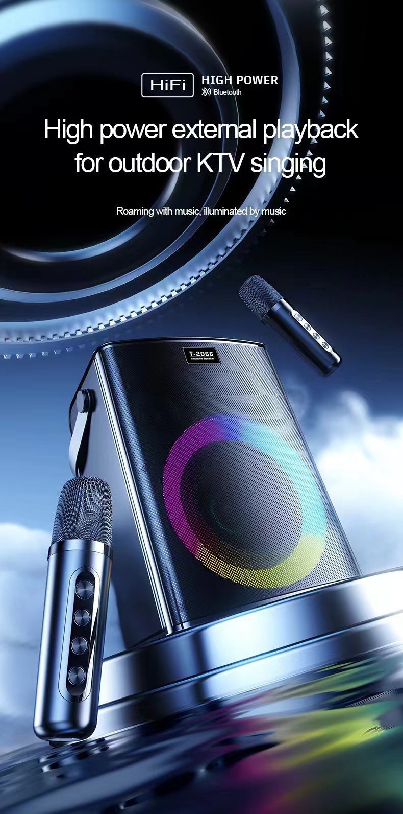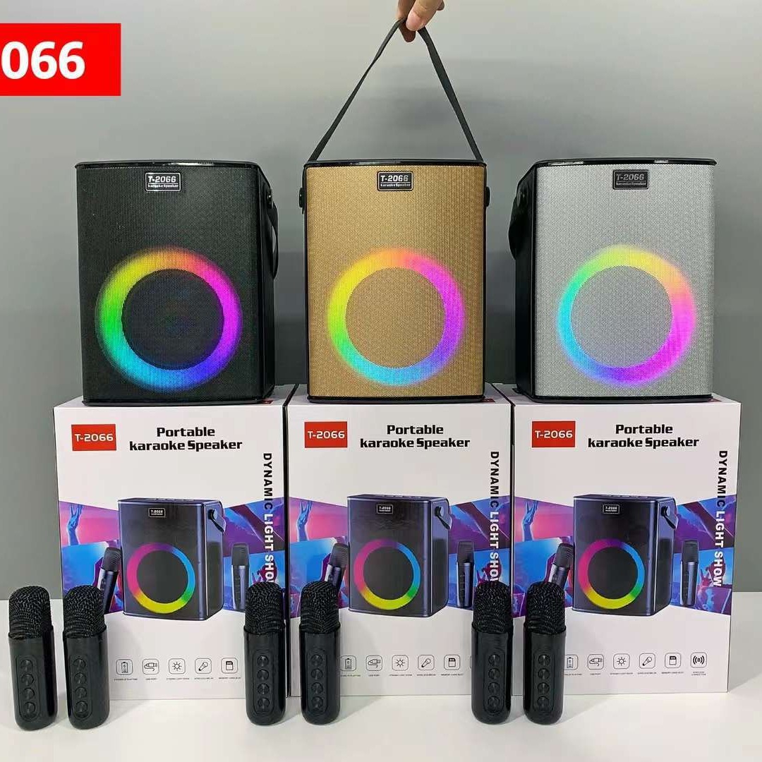 T-2066 휴대용 블루투스 스피커 휴대용 노래방 무선 마이크 카드 스테레오 야외 스퀘어 댄스 서브 우퍼