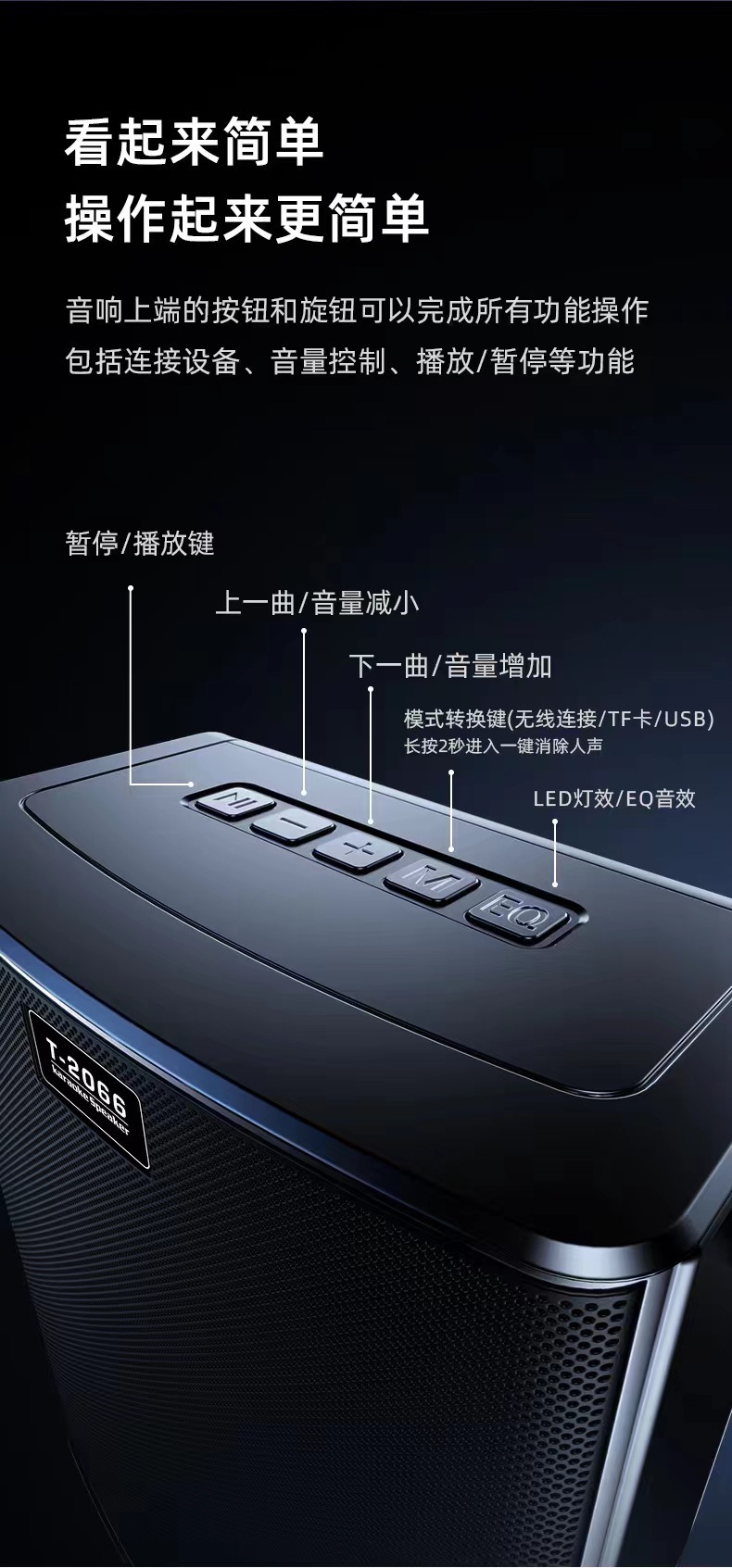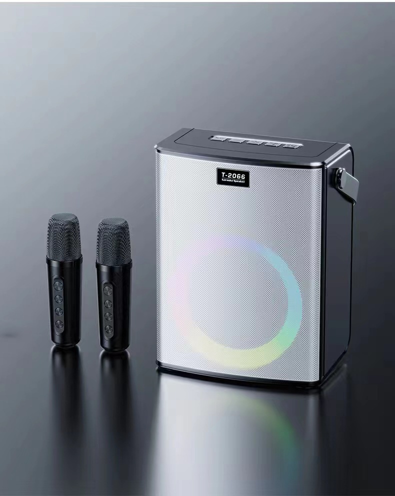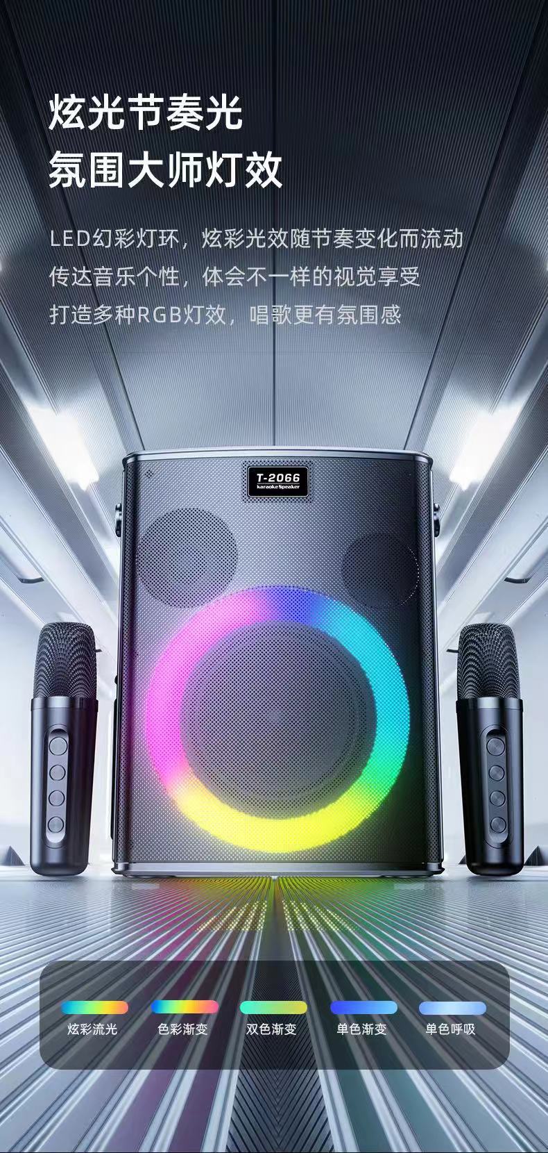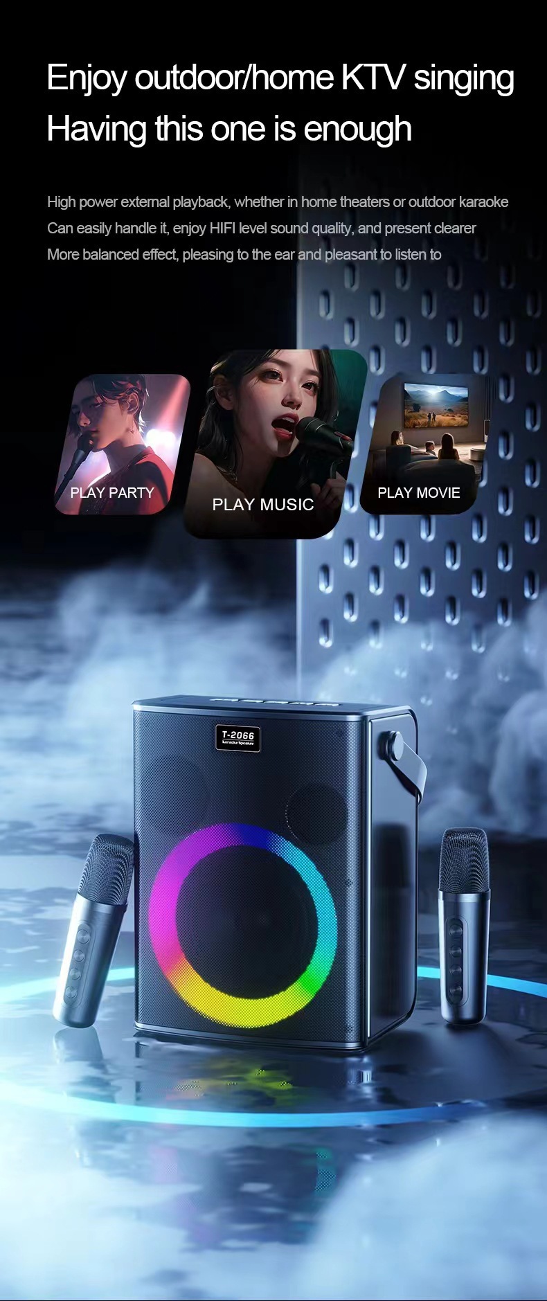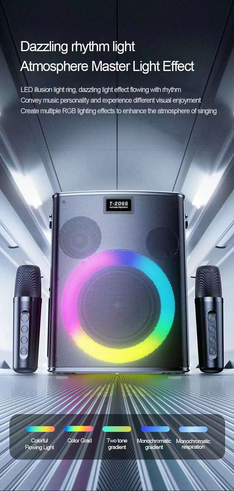 T-2066 휴대용 블루투스 스피커 휴대용 노래방 무선 마이크 카드 스테레오 야외 스퀘어 댄스 서브 우퍼