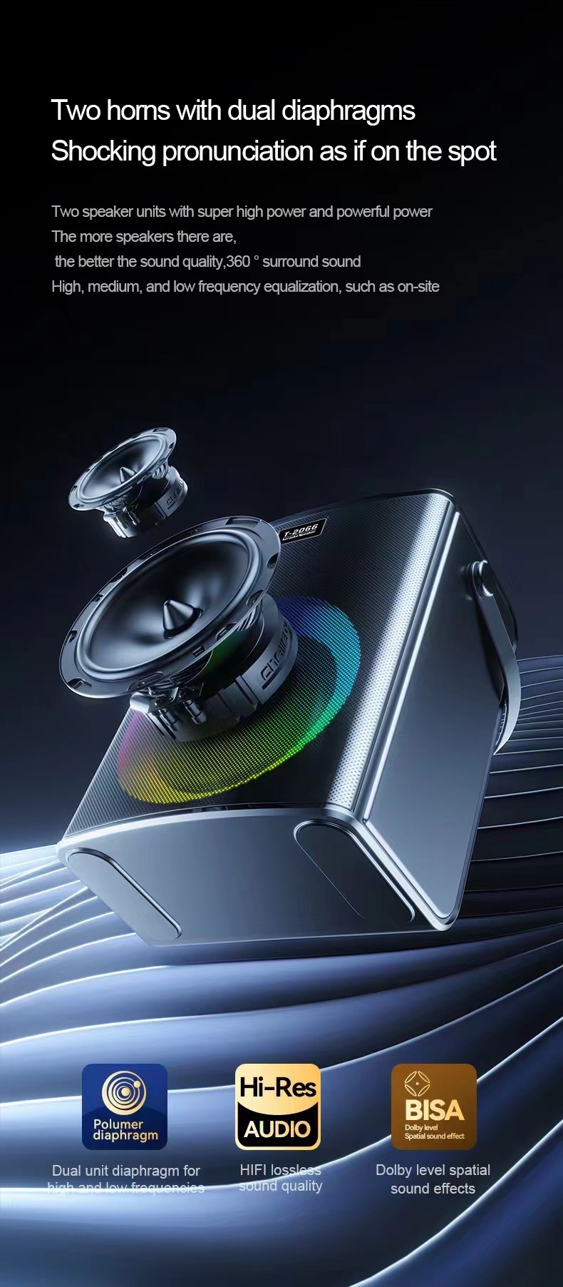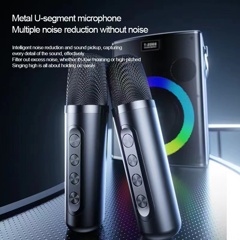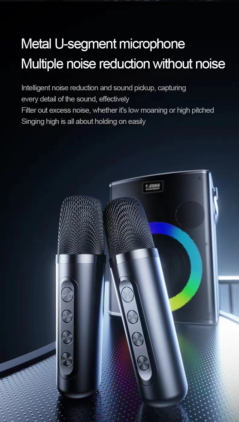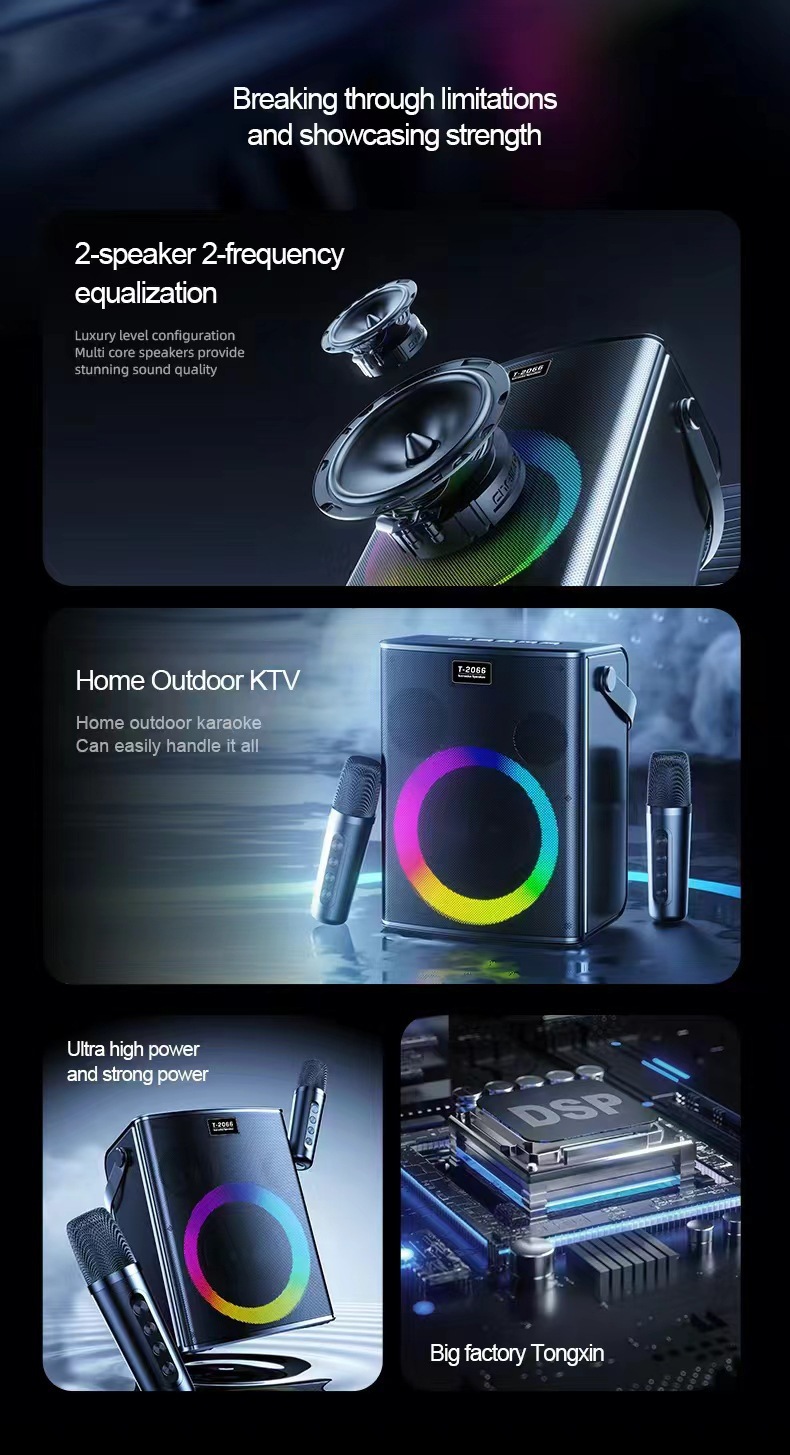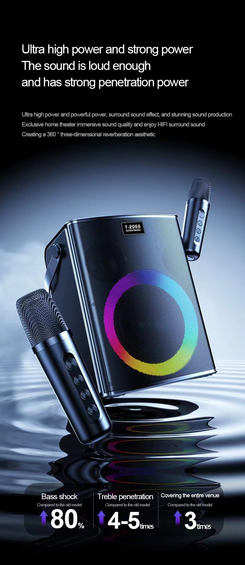 T-2066 휴대용 블루투스 스피커 휴대용 노래방 무선 마이크 카드 스테레오 야외 스퀘어 댄스 서브 우퍼