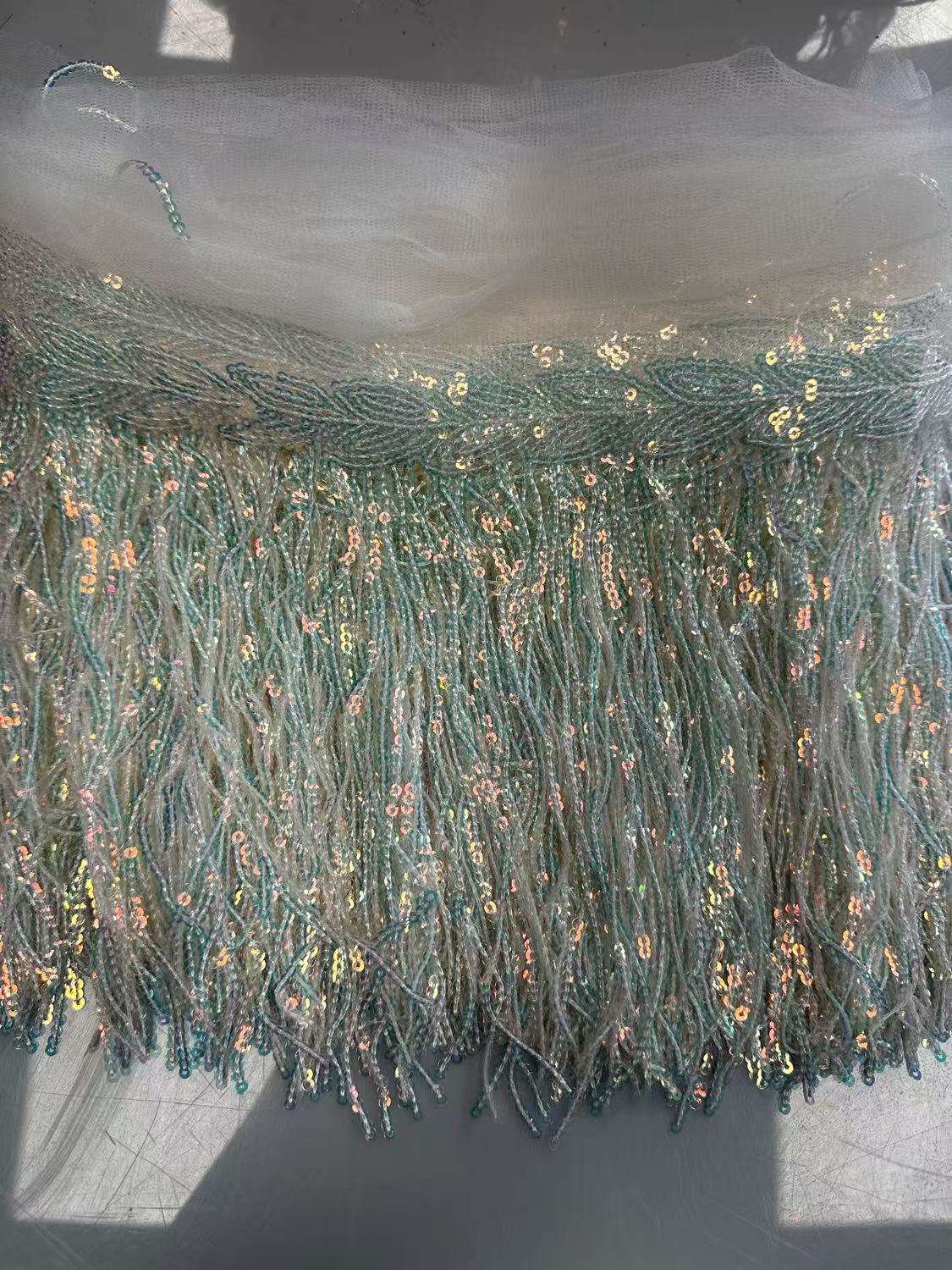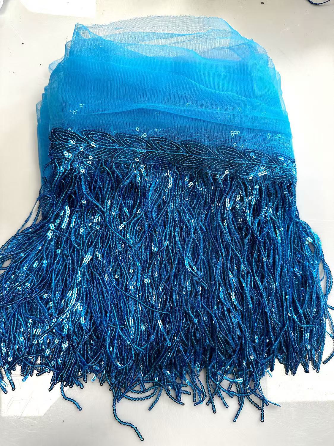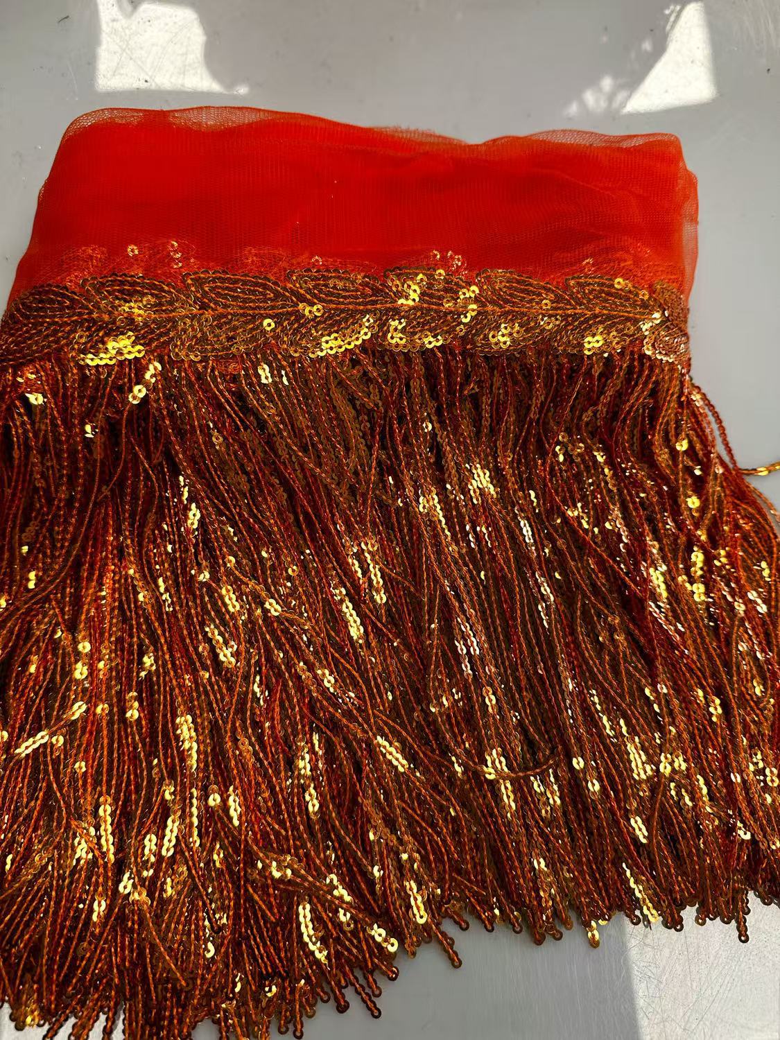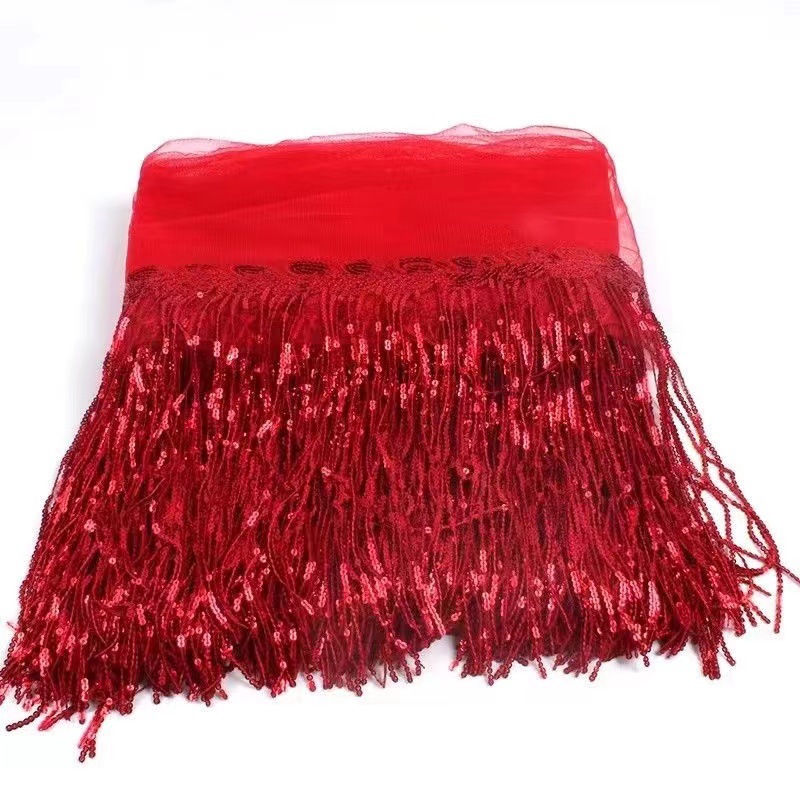 인기 제조업체 재고 20CM 스팽글 무대 의상, 프린지 레이스 라틴 댄스 의상, 허리 체인 액세서리, 스커트스토어 가기