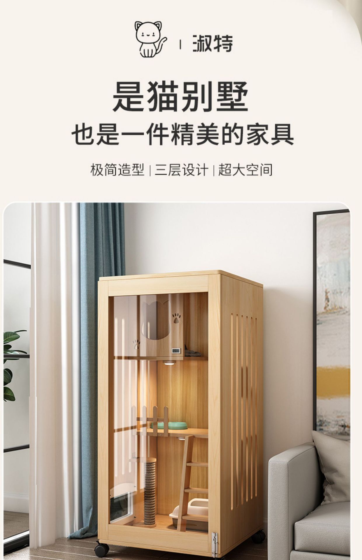 단단한 나무 고양이 둥지 빌라 케이지 가구 고양이 집 3 층 고양이 내각 실내 번식 케이지 고양이 다층 고양이 집 고양이 집