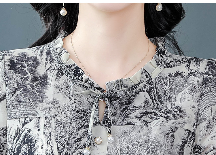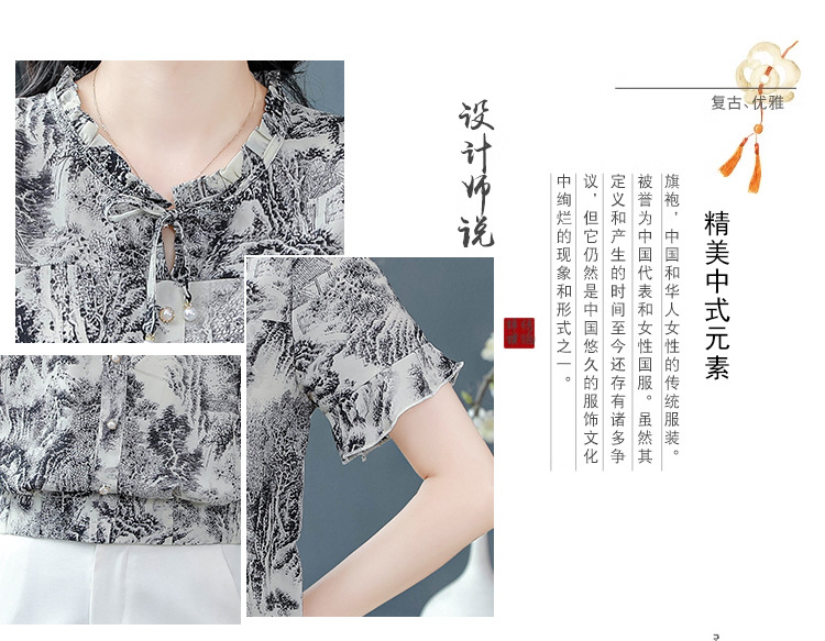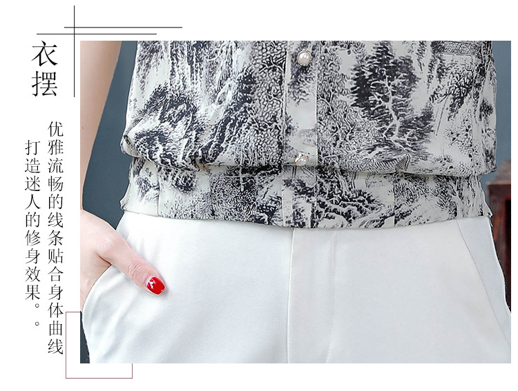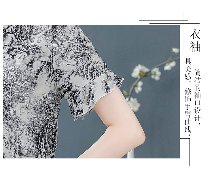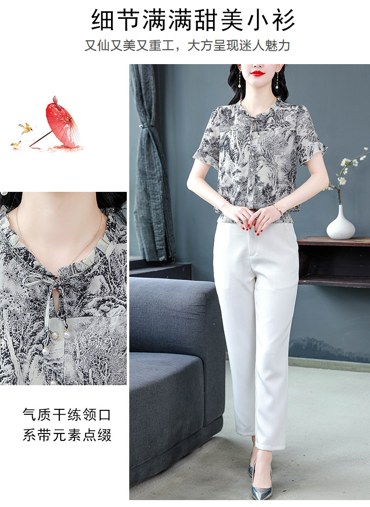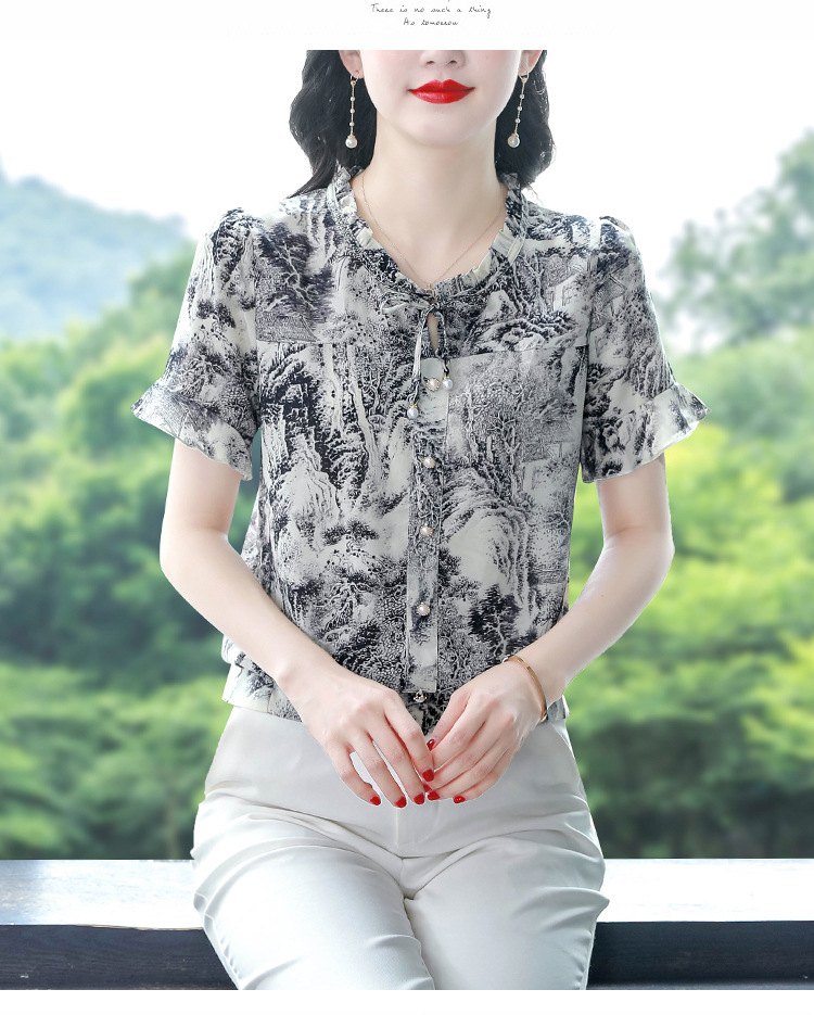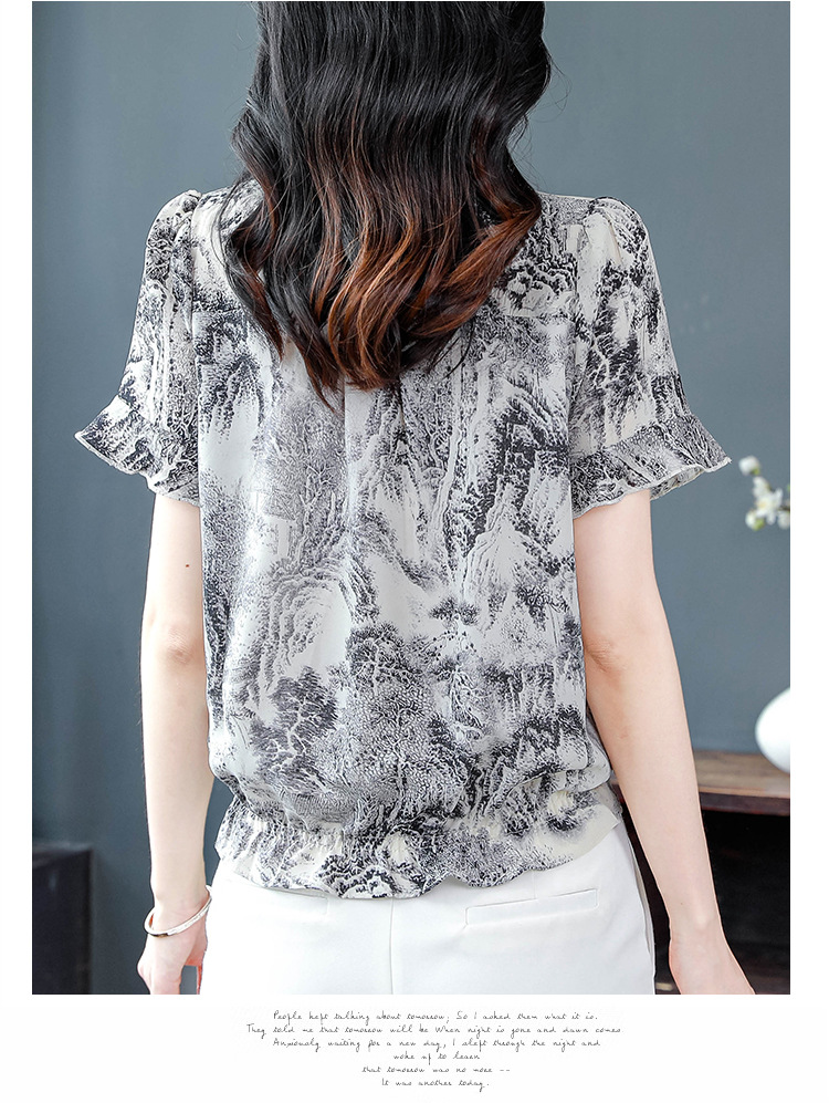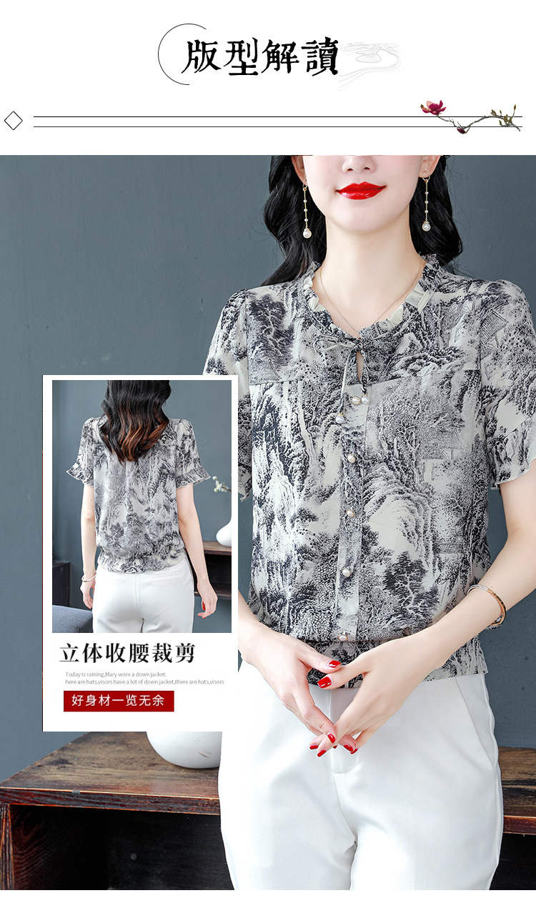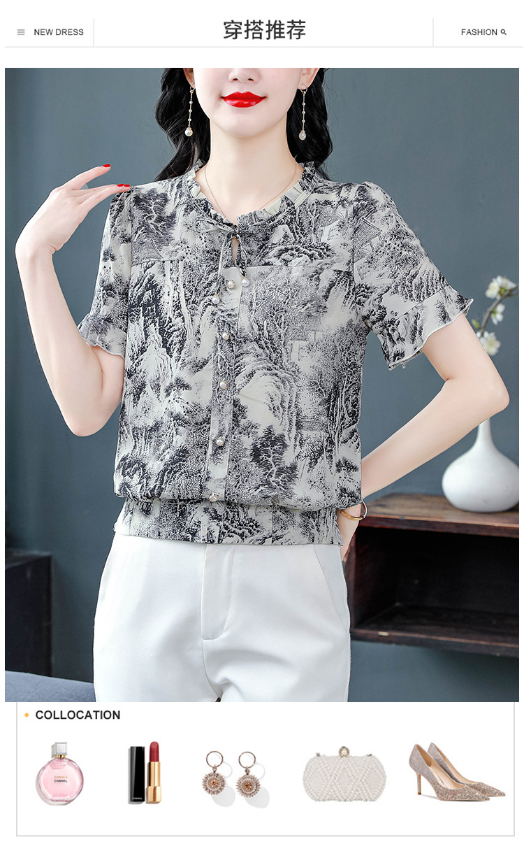공장 직접 2024 여름 새로운 짧은 소매 최고 여성 패션 조커 꽃 쉬폰 셔츠 기질 인쇄 여성 의류