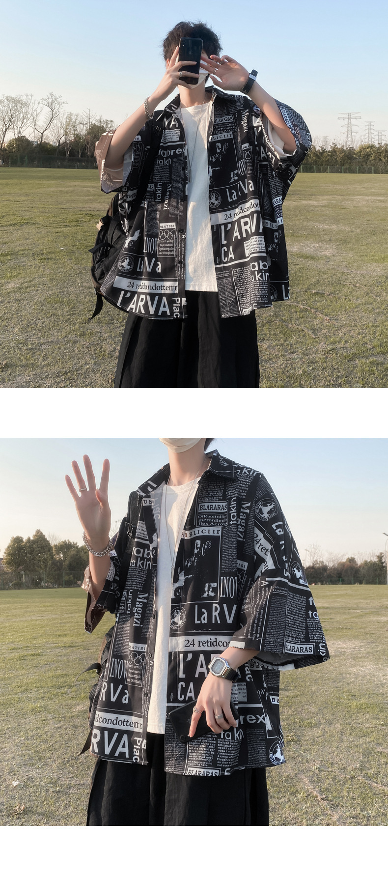 신문 반팔 셔츠 남자의 여름 얇은 꽃 인치 셔츠 유행 브랜드 루즈 셔츠 한국 스타일 유행 반소매 재킷스토어 가기