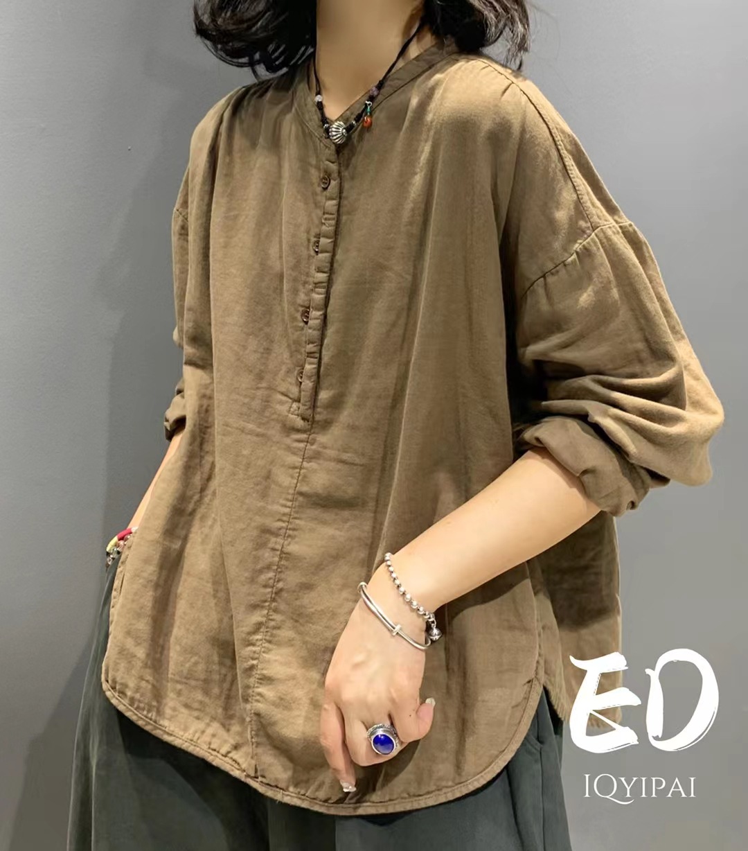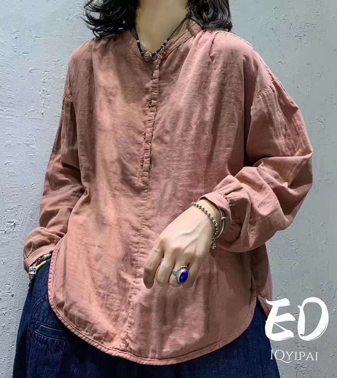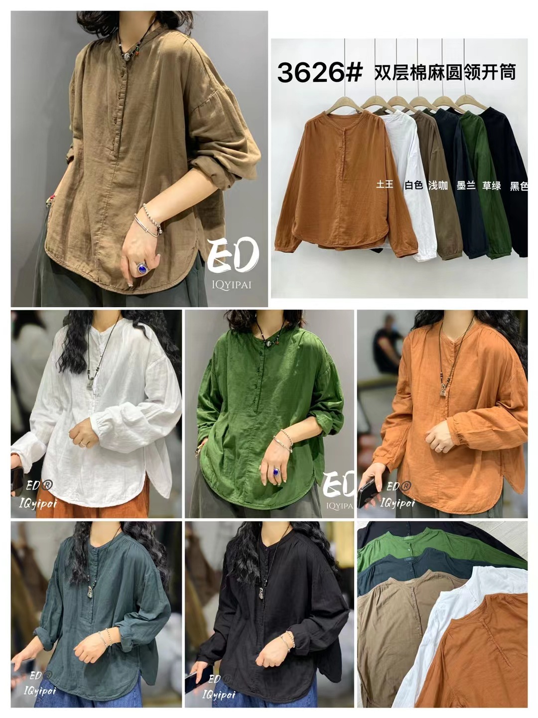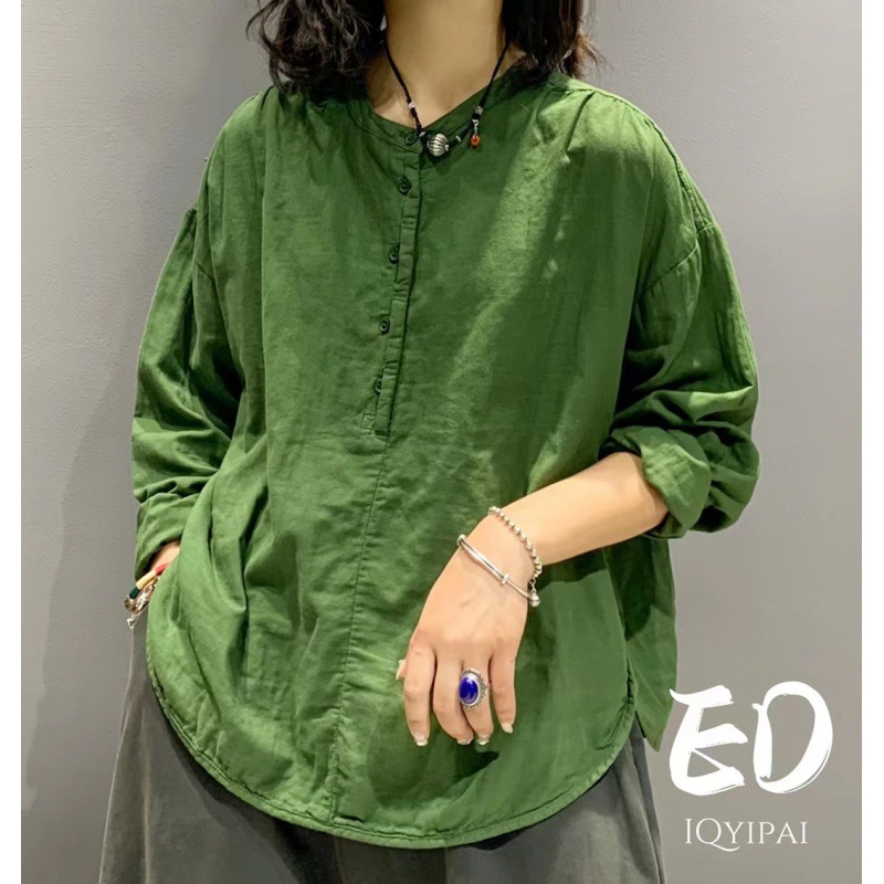 Ed3626 더블 레이어 코튼 및 리넨 라운드 넥 오픈 튜브 셔츠 2024 여성을위한 새로운 느슨한 플러스 사이즈 캐주얼 티셔츠베이스 탑스토어 가기