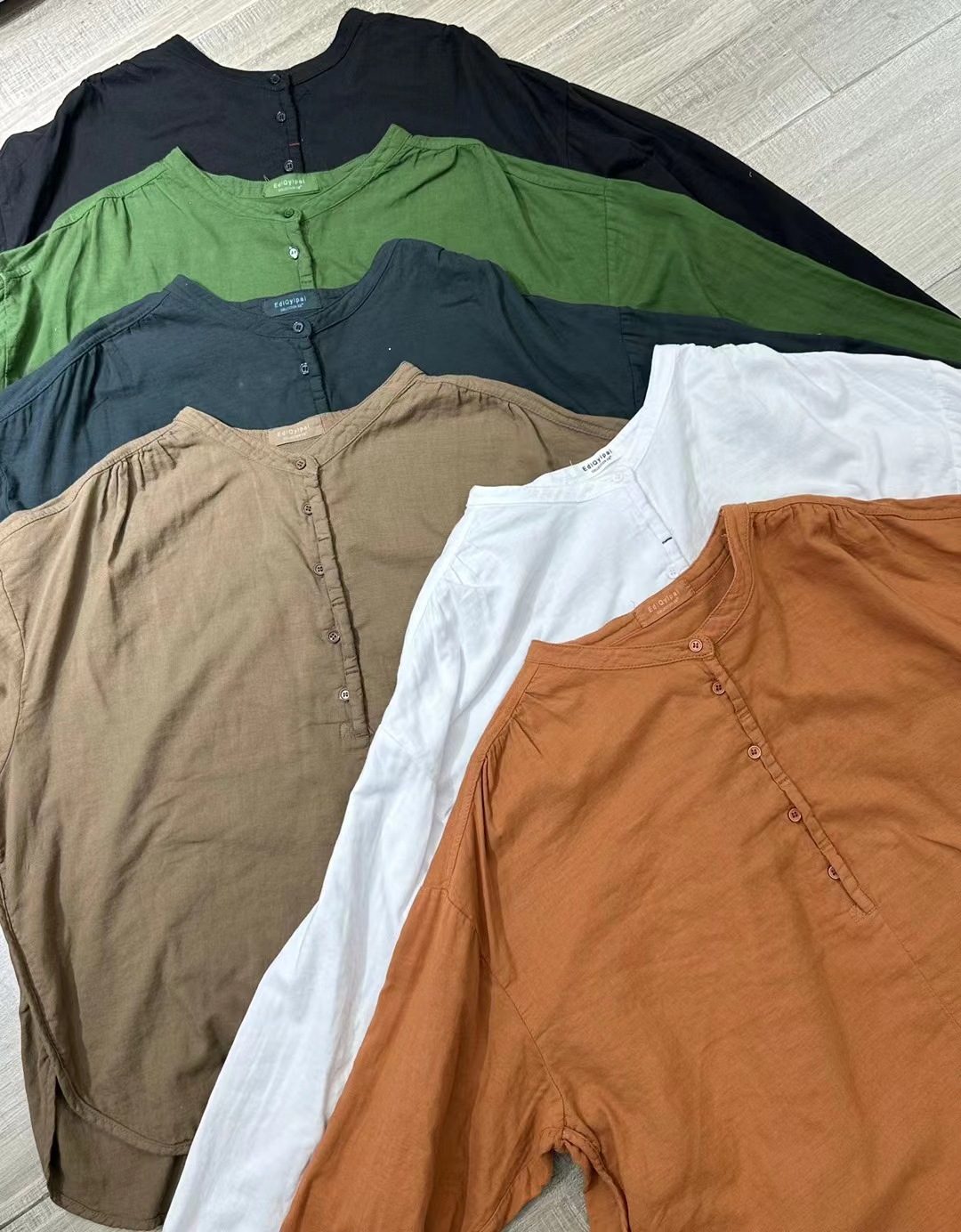 Ed3626 더블 레이어 코튼 및 리넨 라운드 넥 오픈 튜브 셔츠 2024 여성을위한 새로운 느슨한 플러스 사이즈 캐주얼 티셔츠베이스 탑