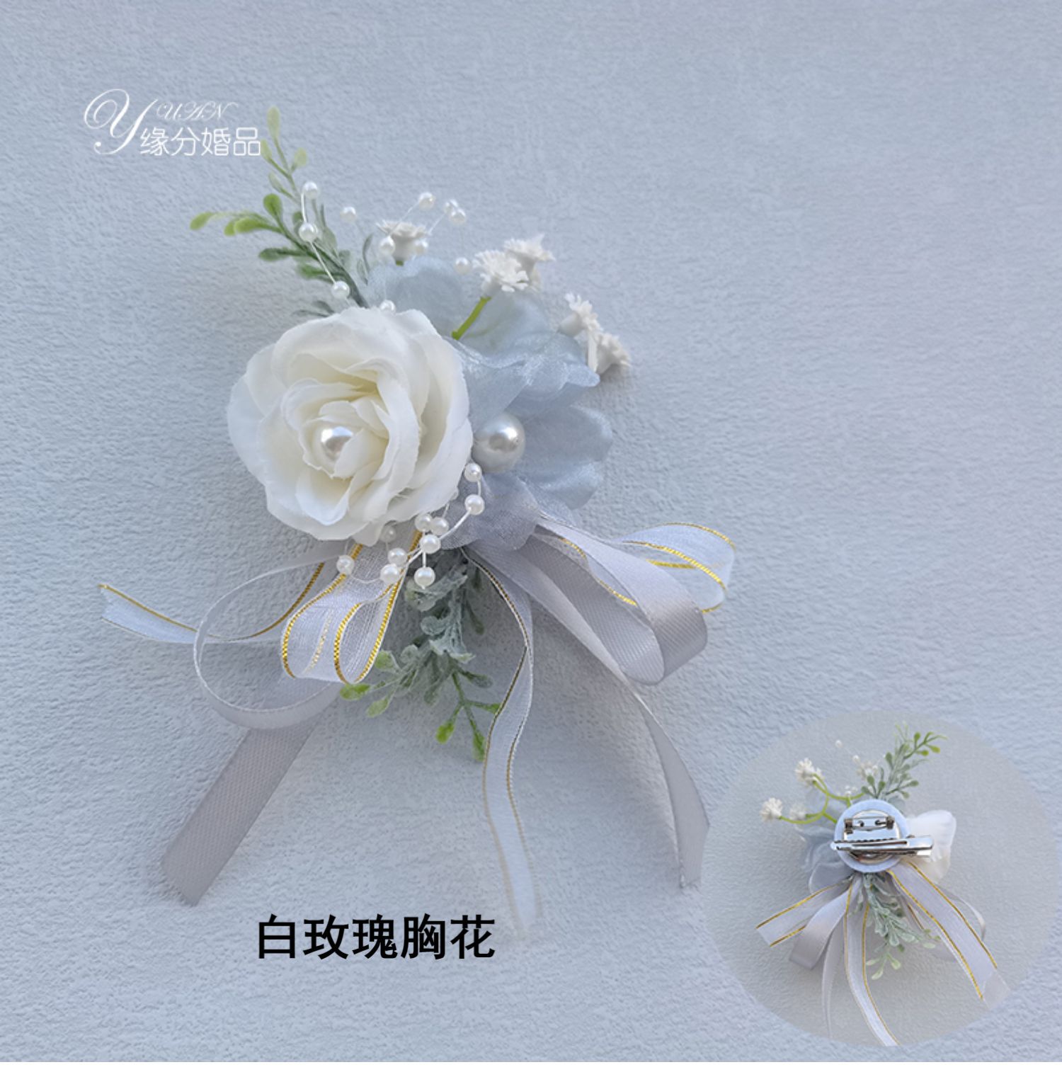 • 흰 장미 손목 꽃 1개(반투명 눈 거즈 스트랩 스타일)