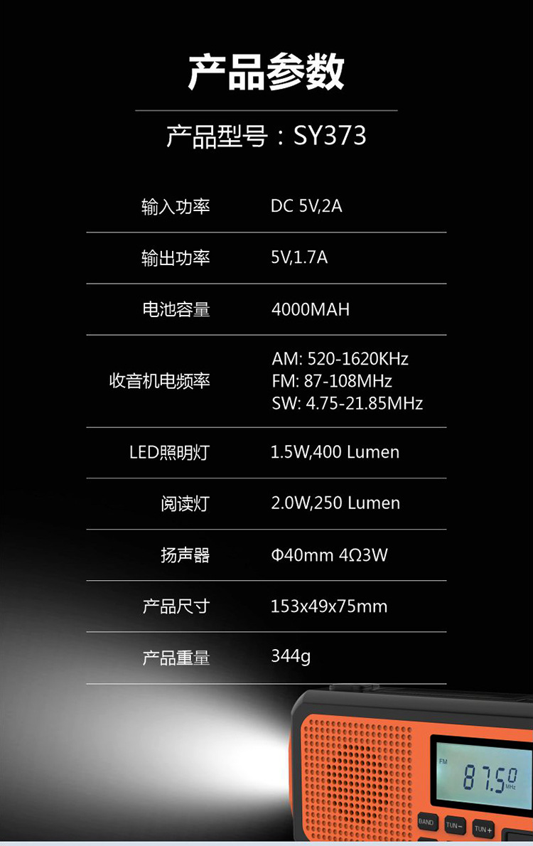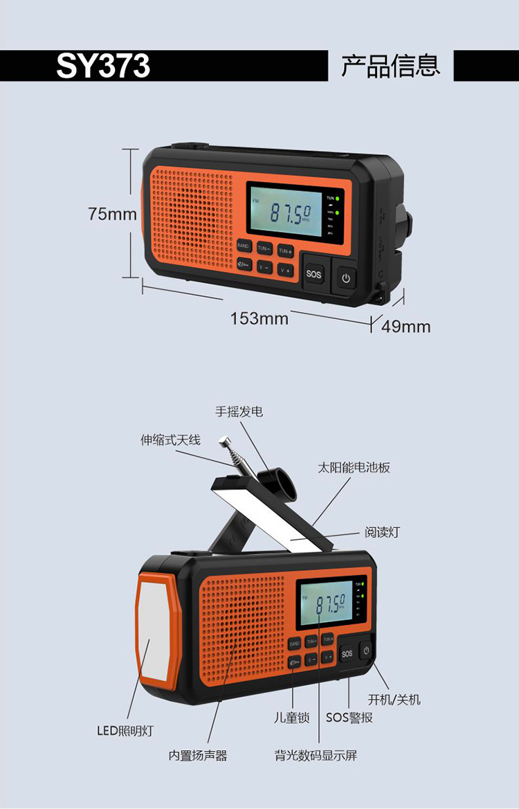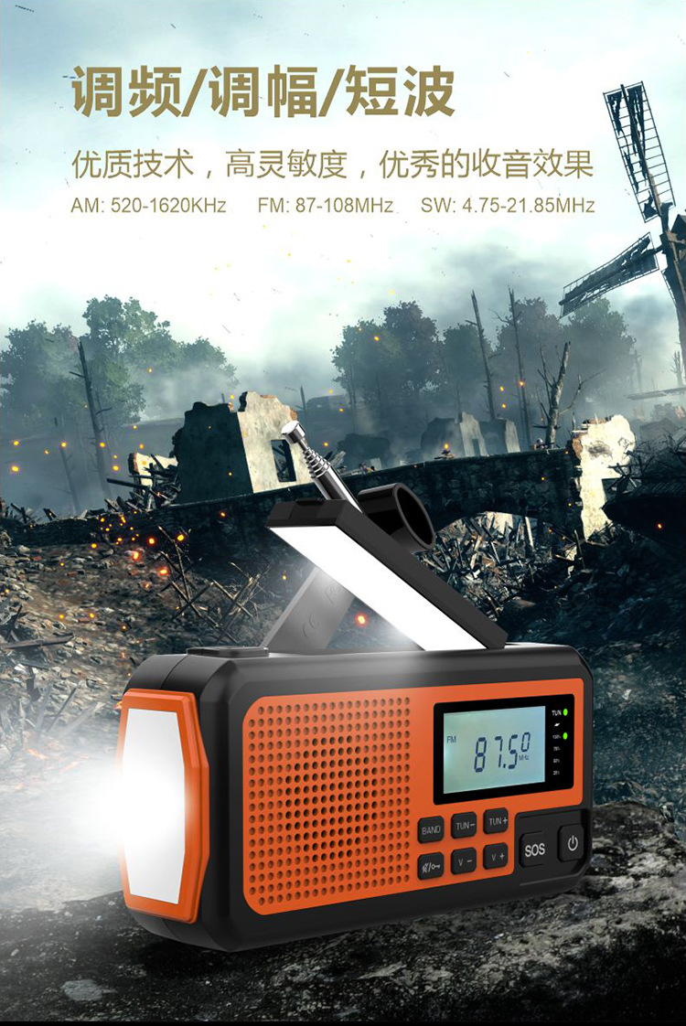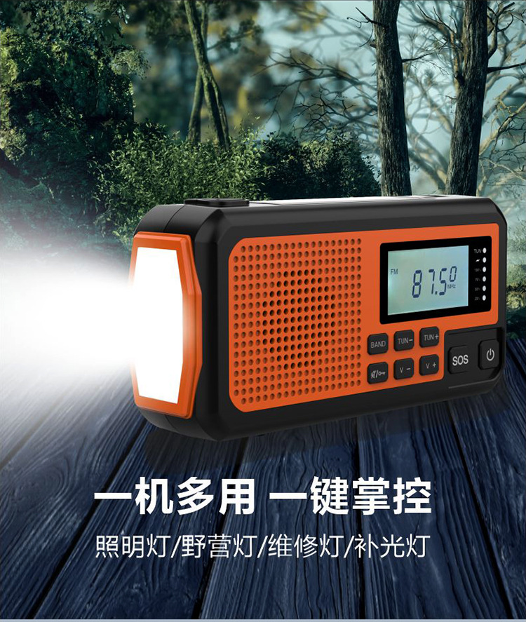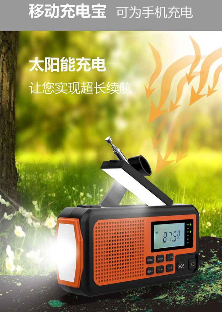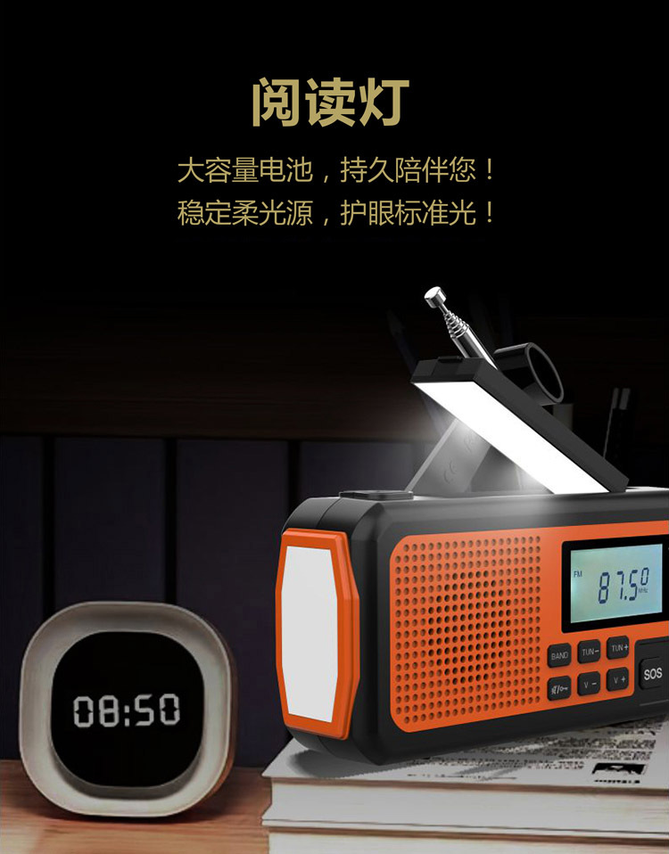 국경 간 다기능 야외 비상 태양 광 발전 라디오 방재 독서 램프 손전등 충전 보물스토어 가기