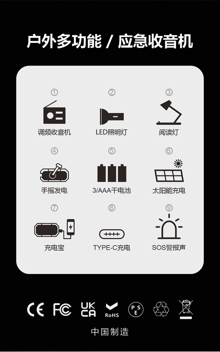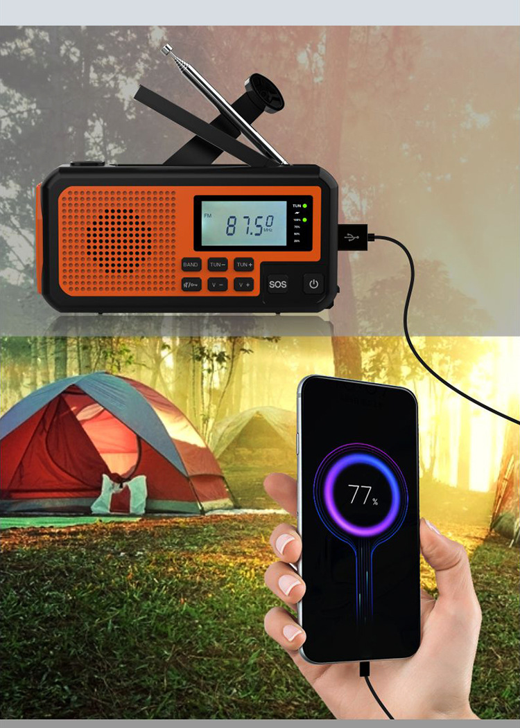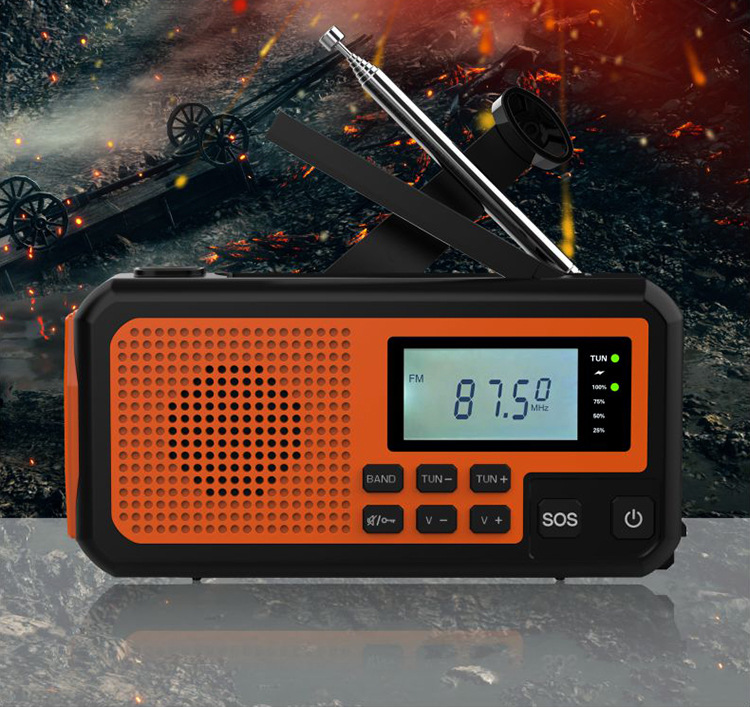 국경 간 다기능 야외 비상 태양 광 발전 라디오 방재 독서 램프 손전등 충전 보물