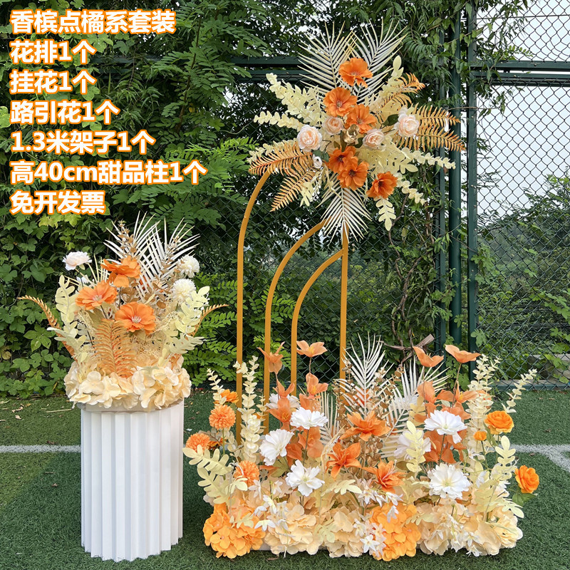 • 철잎 스타일 - 샴페인 도트 오렌지 디저트 기둥이 포함된 완전한 세트