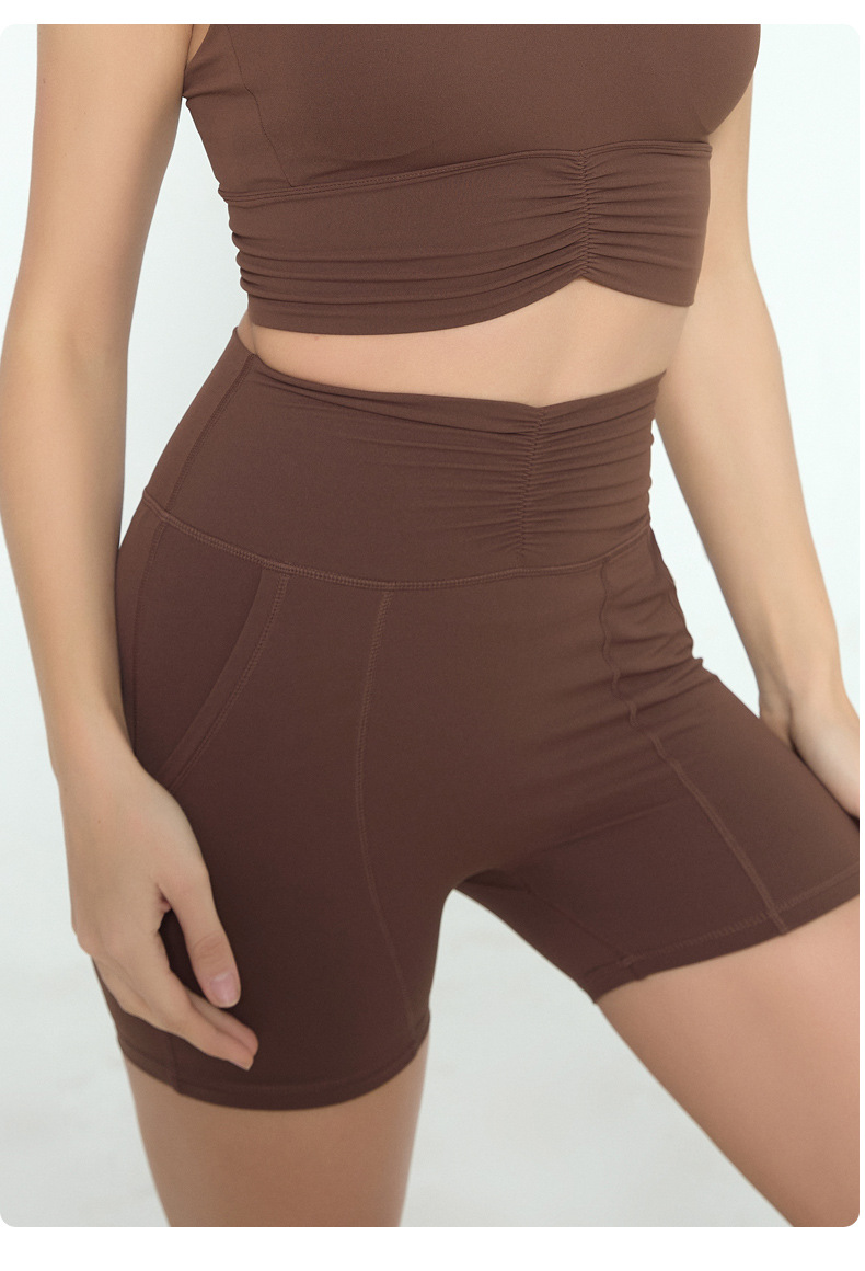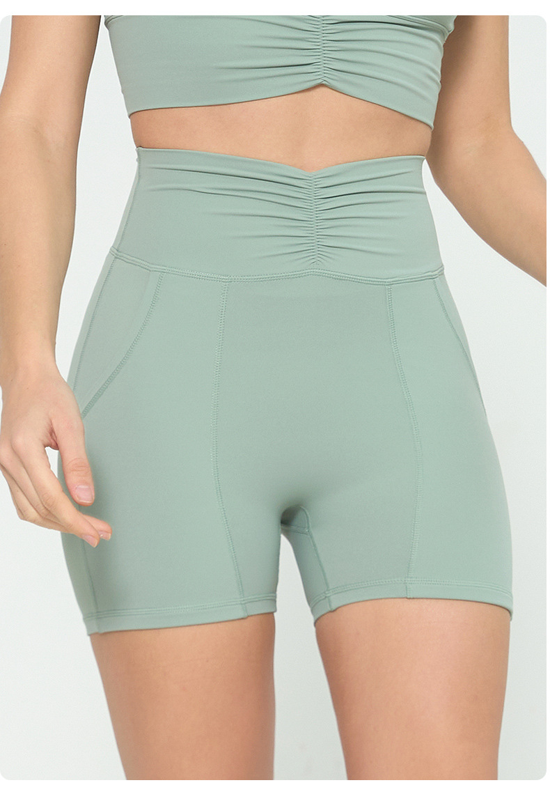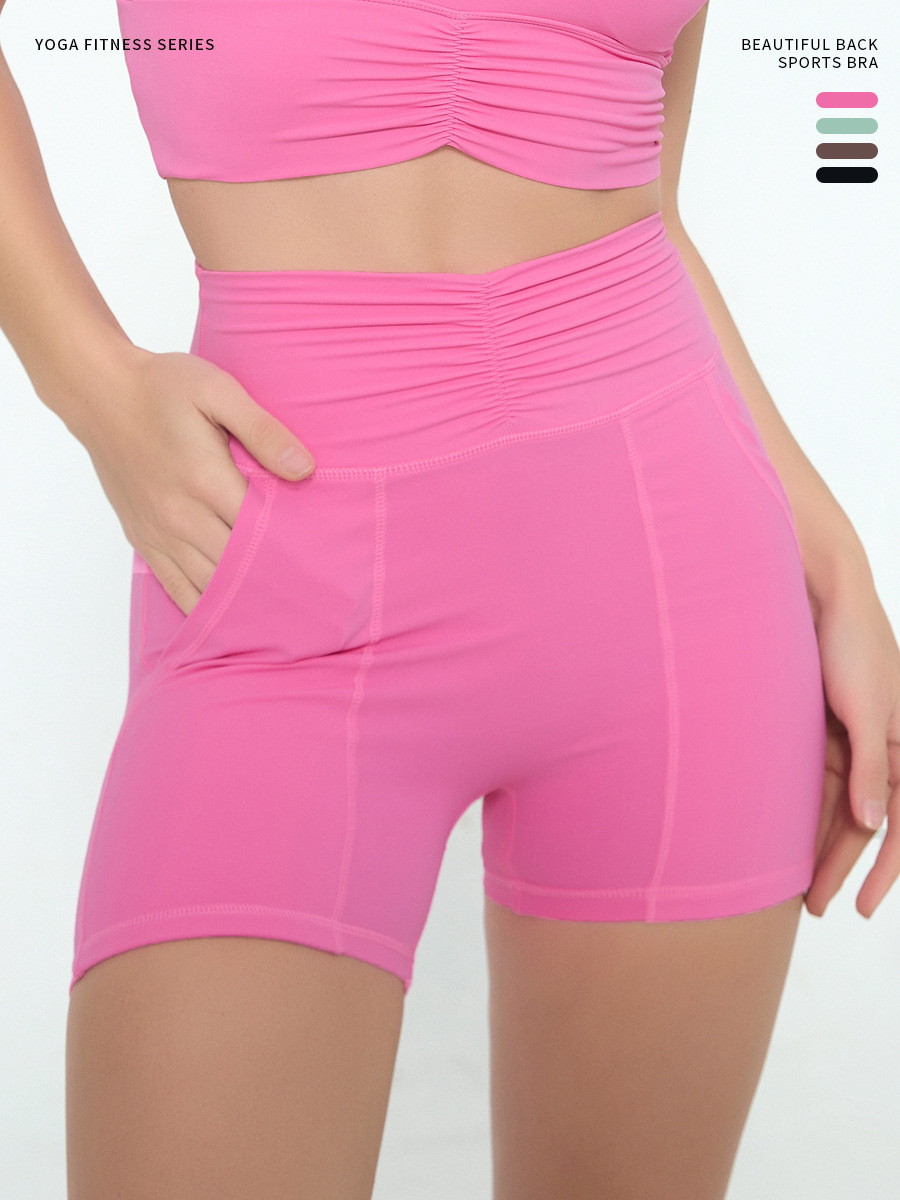 유럽과 미국의 피트니스 반바지 여자 여름 달리기 스포츠 훈련 3 점 바지 부드러운 왁스 높은 탄성 타이트 요가 바지 주름진 허리