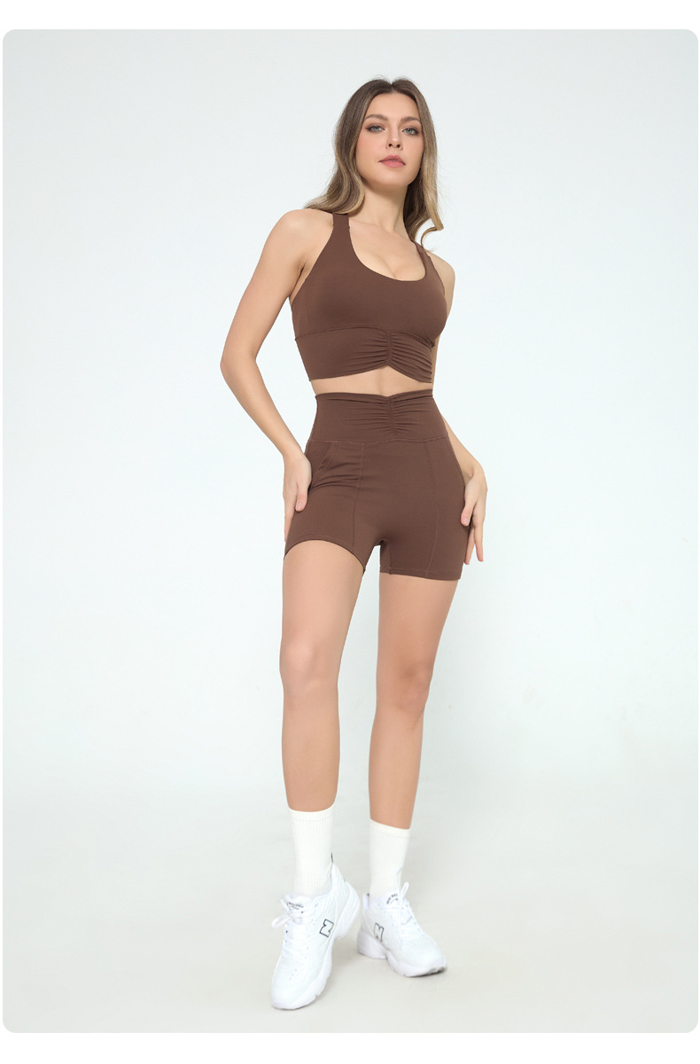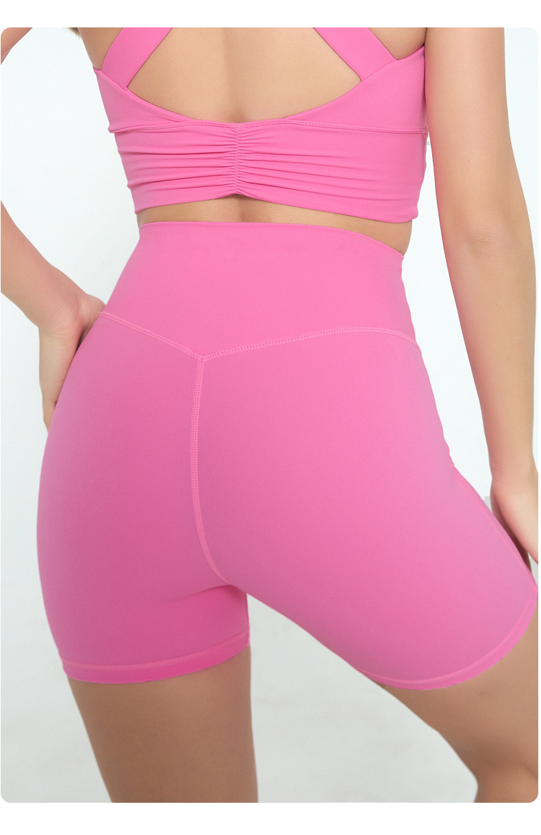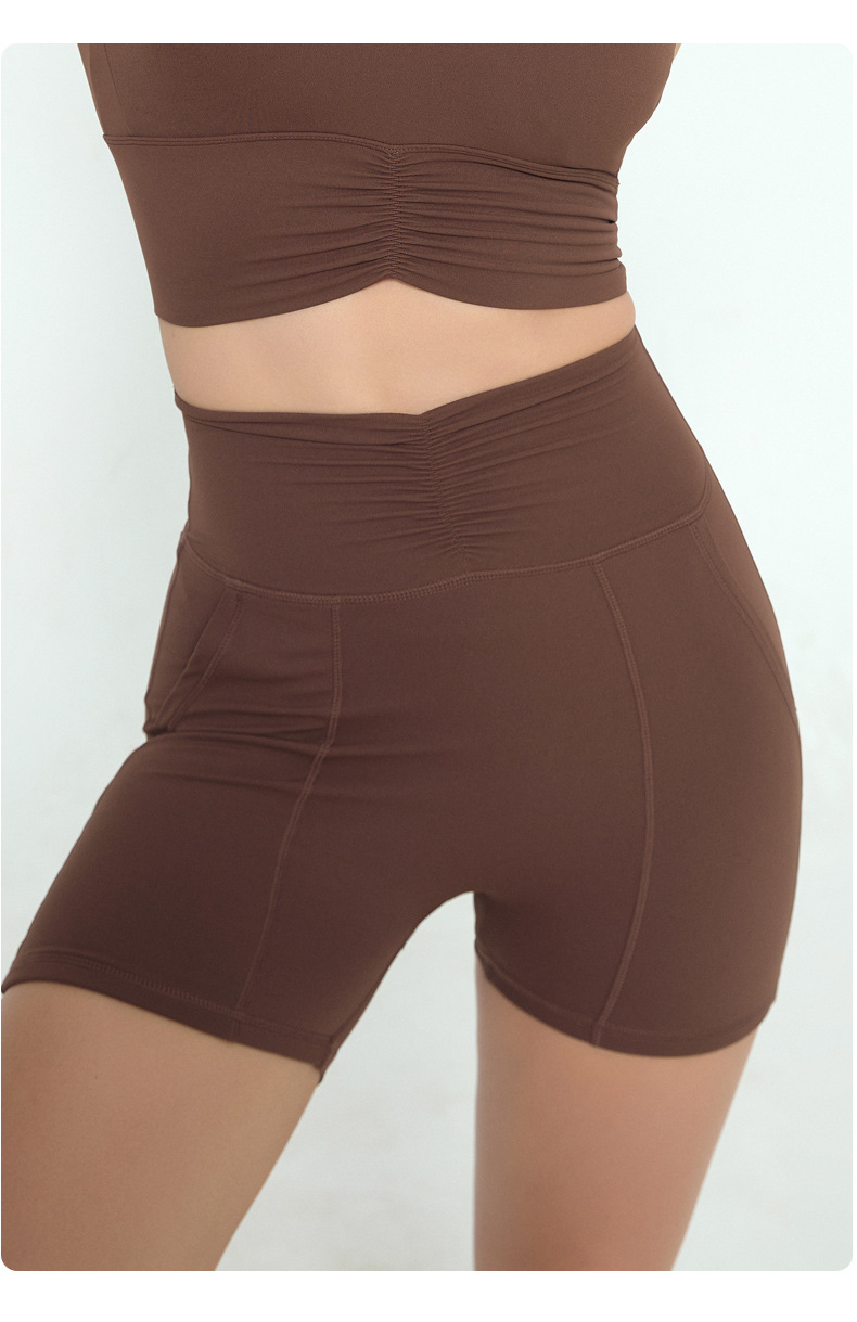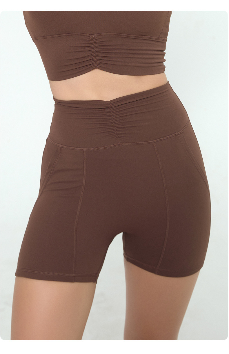 유럽과 미국의 피트니스 반바지 여자 여름 달리기 스포츠 훈련 3 점 바지 부드러운 왁스 높은 탄성 타이트 요가 바지 주름진 허리