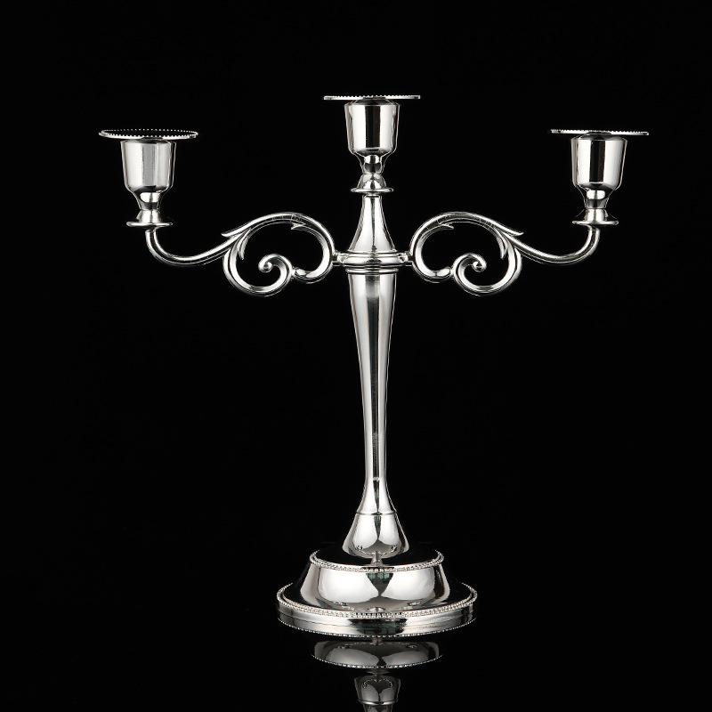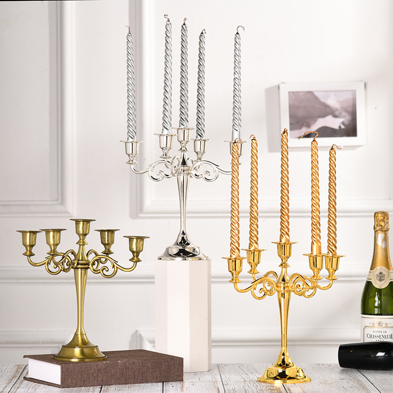 캔들 홀더 유럽 합금 3 헤드 5 헤드 캔들 홀더 금속 실버 도금 장식품 웨딩 호텔 KTV 홈