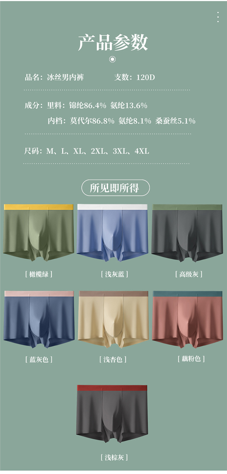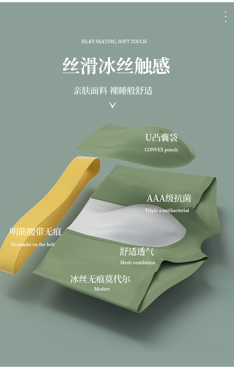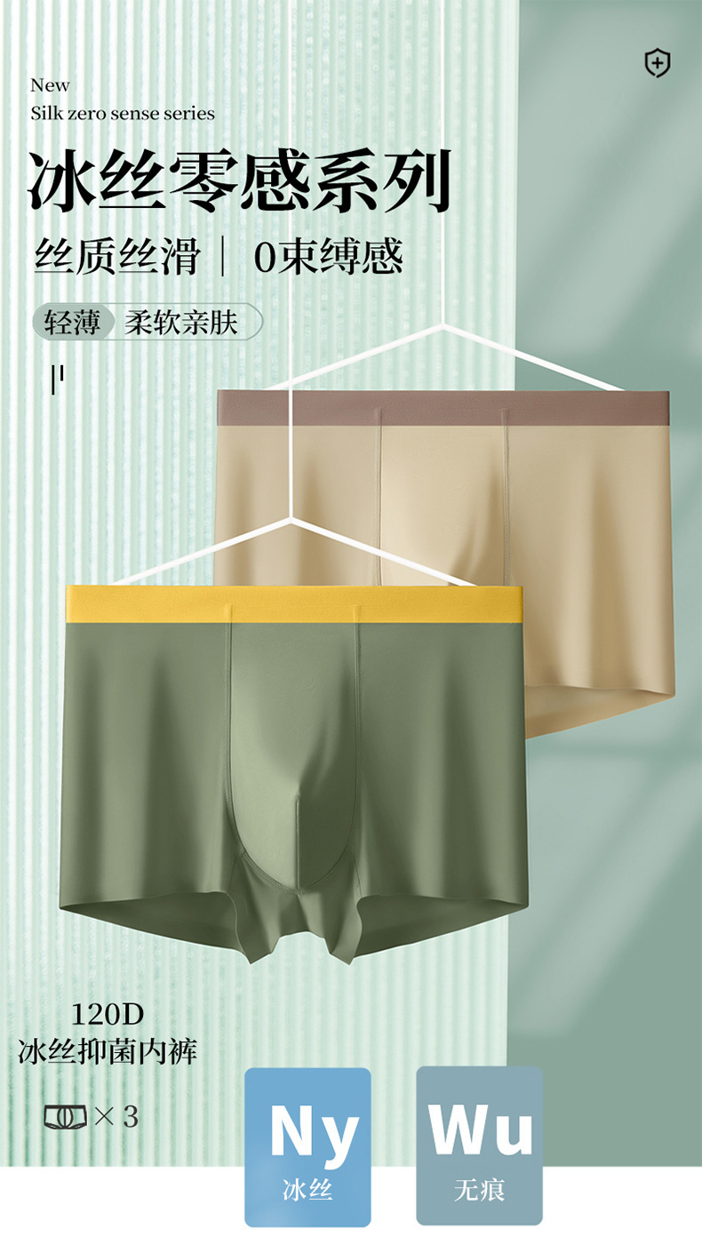 남성용 아이스 실크 사각팬티, 여름용 초박형 통기성 사각팬티, 대형 중간 허리 남성용 실크 가랑이 항균스토어 가기