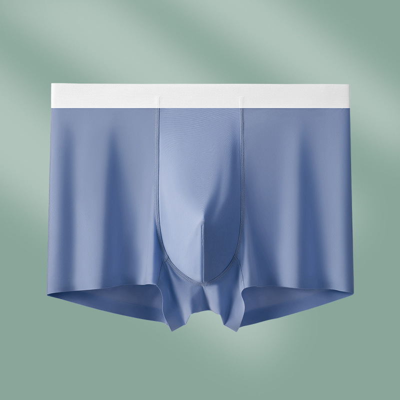 남성용 아이스 실크 사각팬티, 여름용 초박형 통기성 사각팬티, 대형 중간 허리 남성용 실크 가랑이 항균