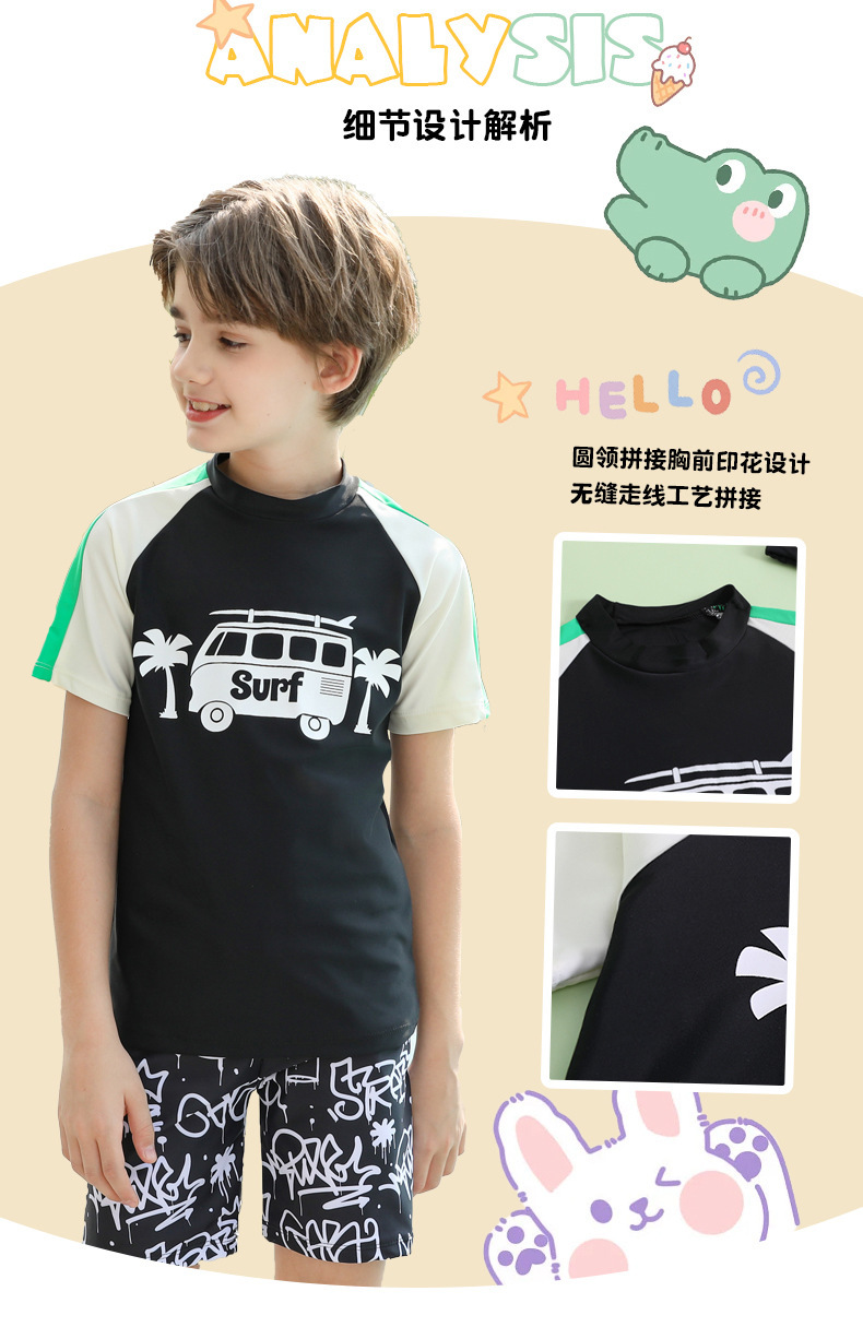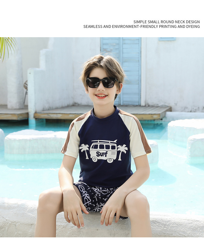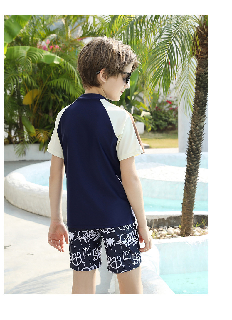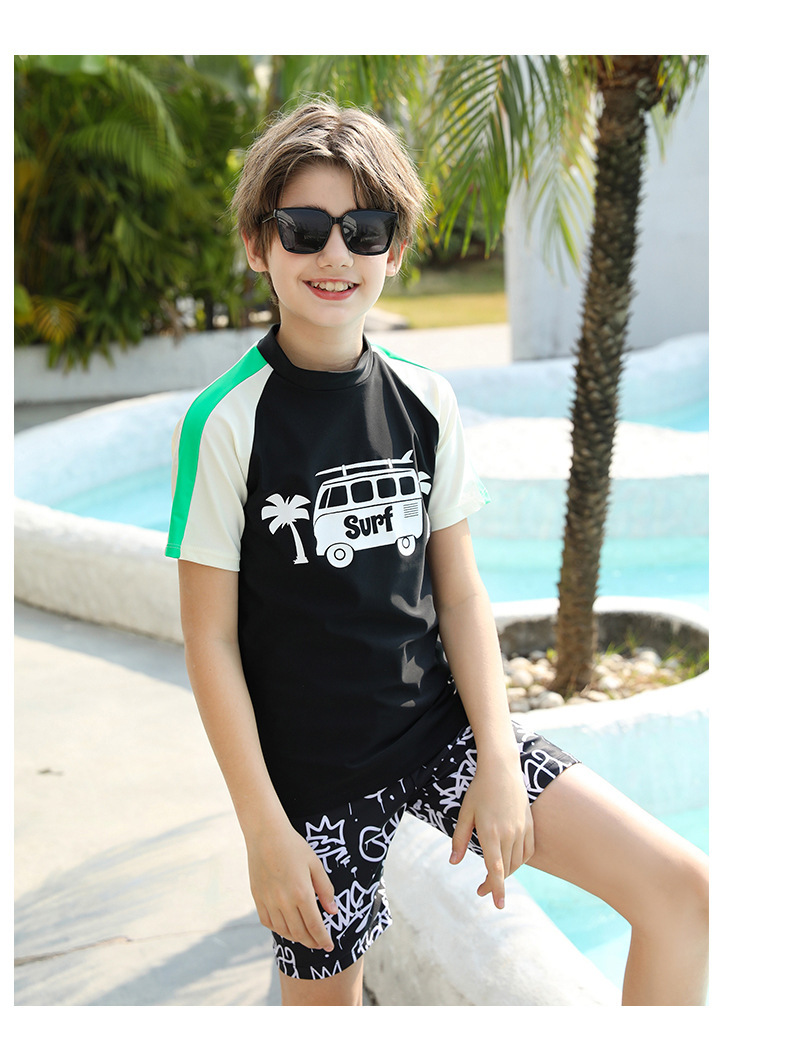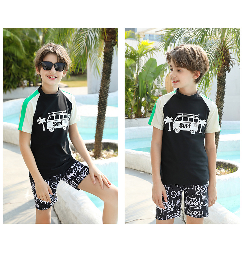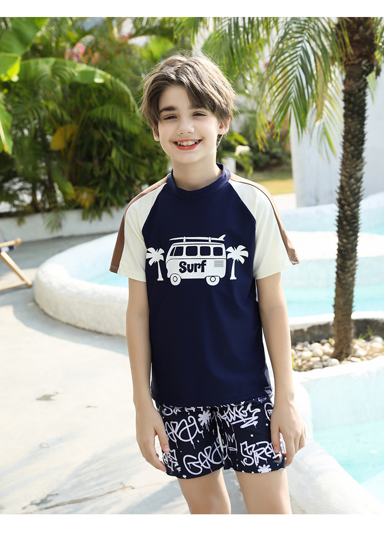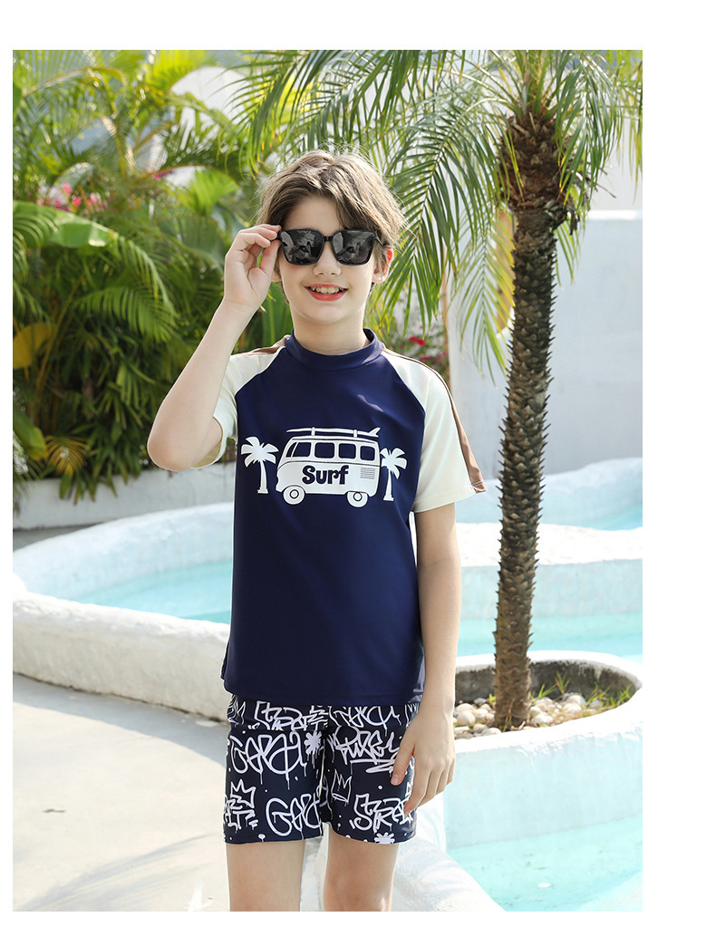 男士短袖分体游泳衣新款中大童青少年学泳训练沙滩防晒温泉泳装