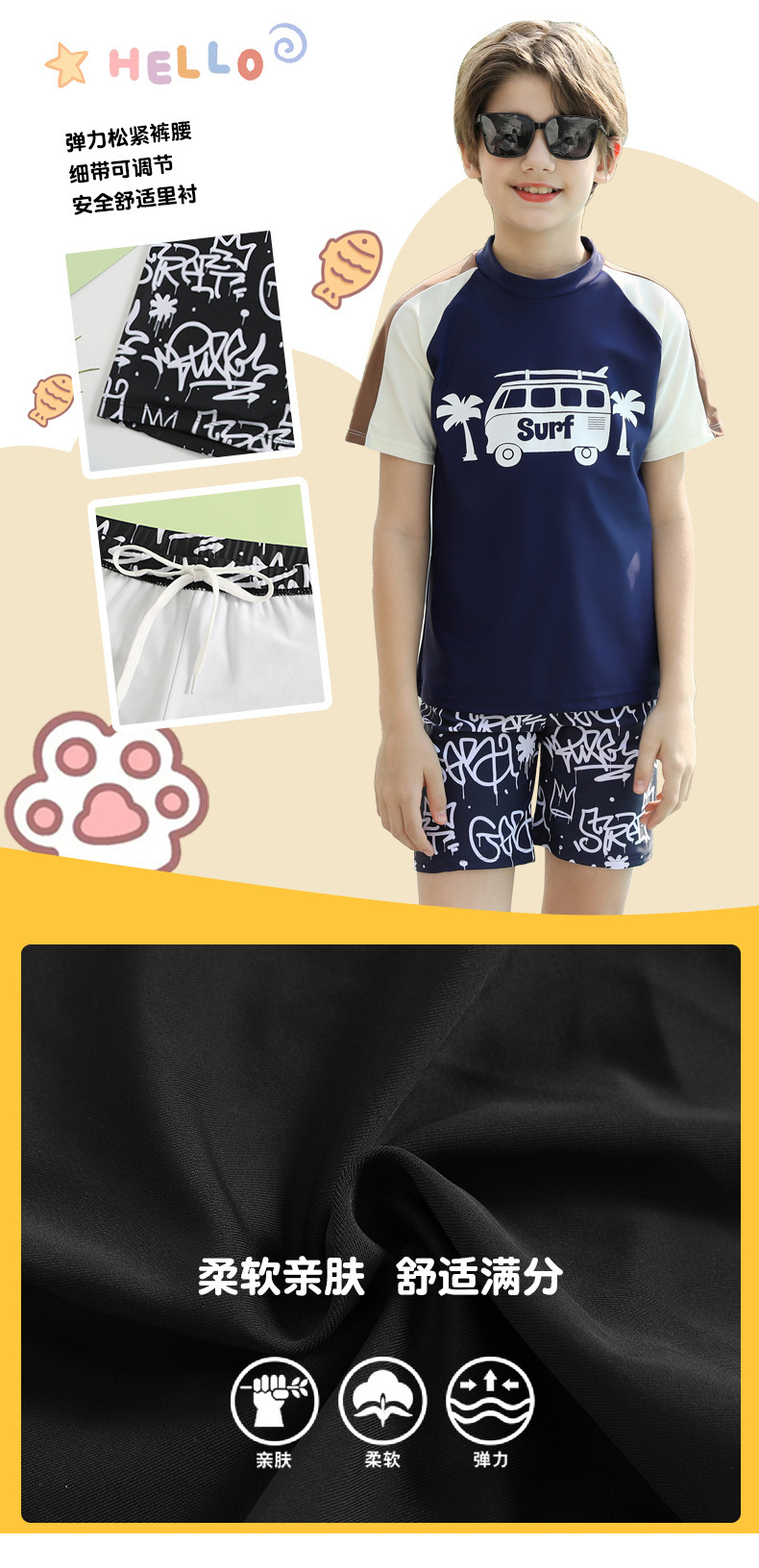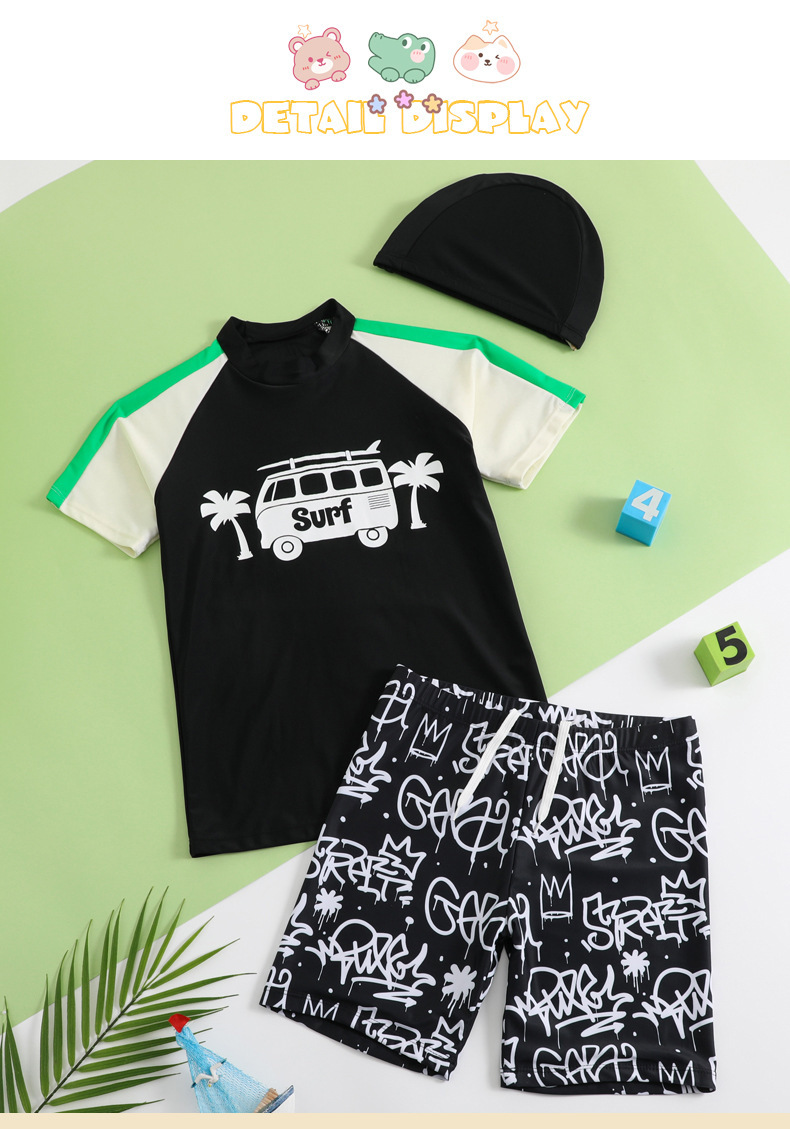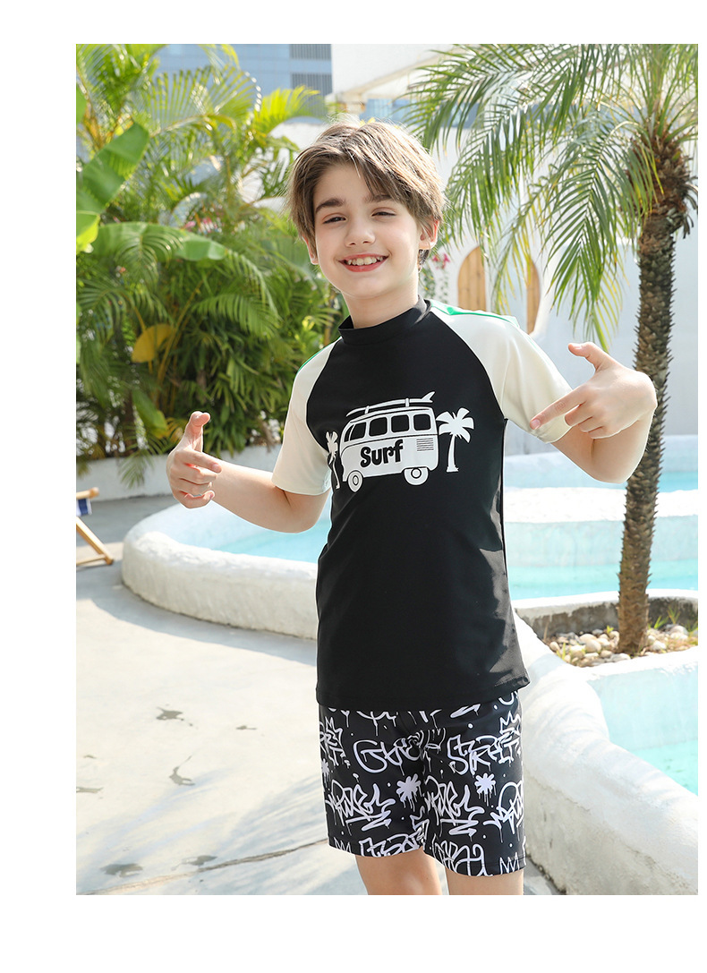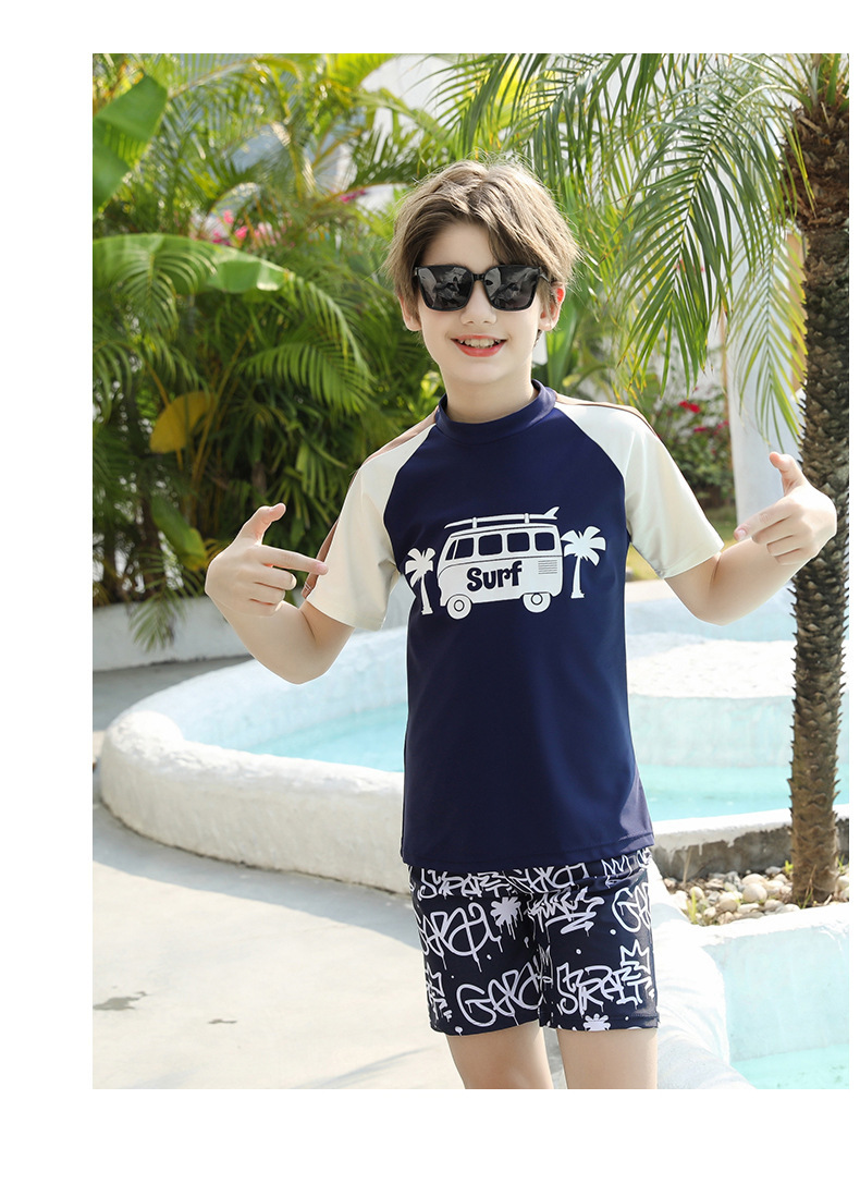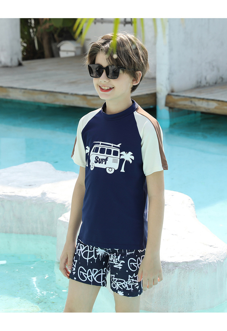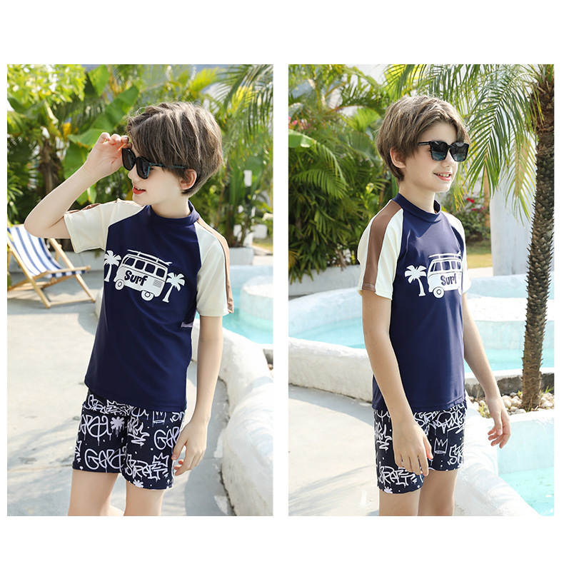 男士短袖分体游泳衣新款中大童青少年学泳训练沙滩防晒温泉泳装