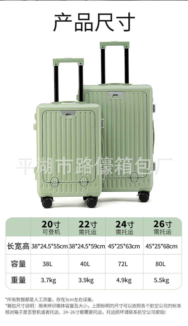 2024 새로운 수하물 케이스 여성 다기능 전면 개방 가방 남성 26 인치 충전식 트롤리 케이스 학생 맞춤형스토어 가기