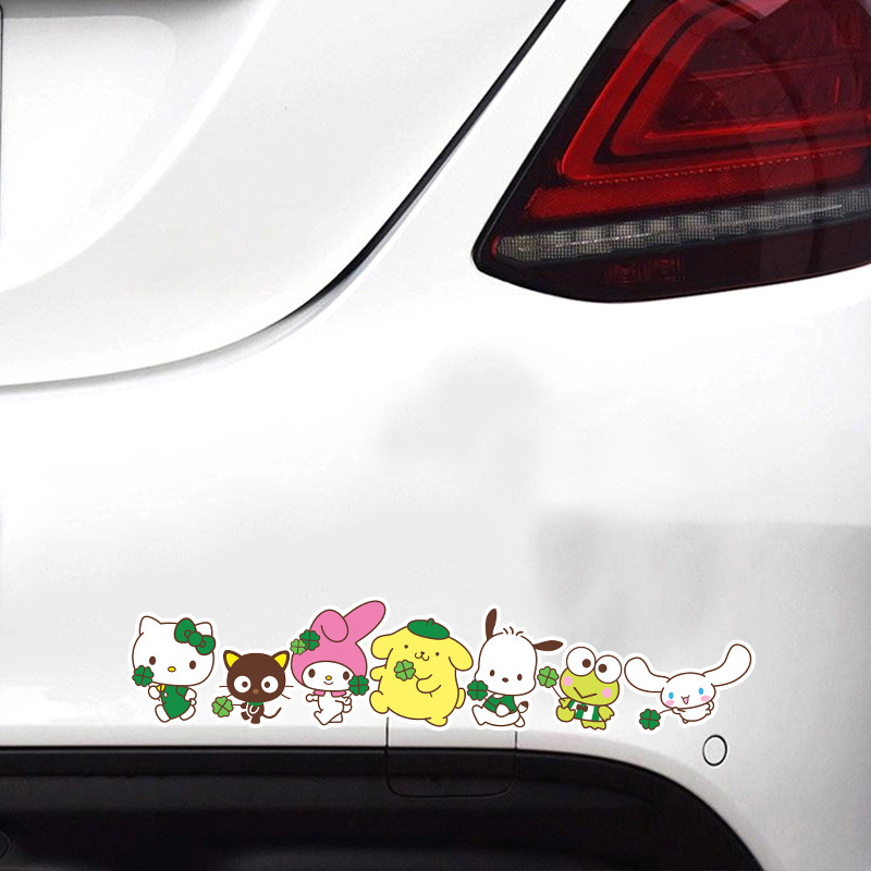 산리오 만화 스티커 자동차 창 후면 유리 맞춤형 창조적 인 장식 범퍼 스티커 전기 자동차 바디 스티커
