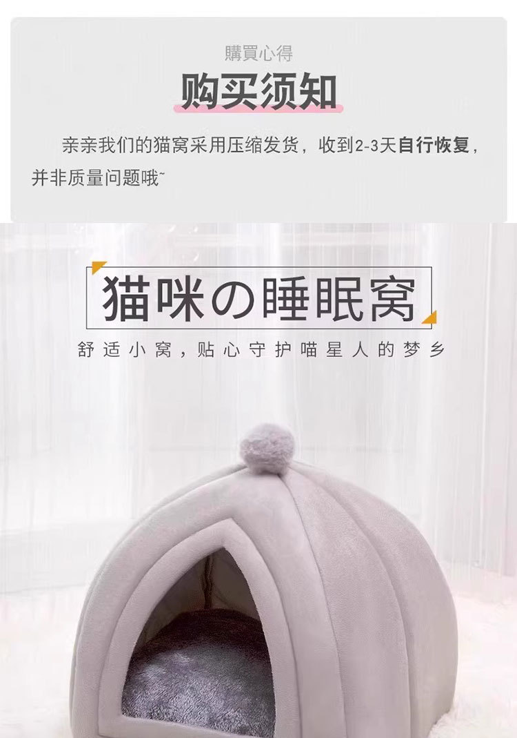 유르트 애완 동물 둥지 반 폐쇄 고양이 둥지 두꺼운 따뜻한 고양이 집 세척 가능한 사계절 유니버설 작은 개 잠자는 침대스토어 가기