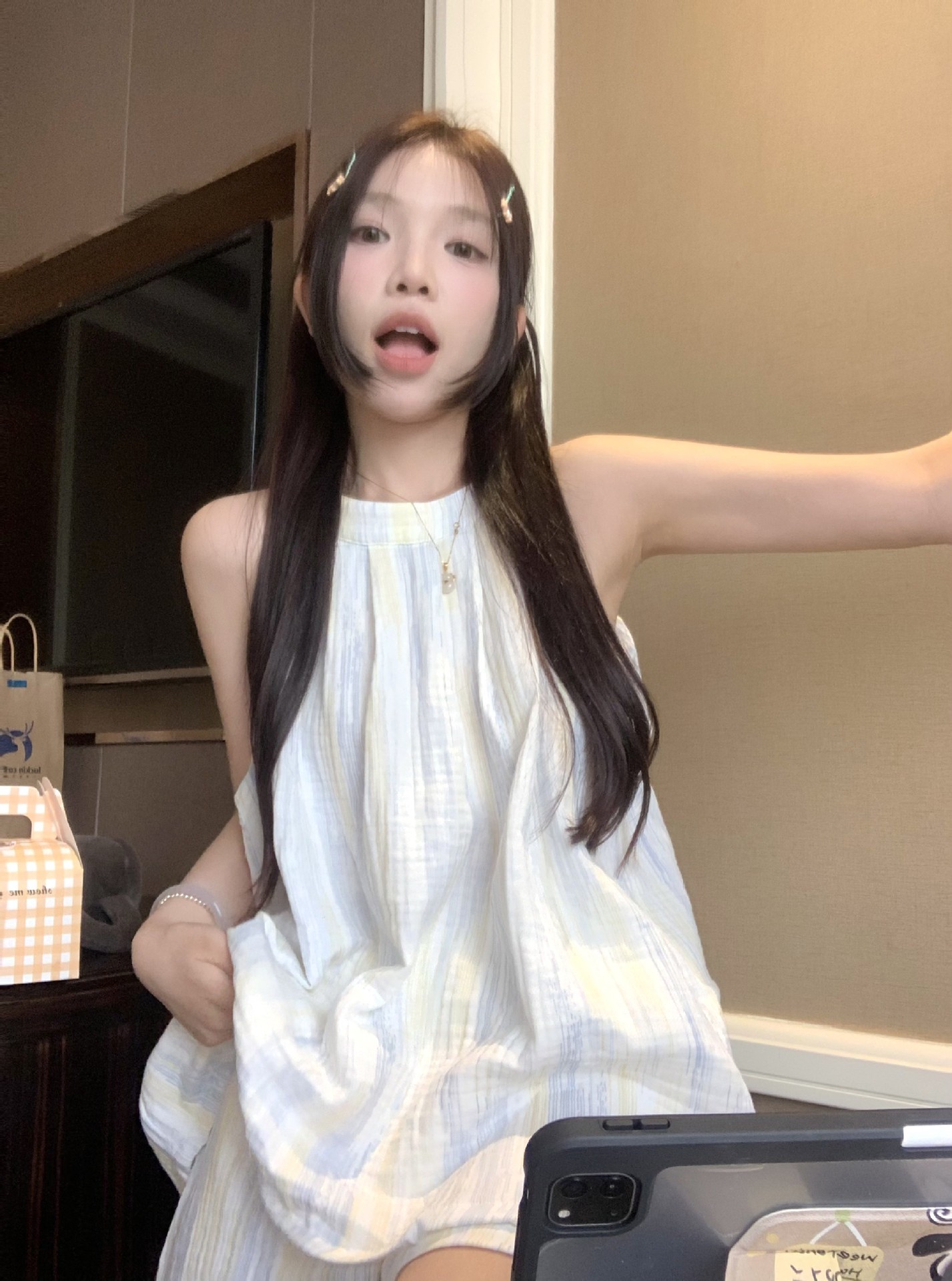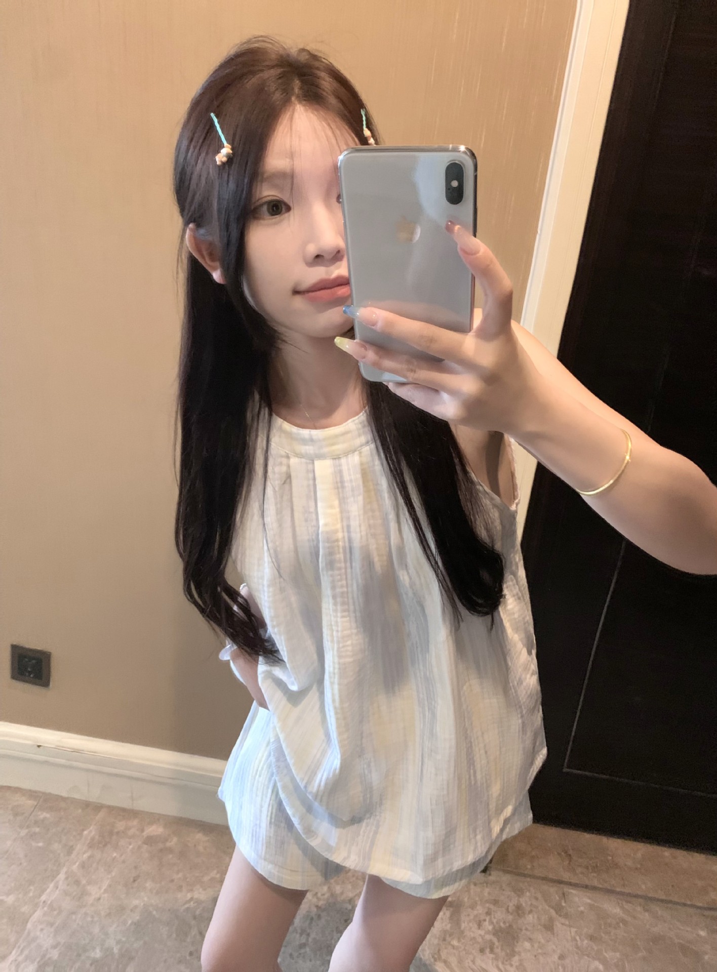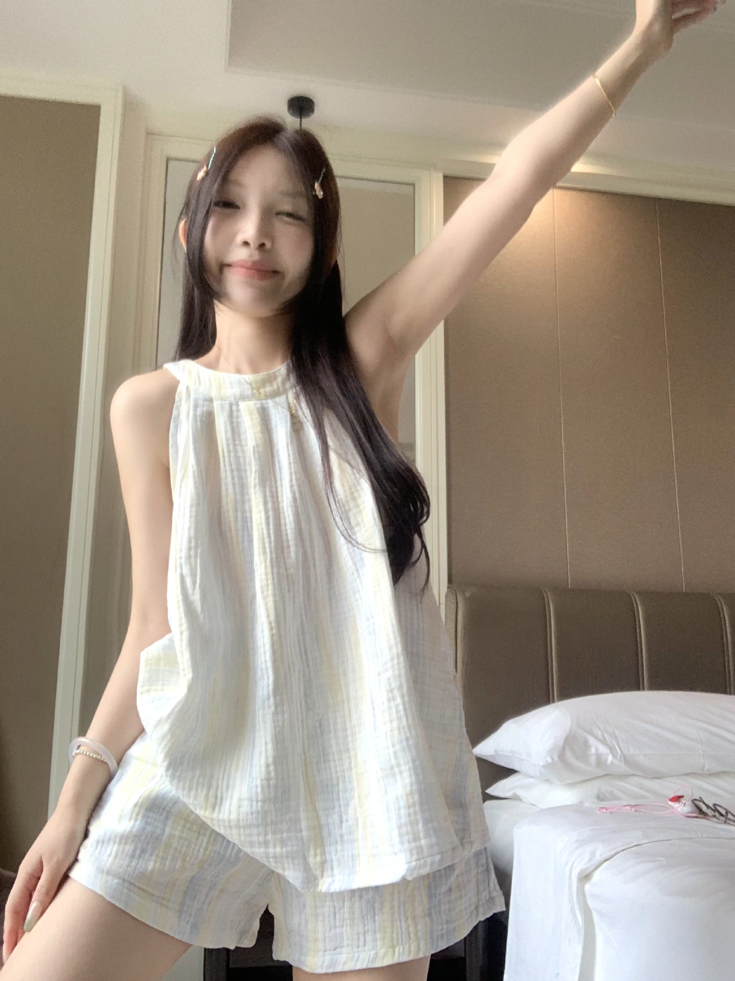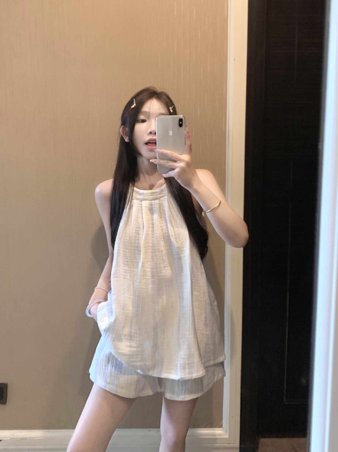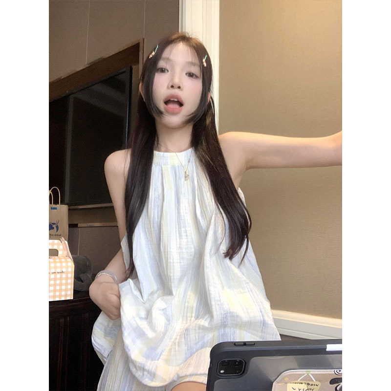 한국 인터넷 연예인 서스펜더 홀터넥 잠옷 반바지 정장 여성 여름 2025 새로운 달콤한 순수한 욕망 소녀 홈웨어스토어 가기