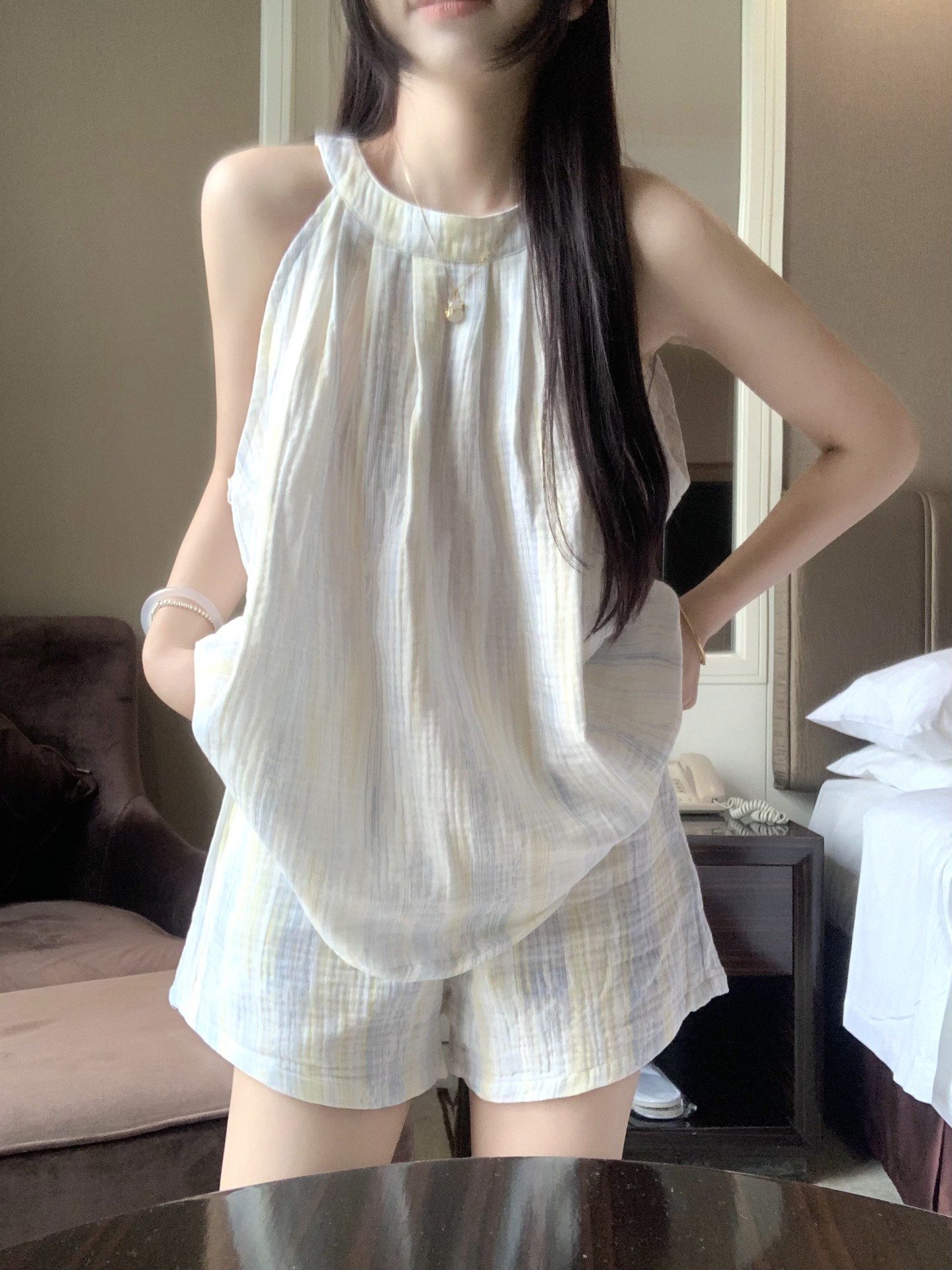• 스트라이프 홀터넥 쇼츠 [세트]