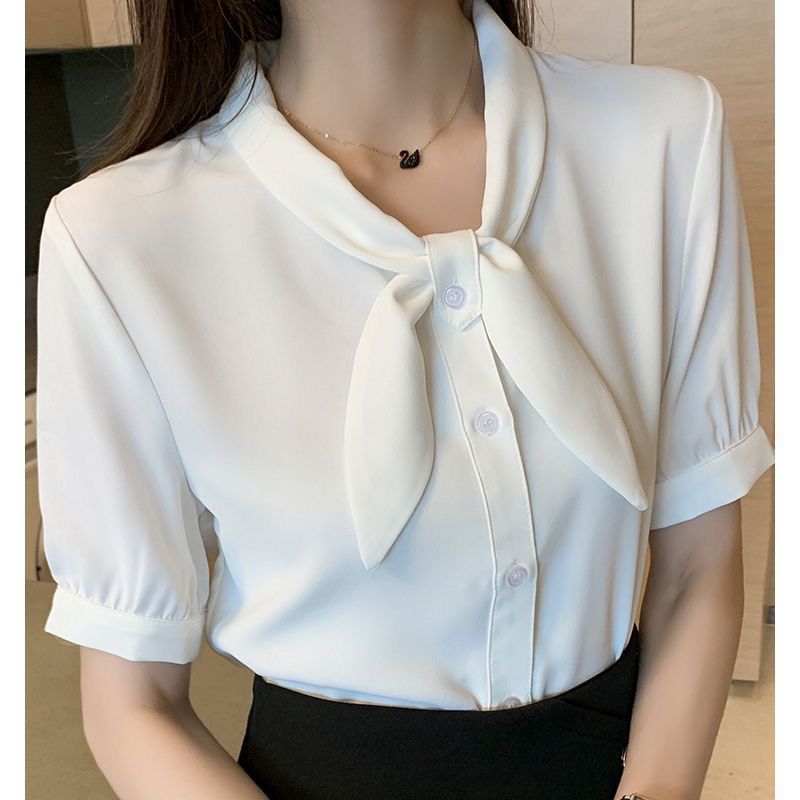 반팔 쉬폰 셔츠 여성 여름 2024 새로운 활 기질 전문 OL 셔츠 패션 웨스턴 스타일 탑스토어 가기