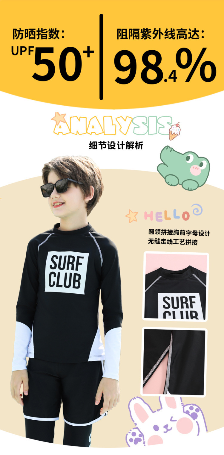 2024新款防晒男童儿童游泳衣分体中大童潜水服防晒长袖沙滩泳装