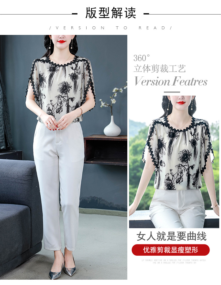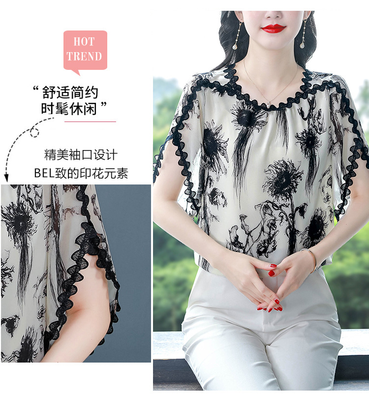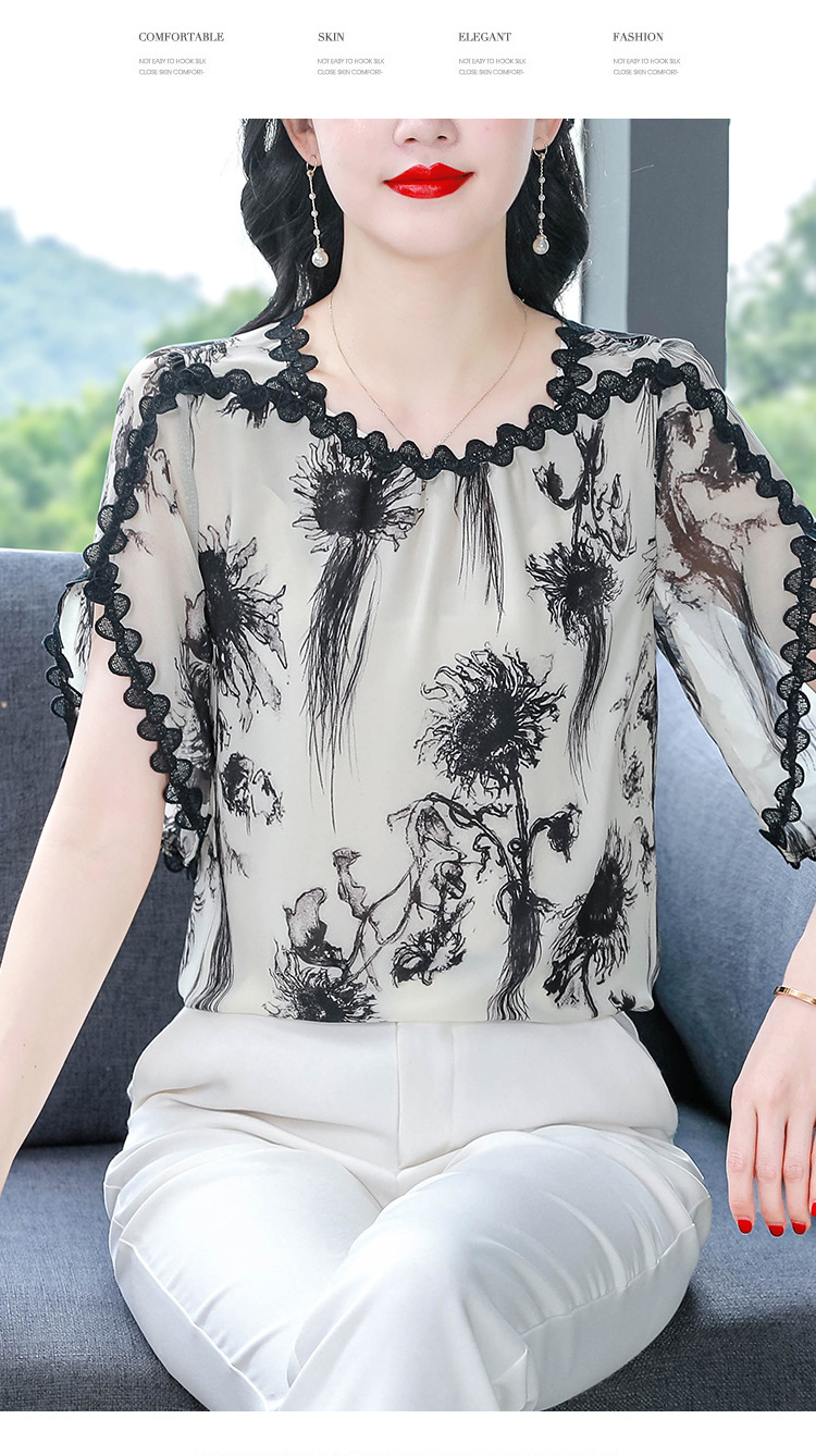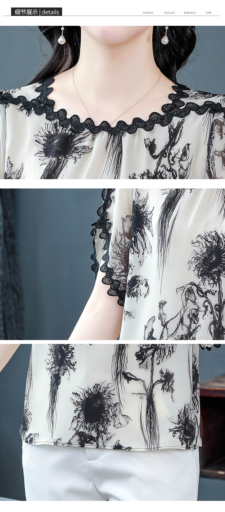 우아한 인쇄 된 여성의 2024 셔츠 여름 새로운 반팔 탑 레이스 바느질 패션 올 매치 꽃 쉬폰 셔츠