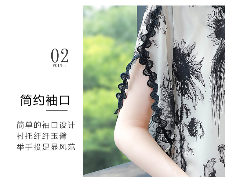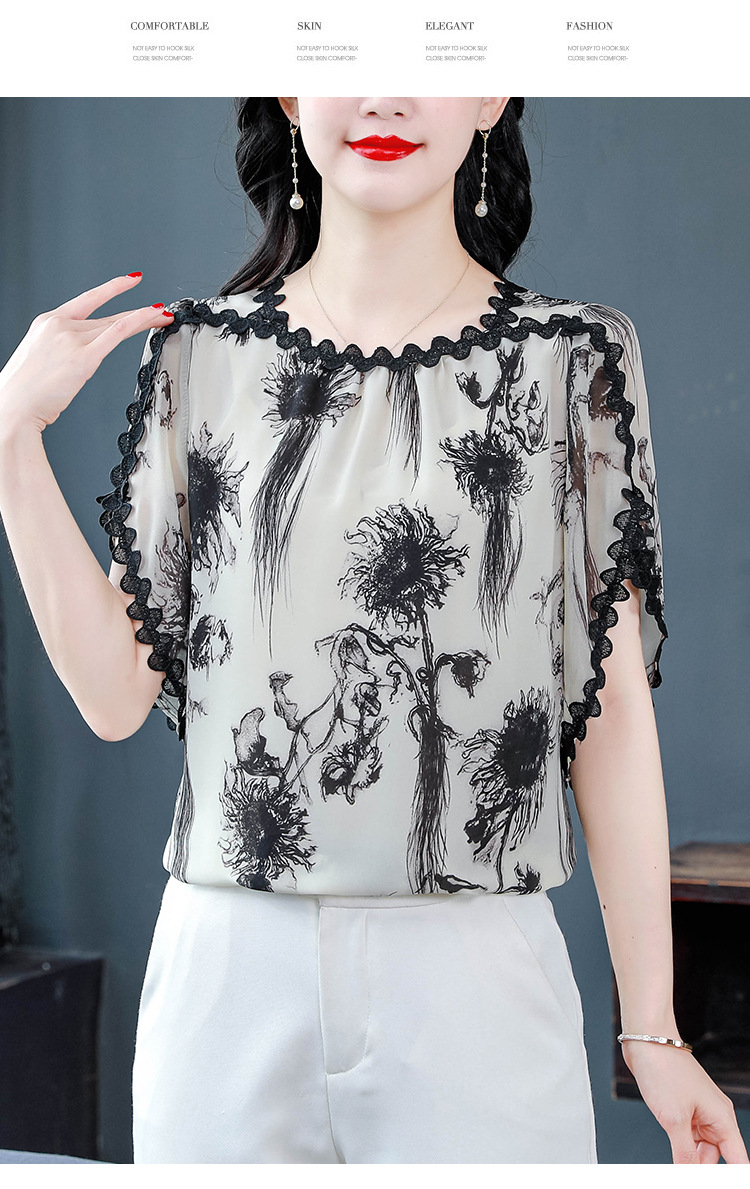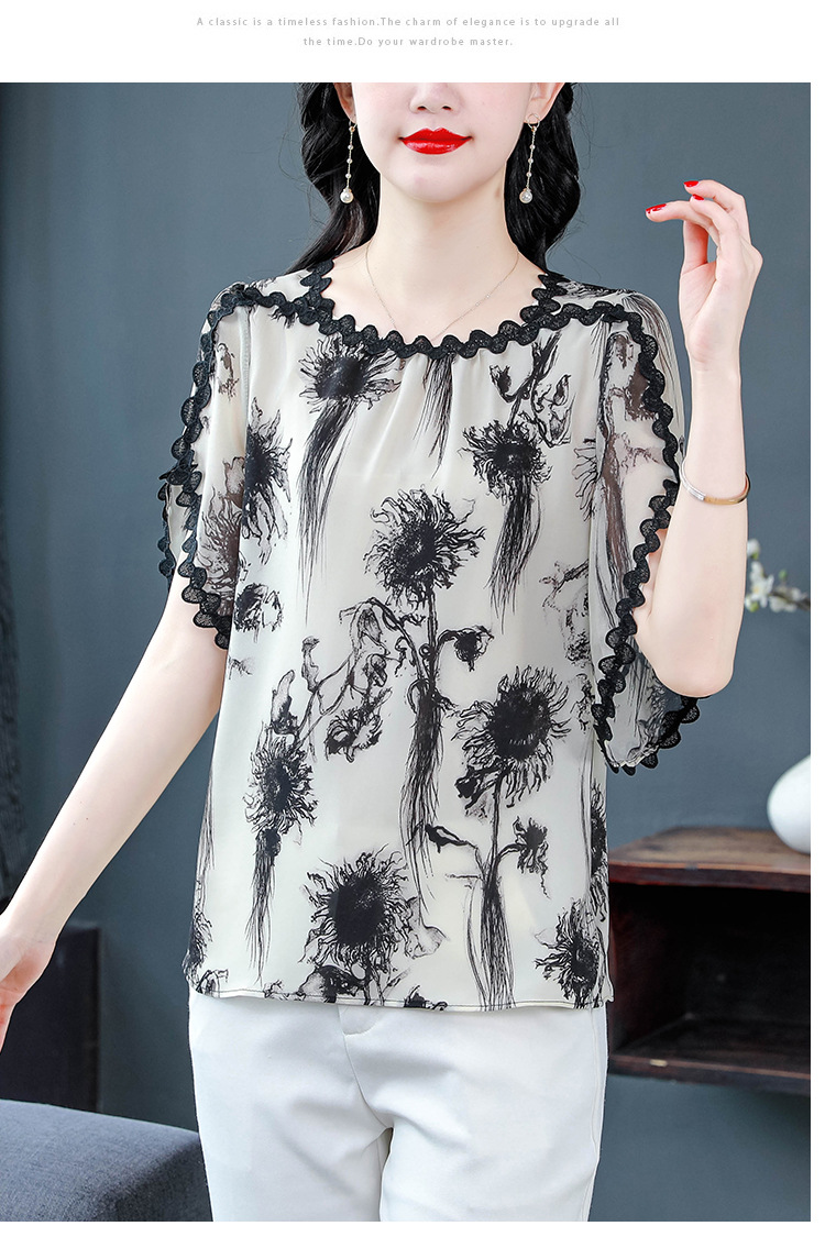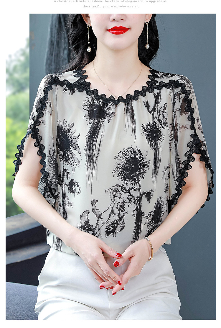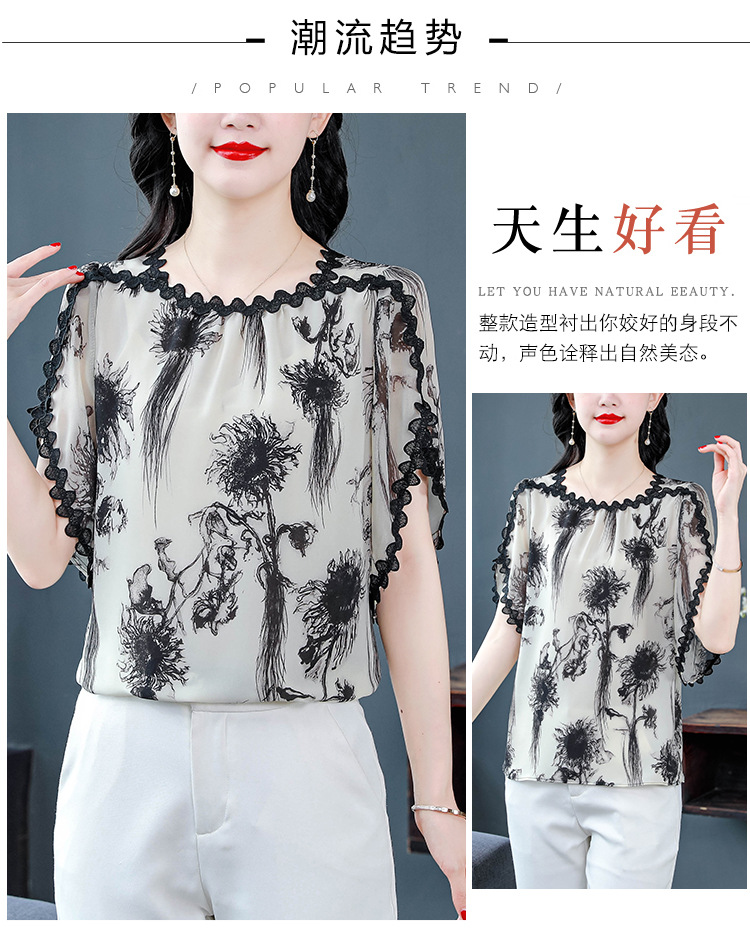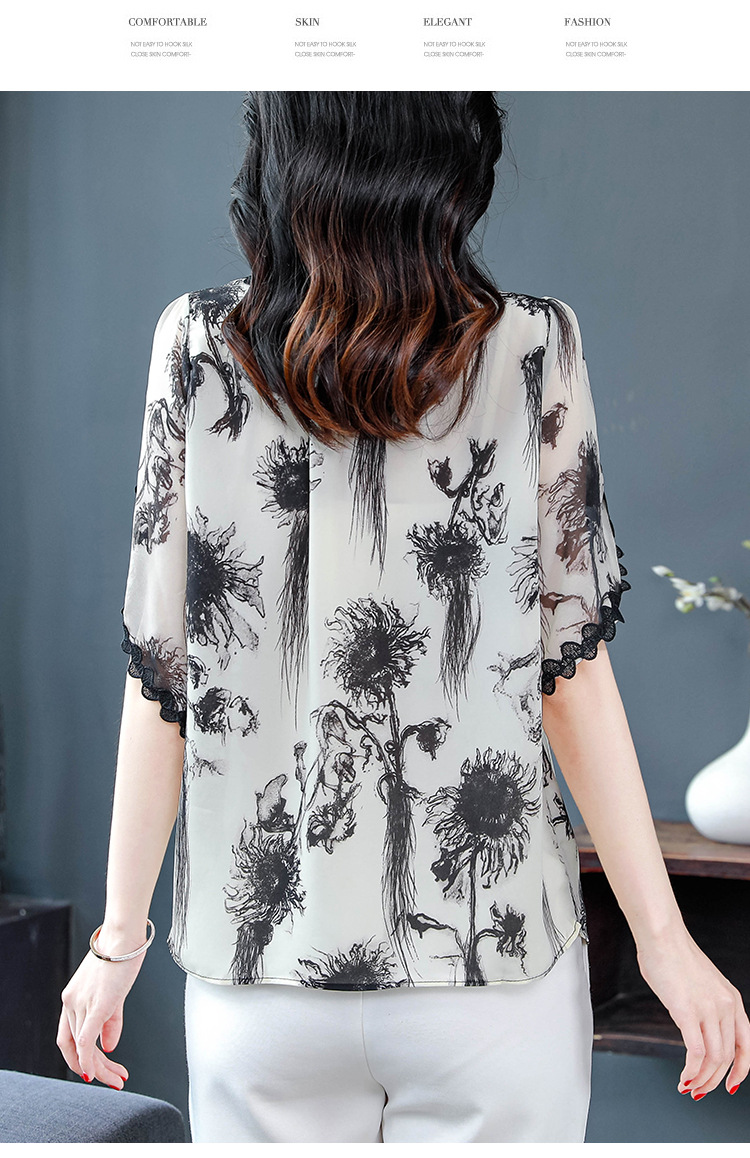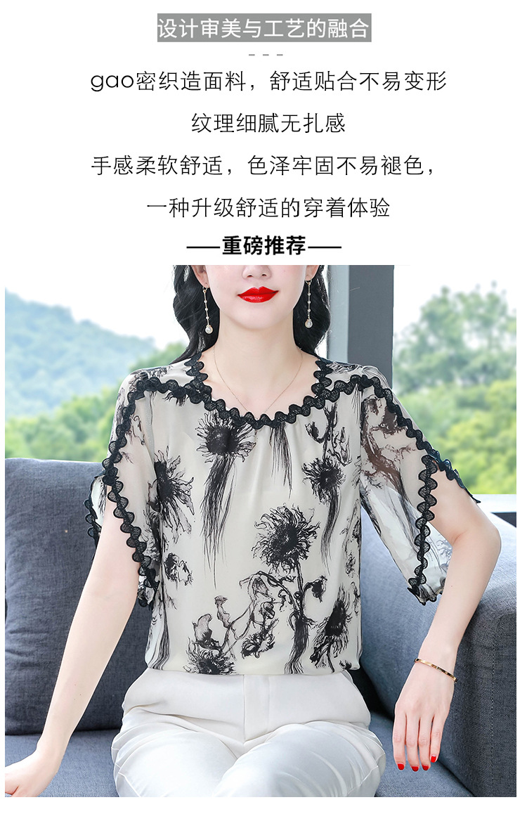 우아한 인쇄 된 여성의 2024 셔츠 여름 새로운 반팔 탑 레이스 바느질 패션 올 매치 꽃 쉬폰 셔츠스토어 가기