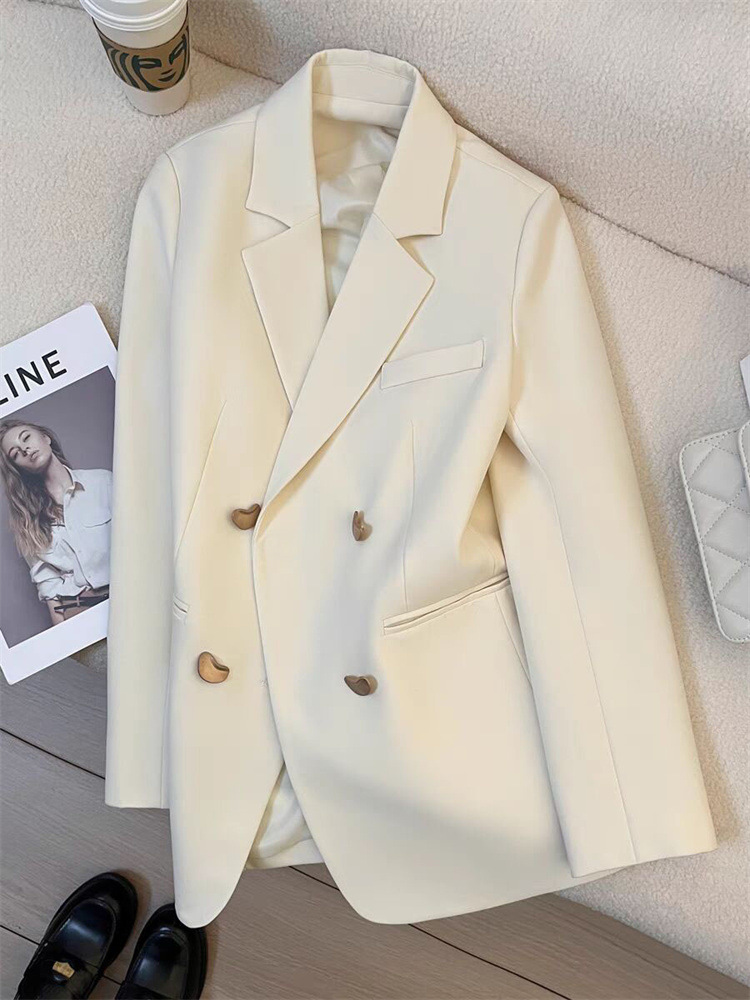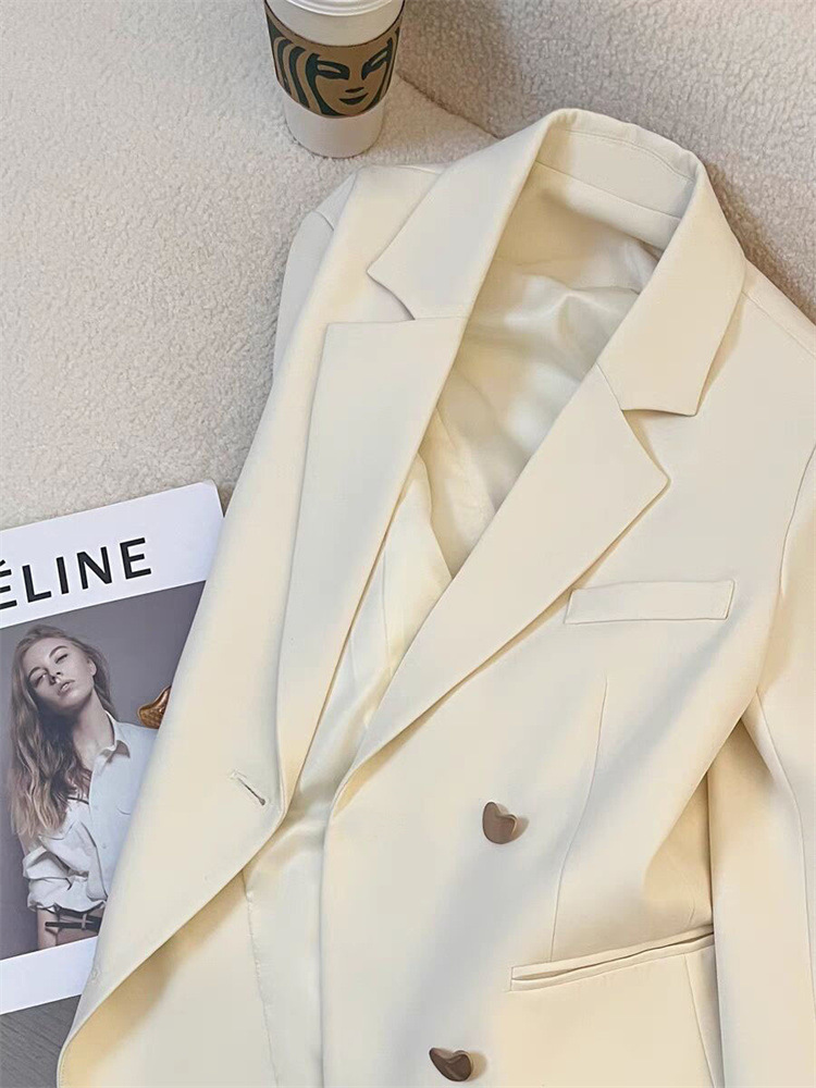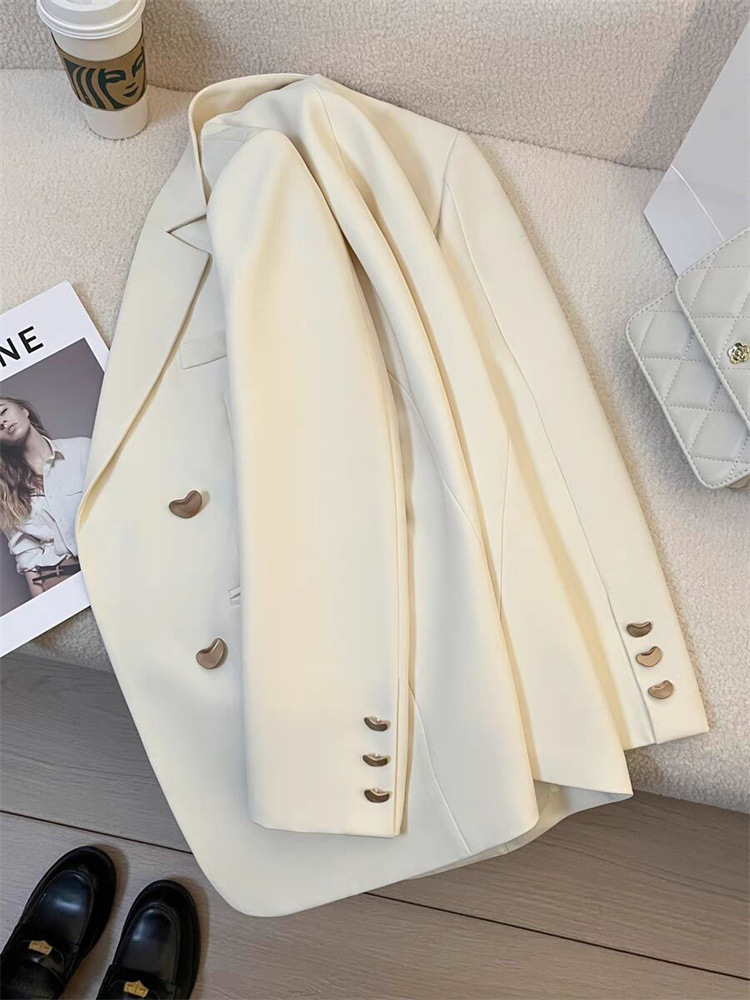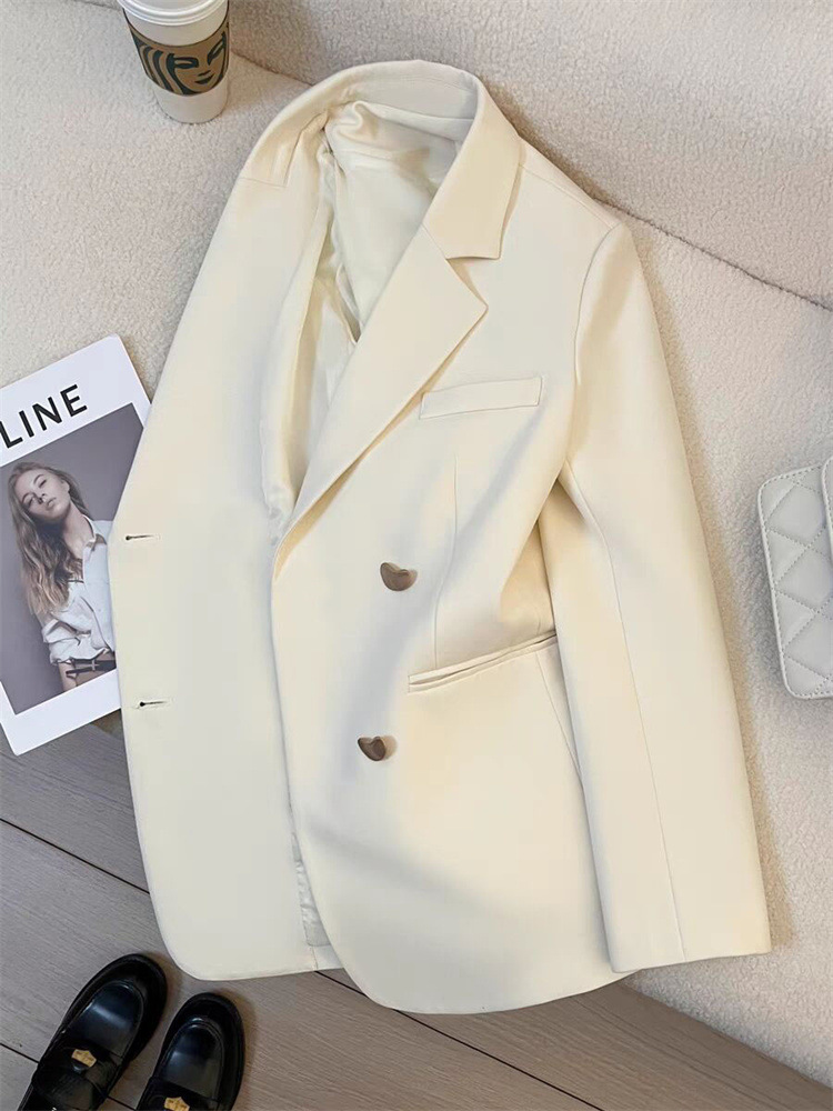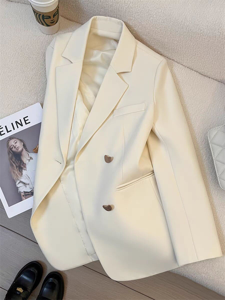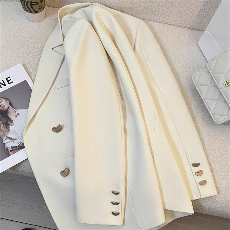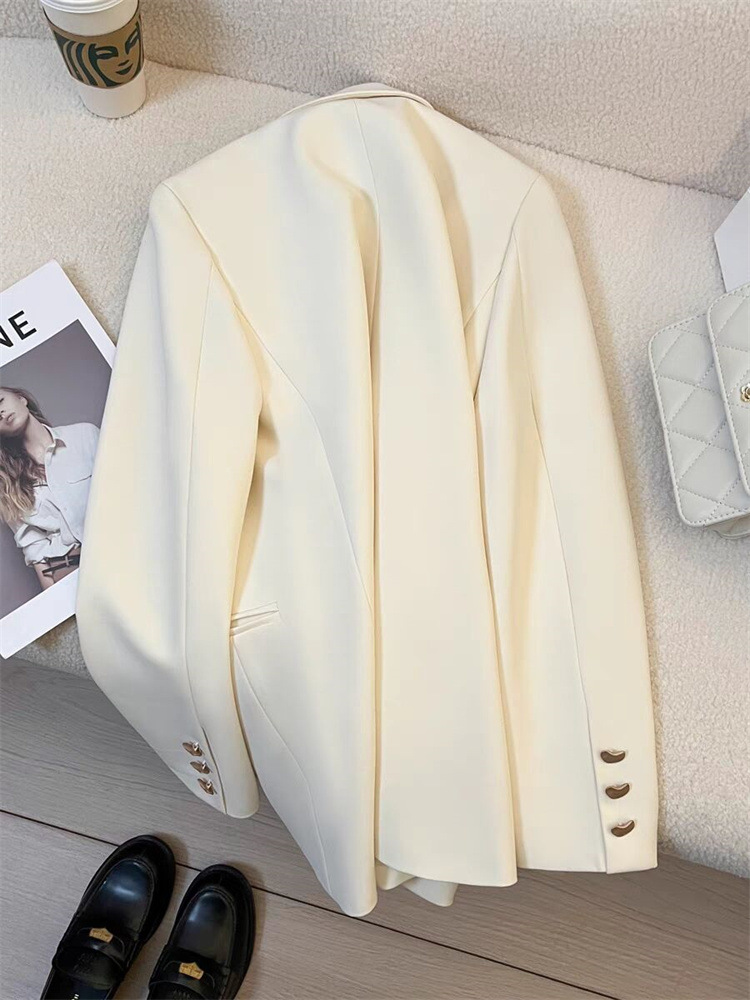 작은 정장 재킷 2026 신상 메탈 버튼 봄 가을 한국 스타일 통근용 인기 밀크 화이트 정장 상의스토어 가기