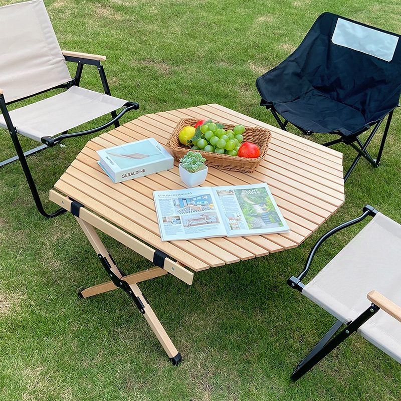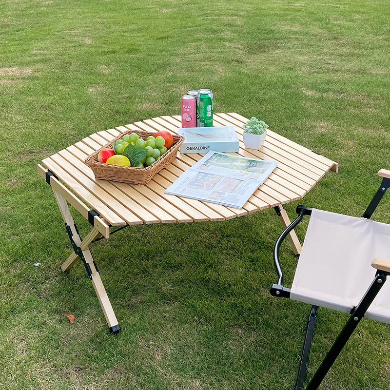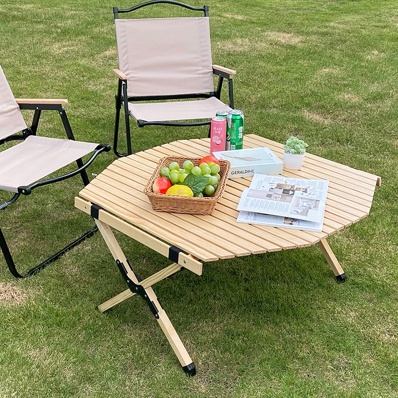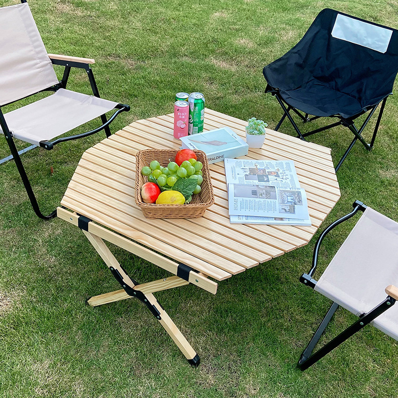 단단한 나무 접이식 팔각 테이블 바베큐 캠핑 대형 계란말이 테이블 휴대용 자율 주행 여행 가정용 간이 피크닉 테이블 캠핑스토어 가기
