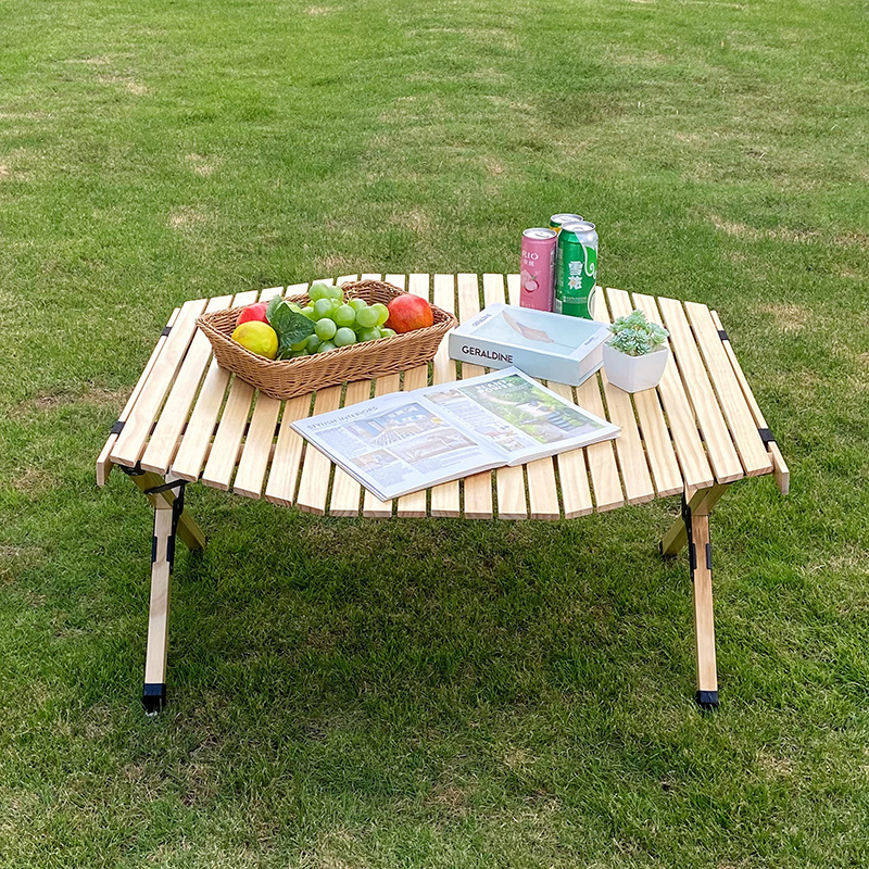 단단한 나무 접이식 팔각 테이블 바베큐 캠핑 대형 계란말이 테이블 휴대용 자율 주행 여행 가정용 간이 피크닉 테이블 캠핑