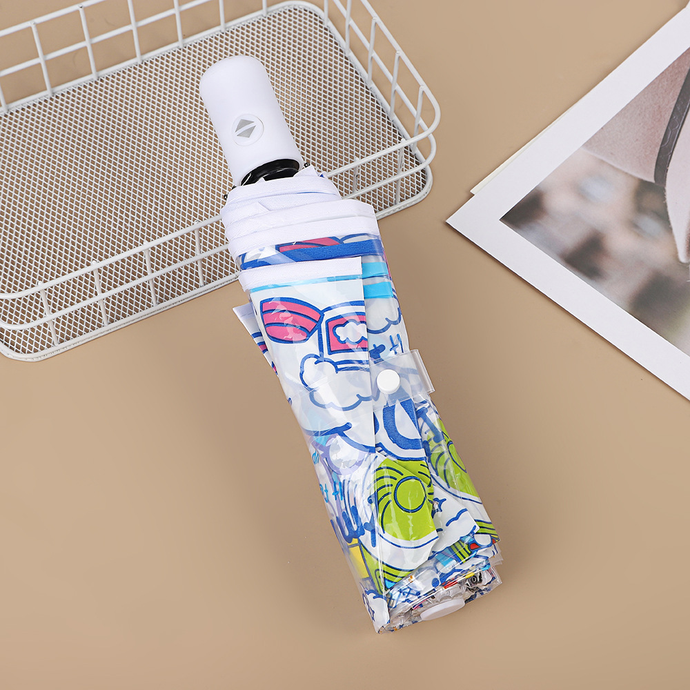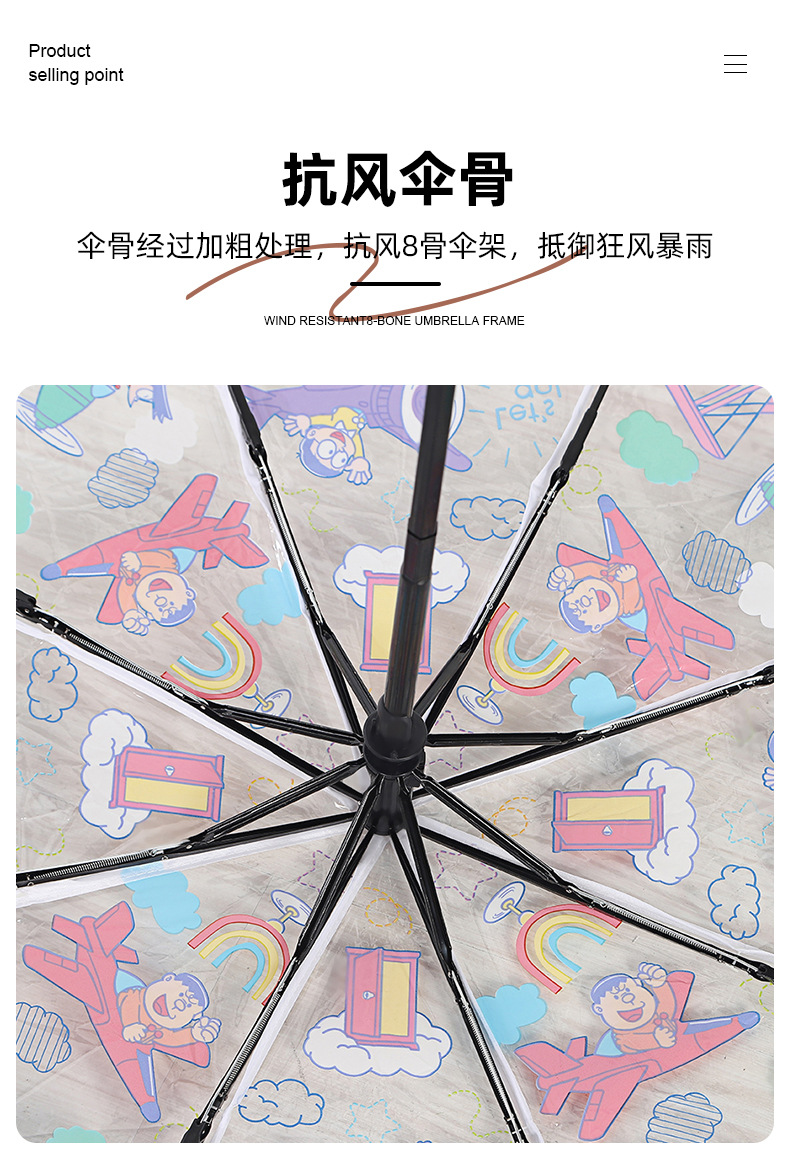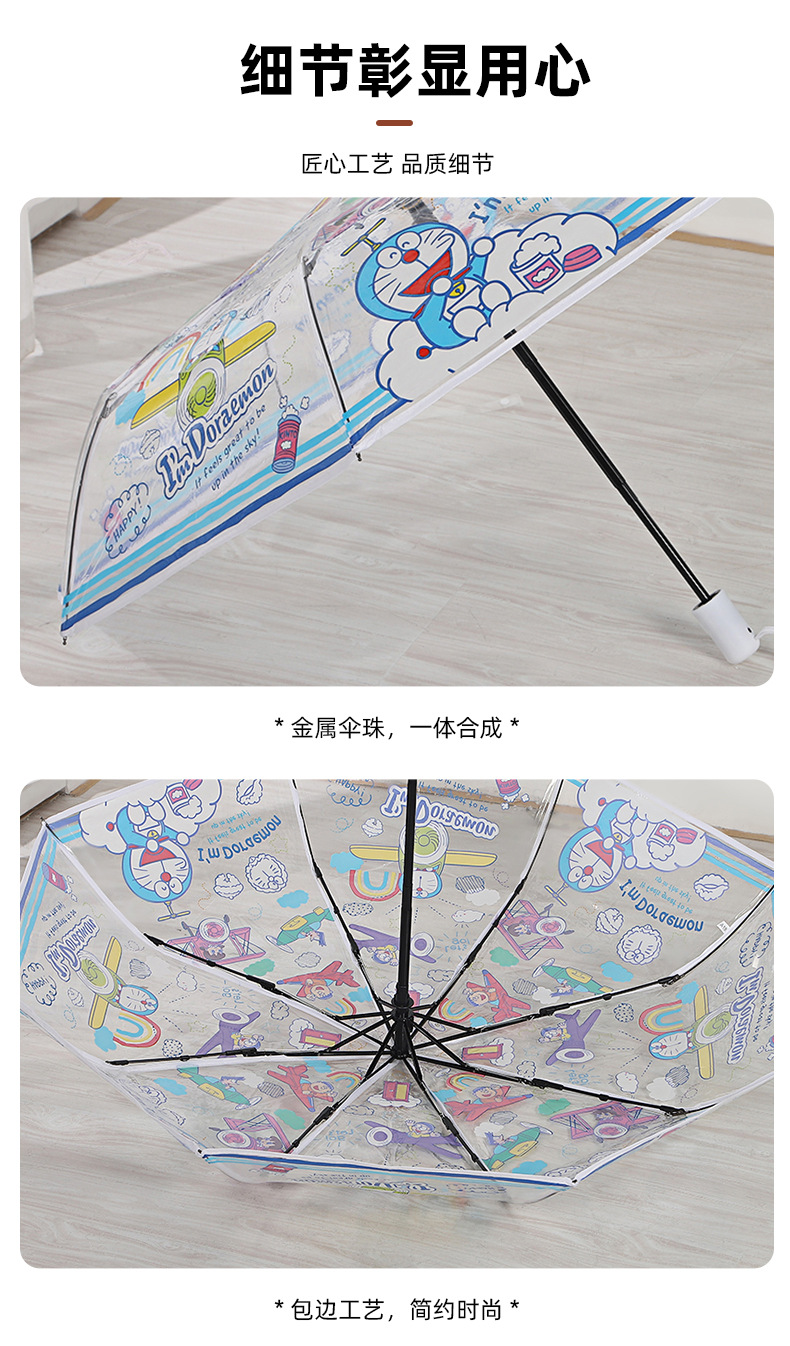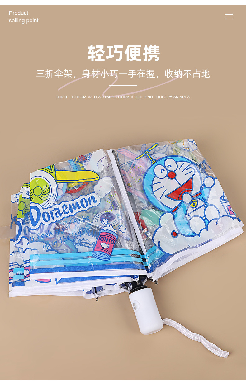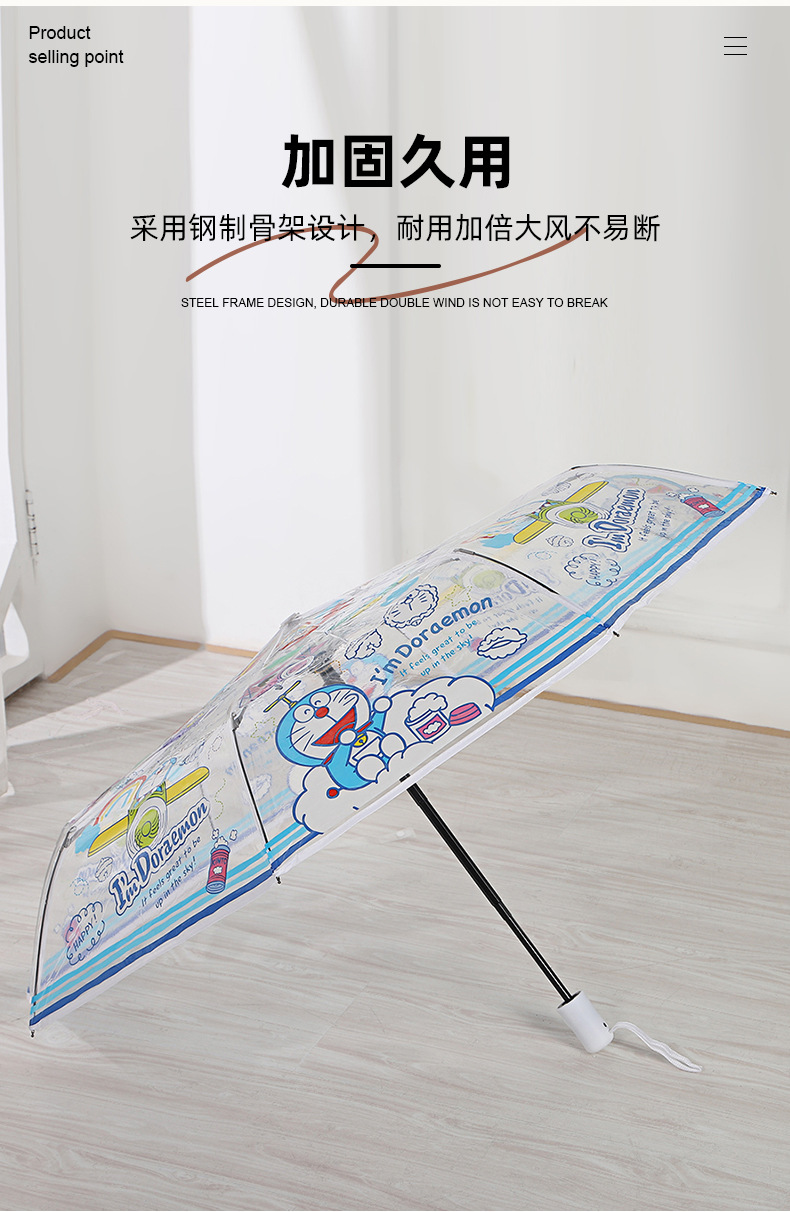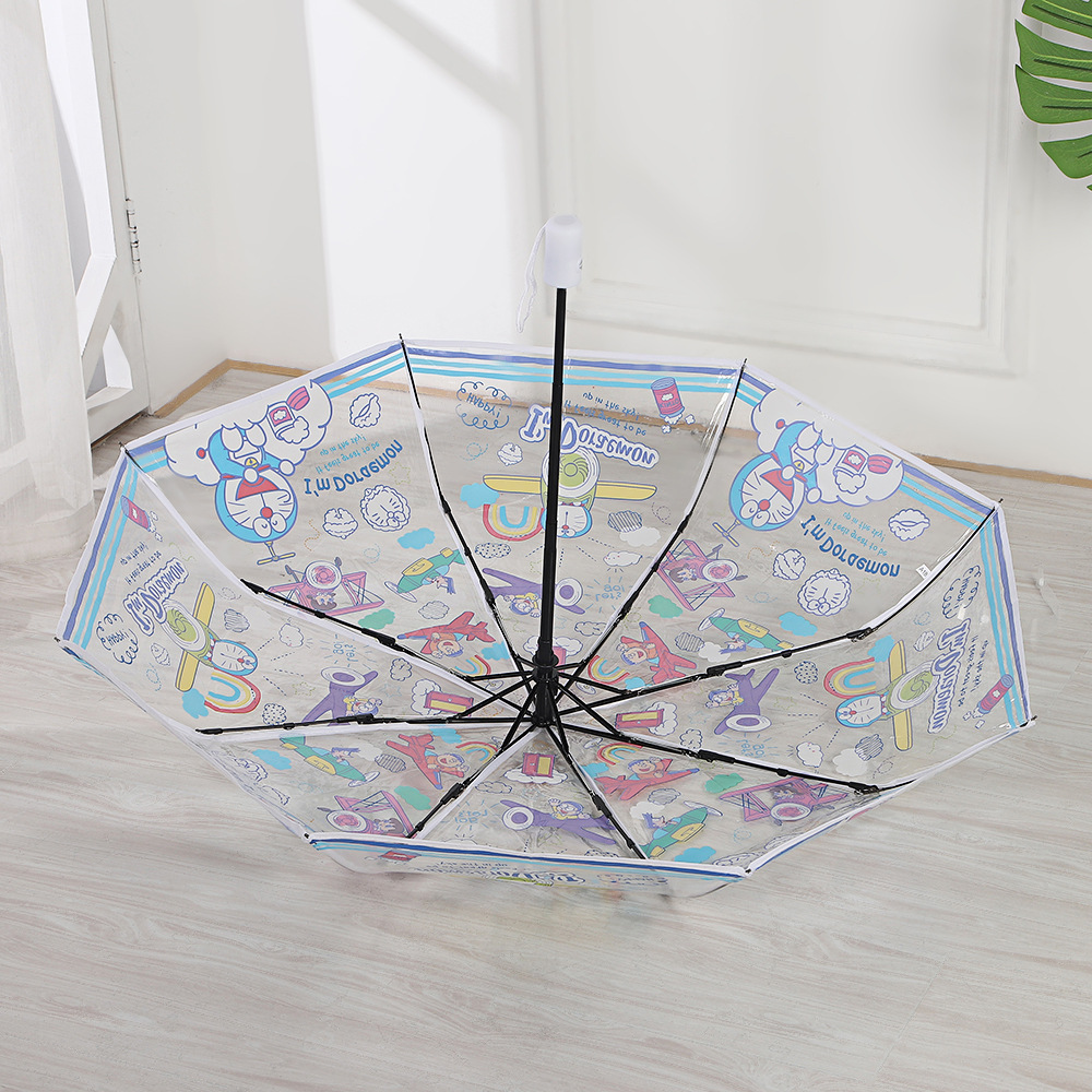 도라에몽 우산 어린이 귀여운 만화 투명 우산 3 배 자동 스트레이트 핸들 우산 접히는 성인 우산스토어 가기