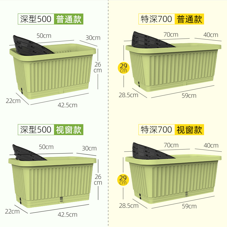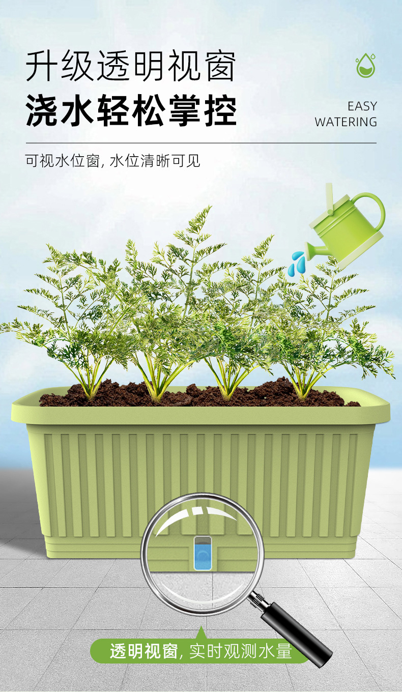 발코니 야채 냄비 실내 직사각형 플라스틱 꽃 냄비 두꺼운 야외 심기 냄비 가정용 야채 특수 상자스토어 가기