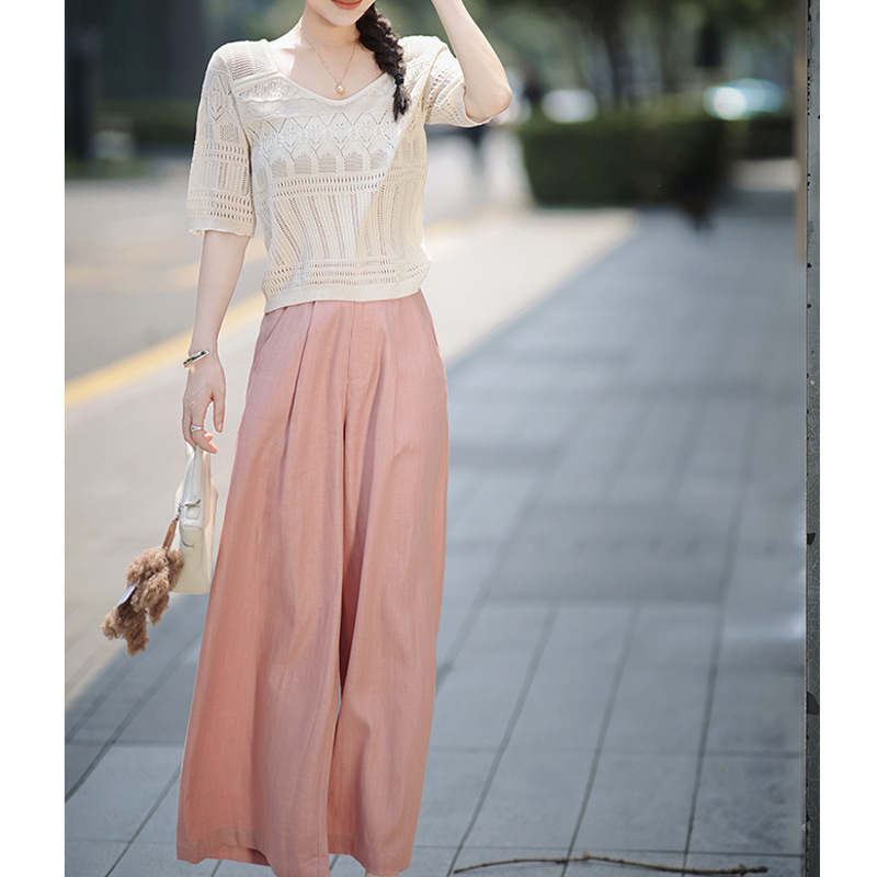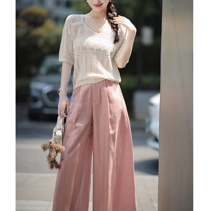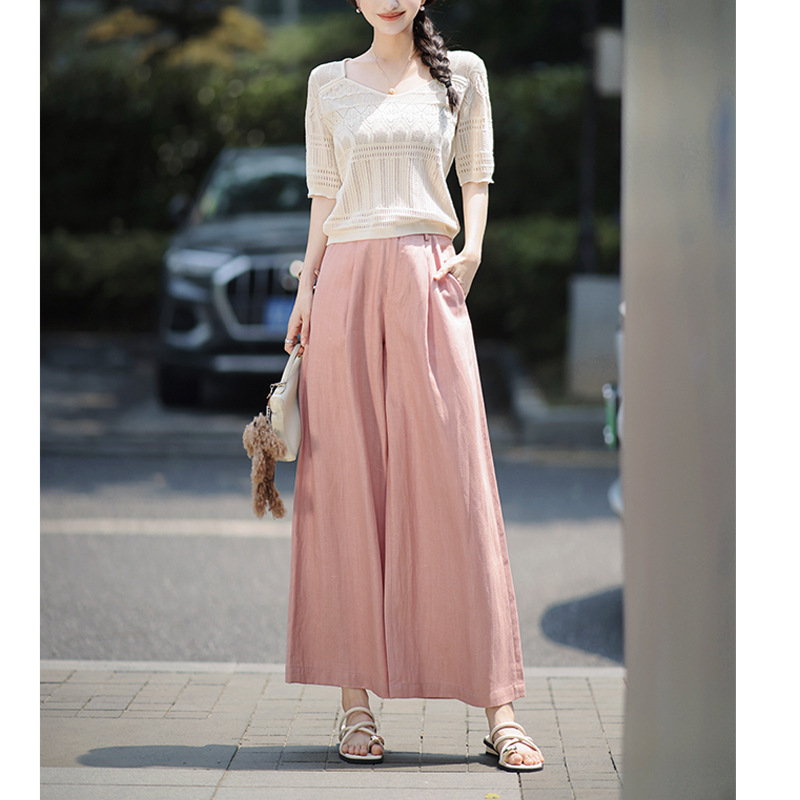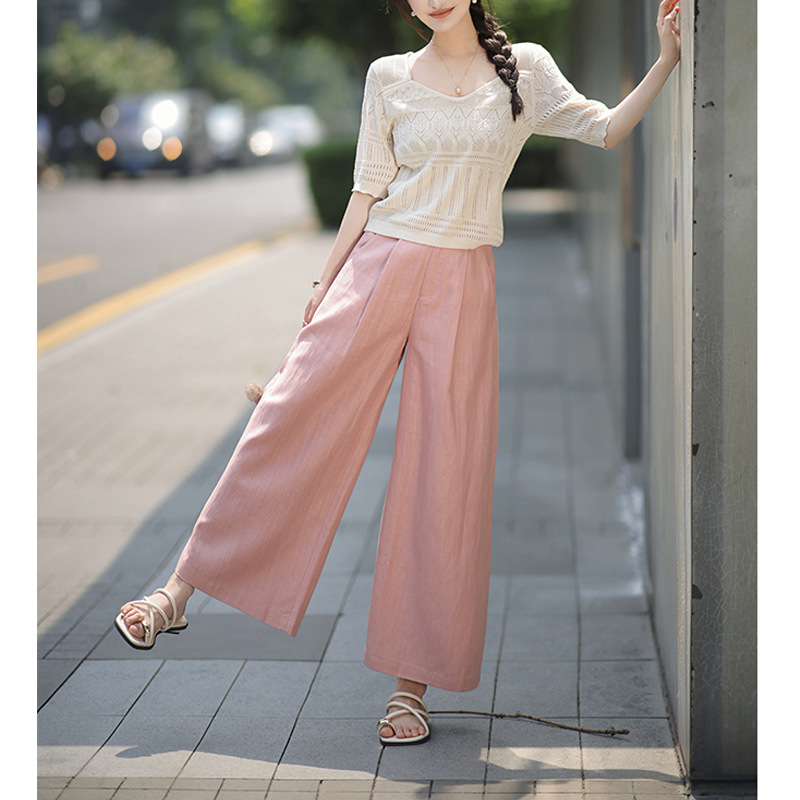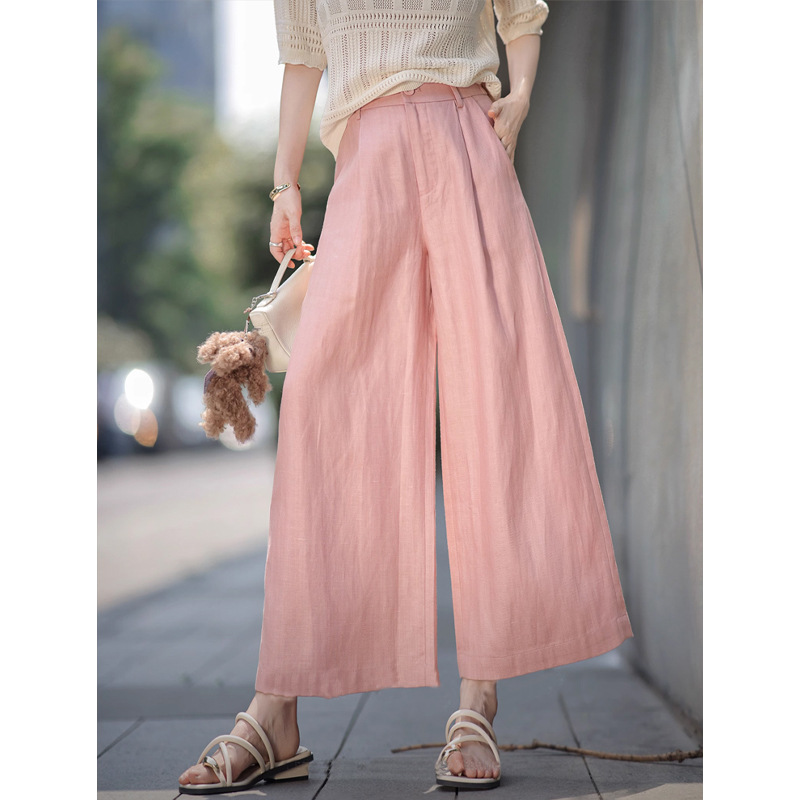 텐셀 리넨 넓은 다리 바지 여성용 높은 허리 얇은 카프리 바지 여름 새로운 도착 스트레치 허리 아이스 실크 캐주얼 루즈 스트레이트 팬츠