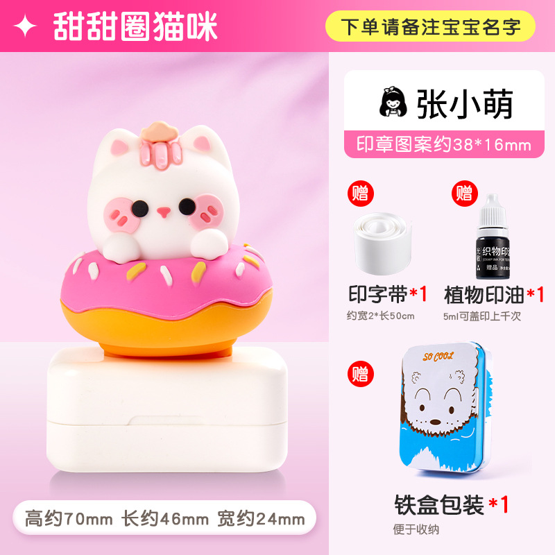 • [아기 이름 비고] 도넛 고양이 + 투명 네임 스티커 120개 + 네임 서클 20개
