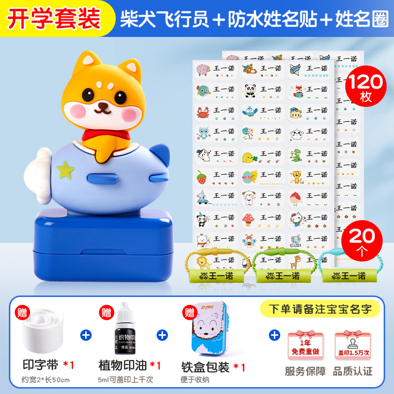 • [아기 이름 비고] 시바견 파일럿 + 투명 네임 스티커 120개 + 네임 서클 20개