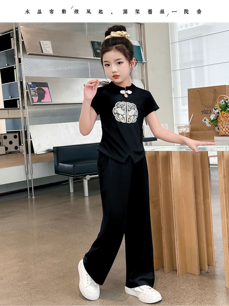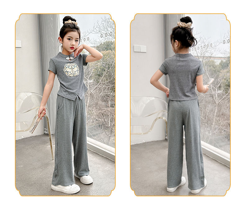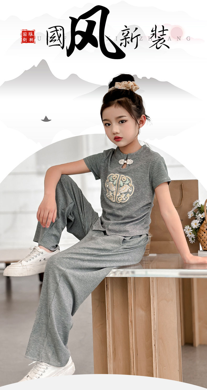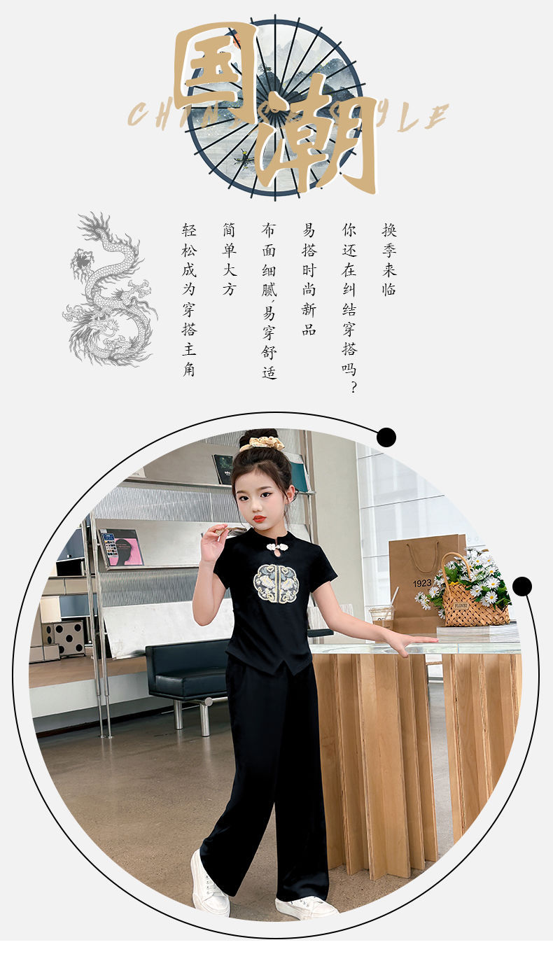 여아 여름 세트 2025 신상 여아 중대형 어린이용 신중국풍 반팔 투피스 세트 패션 여름 스타일