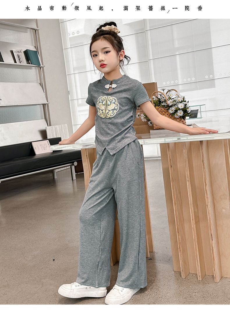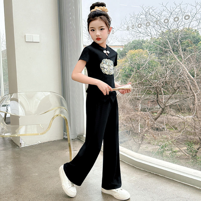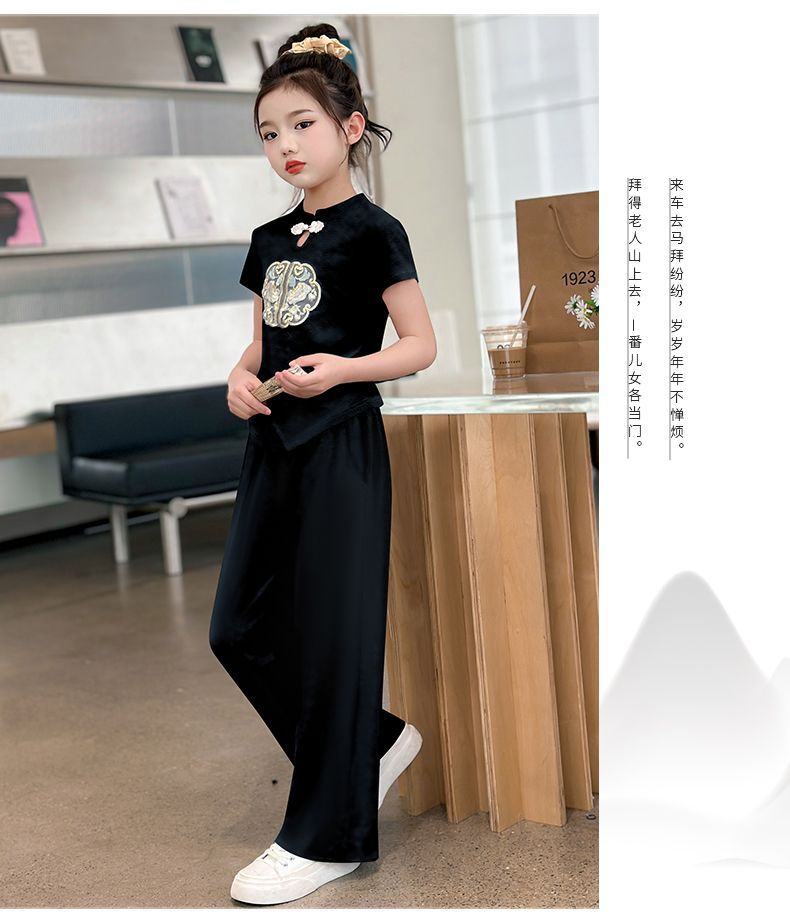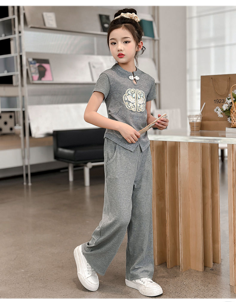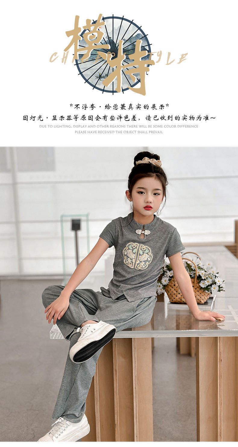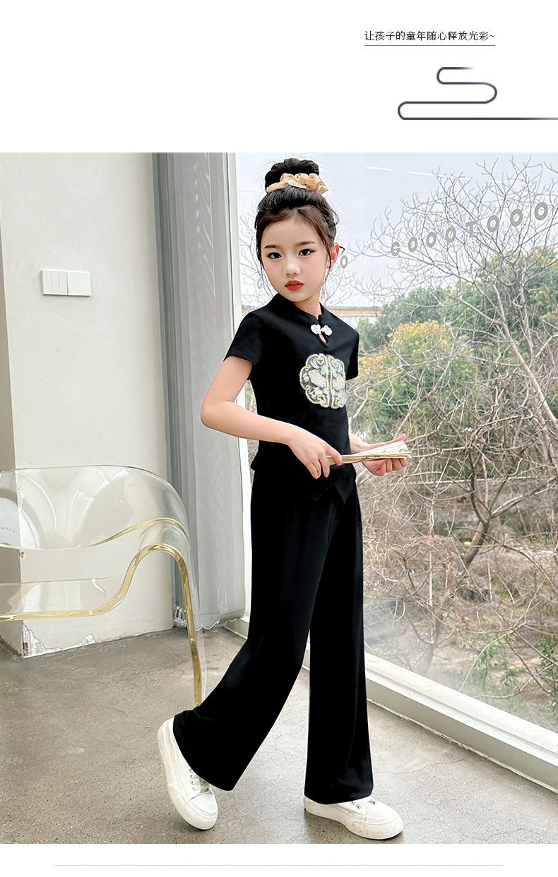 여아 여름 세트 2025 신상 여아 중대형 어린이용 신중국풍 반팔 투피스 세트 패션 여름 스타일