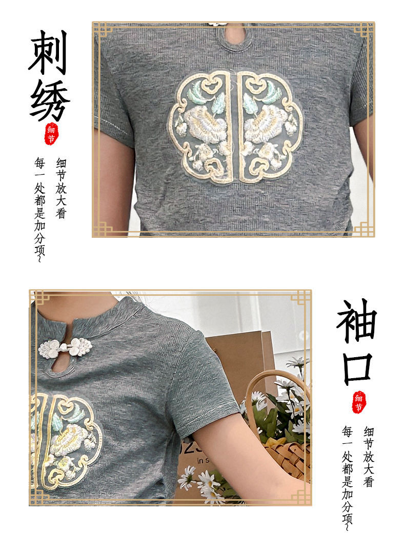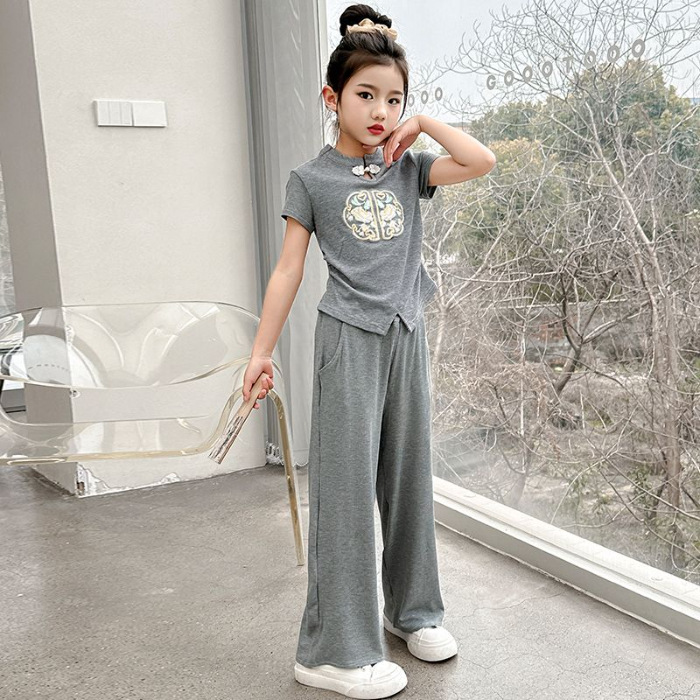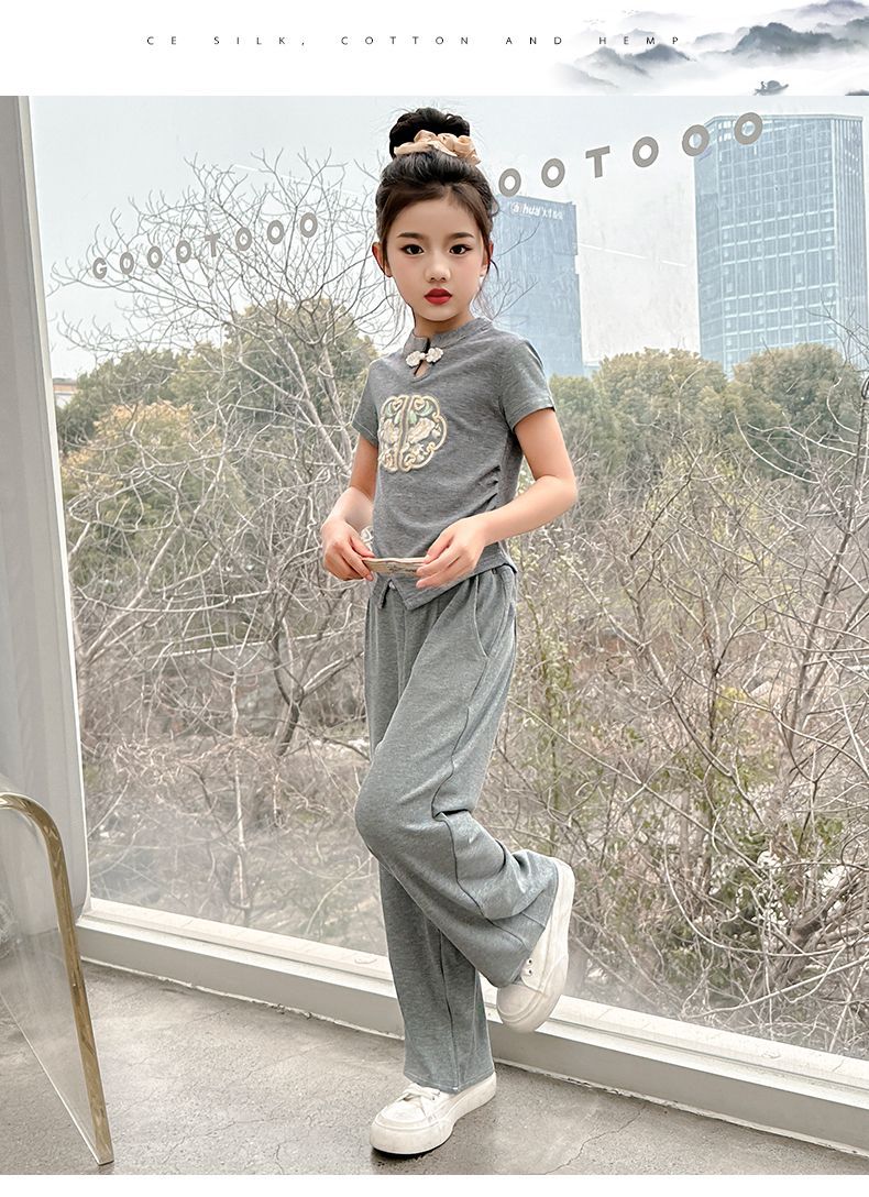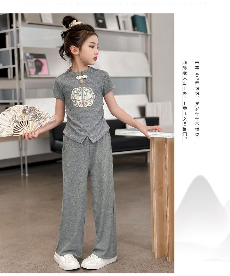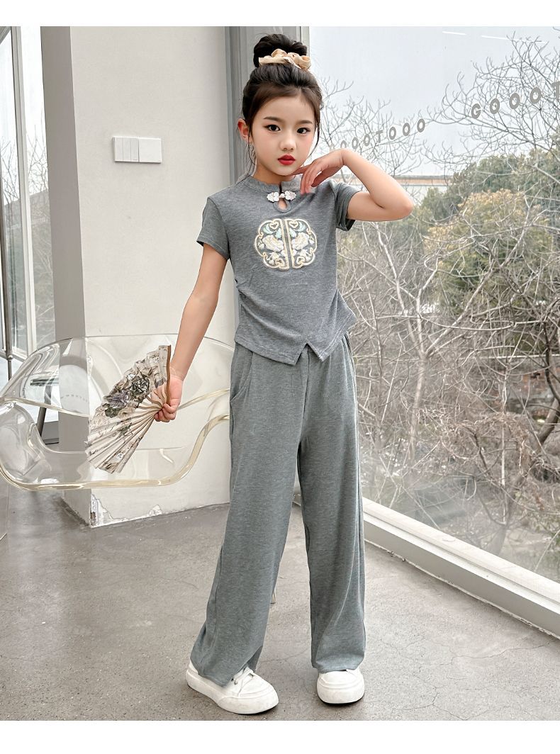 여아 여름 세트 2025 신상 여아 중대형 어린이용 신중국풍 반팔 투피스 세트 패션 여름 스타일