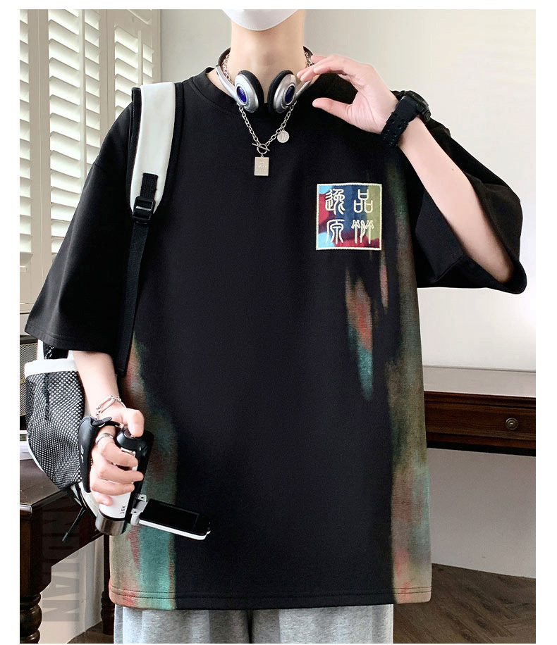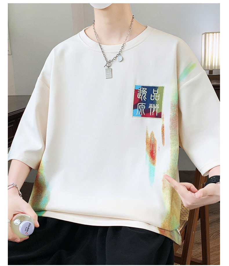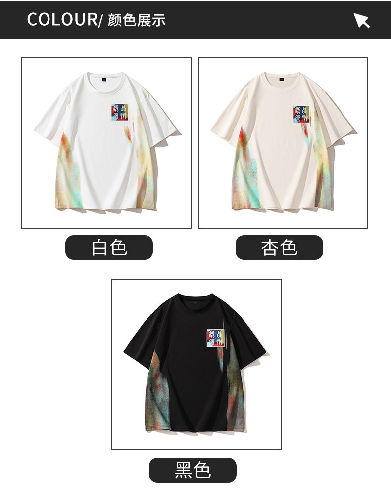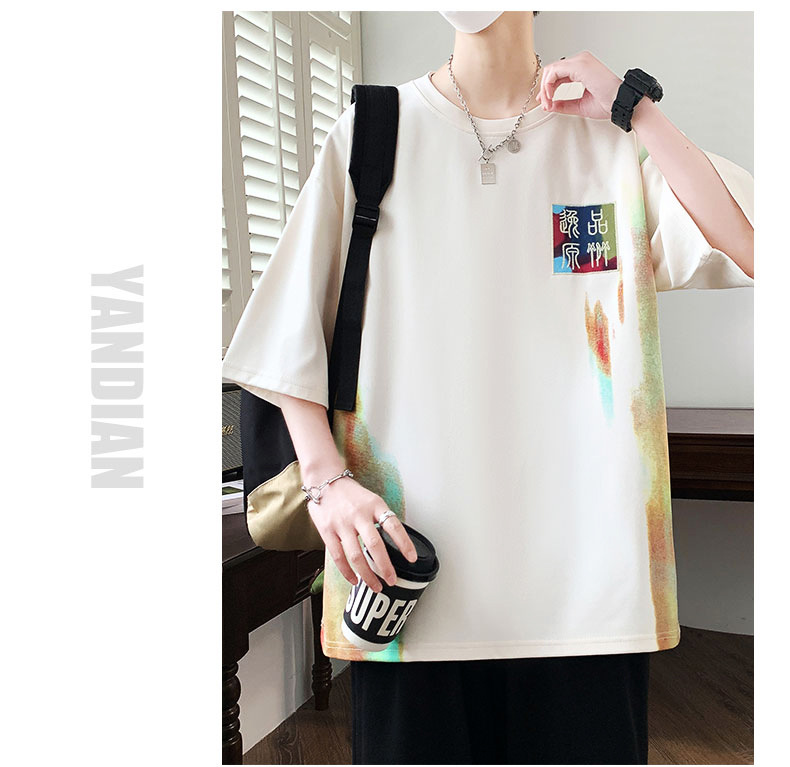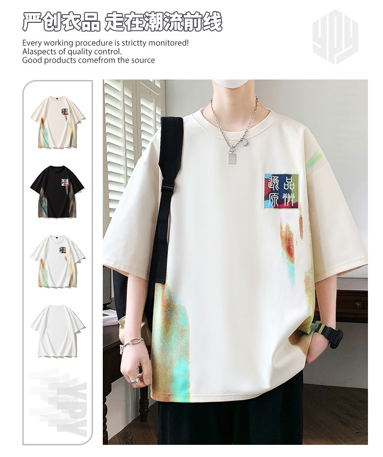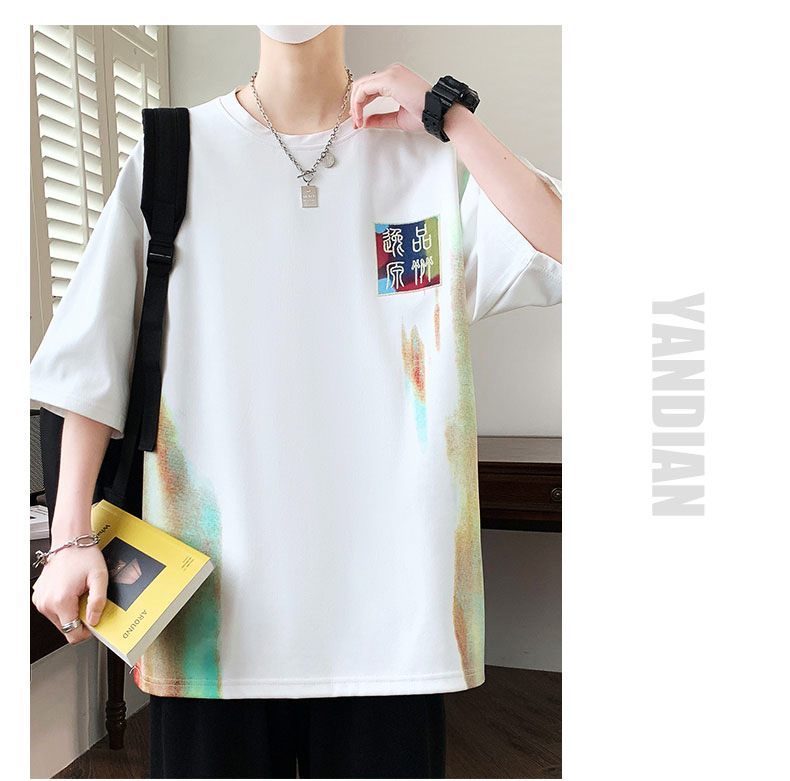 여름 유행 홍콩 스타일 남성 인쇄 라운드 넥 반팔 티셔츠 지방 남성 플러스 사이즈 플러스 사이즈 느슨한 캐주얼 티셔츠스토어 가기