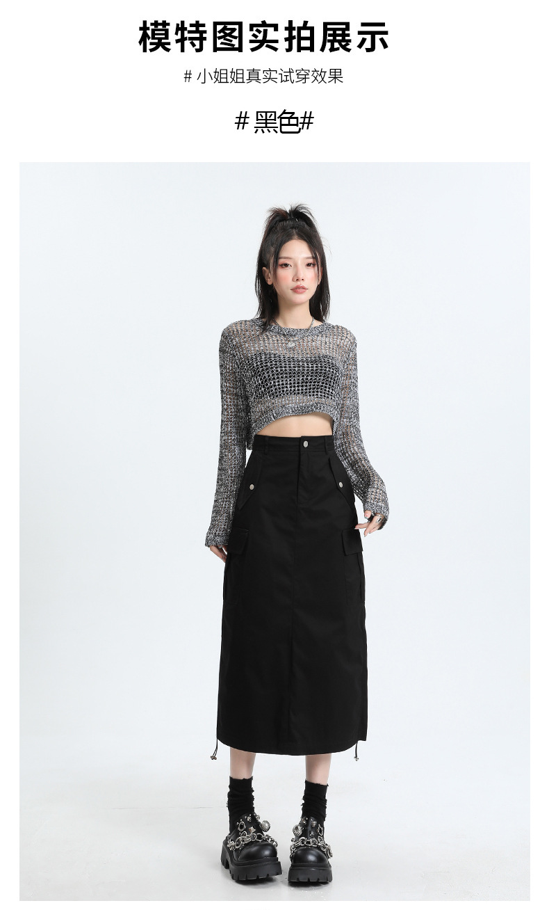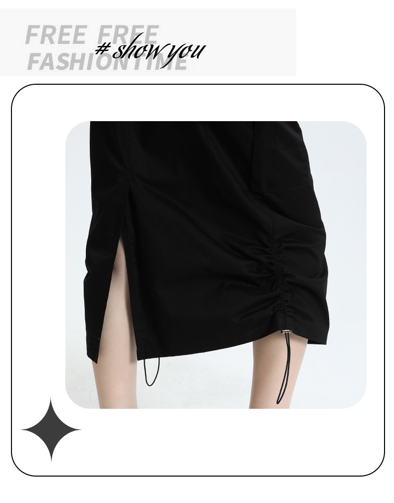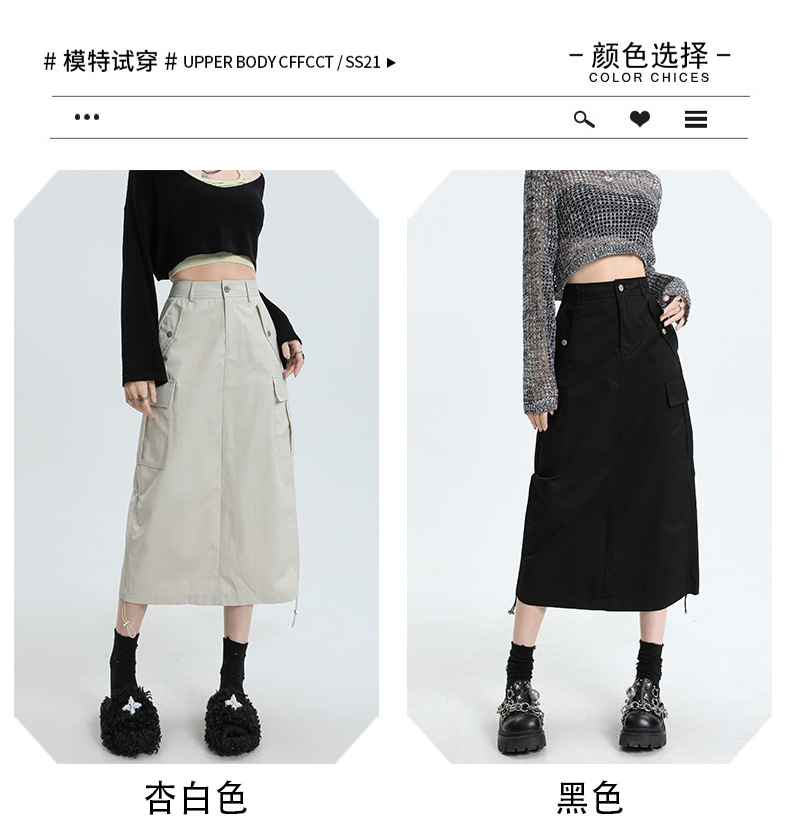 미국 스타일 드로우 스트링 작업복 스커트 여성 및 높은 허리 슬리밍 캐주얼 올 매치 중간 길이 스커트 블랙 살구색 화이트 체닐스토어 가기