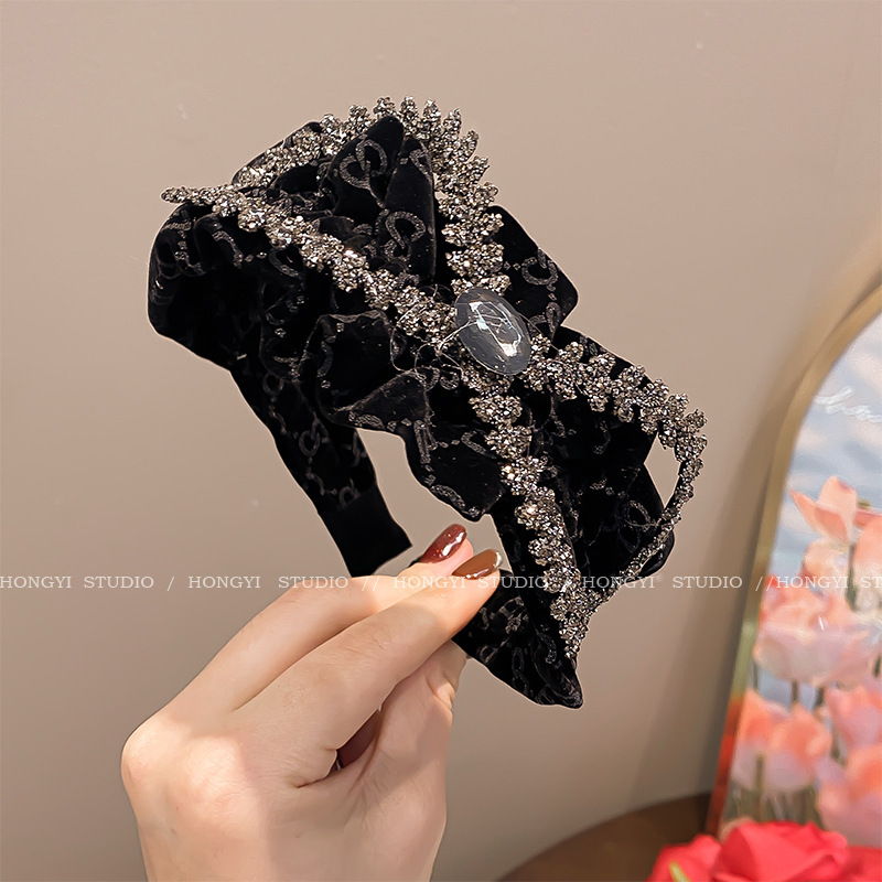 • 45 블랙 벨벳 라인스톤 리본 머리띠