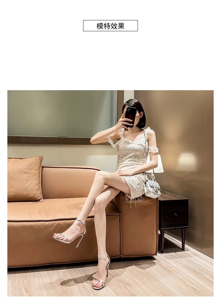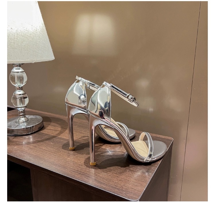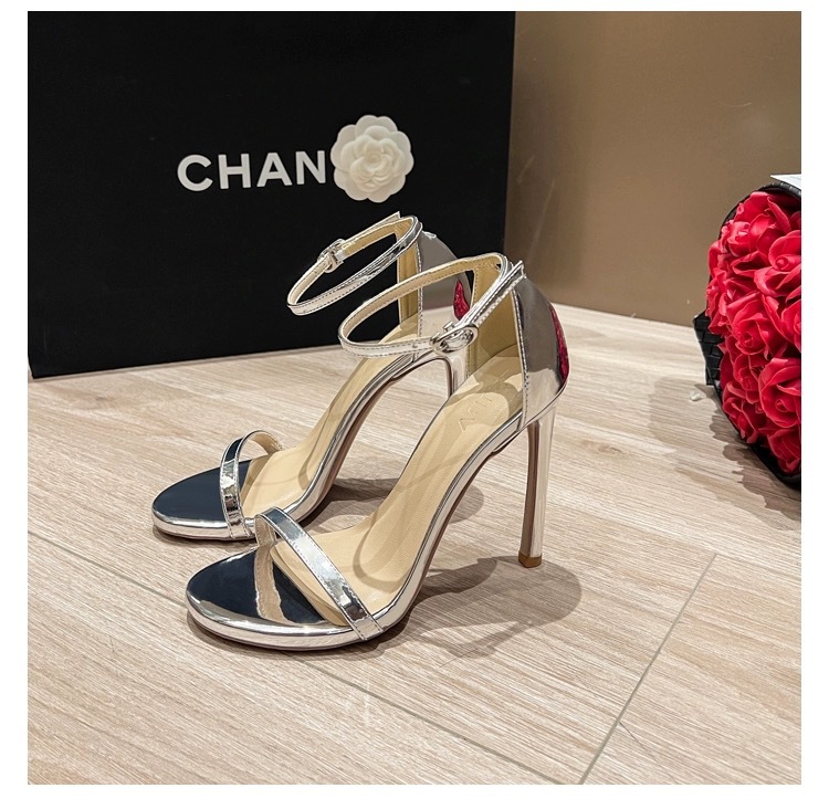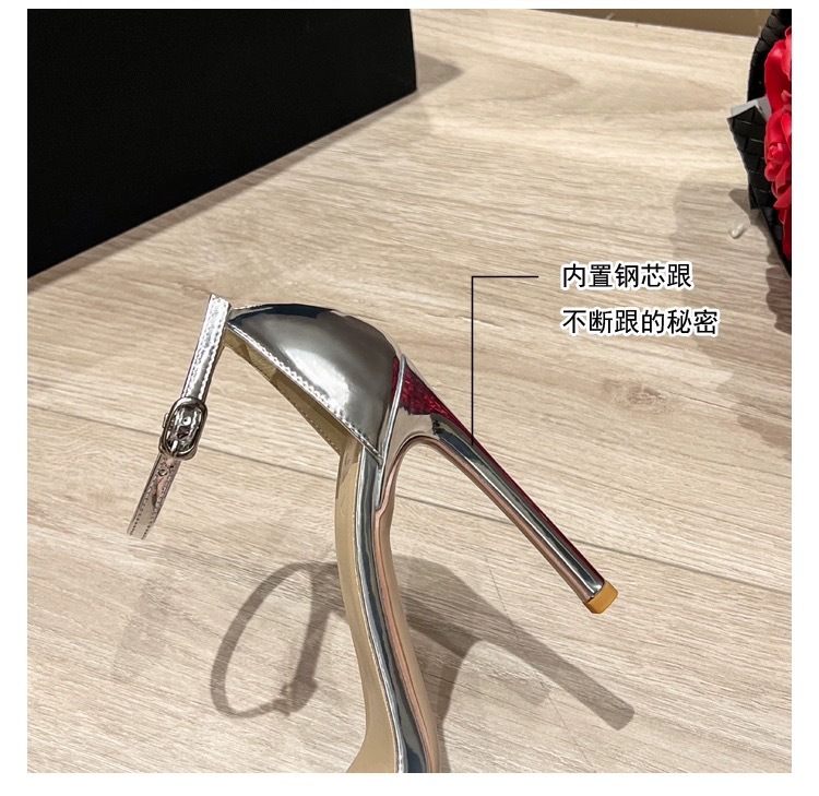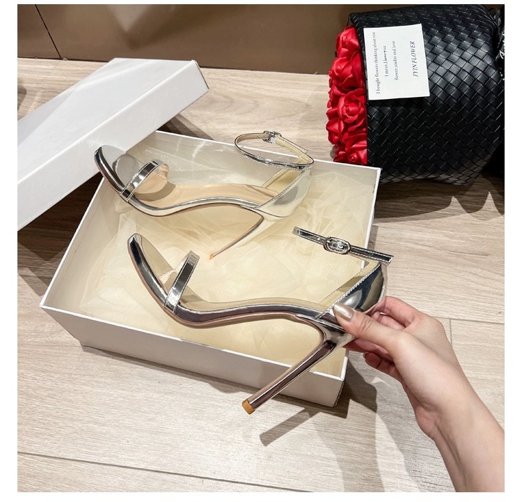 2024 년 여름 새로운 도착 실버 버클 스트랩 샌들 여자 얇은 힐 12cm 섹시한 올매치 아름다운 오픈 발가락 하이힐스토어 가기