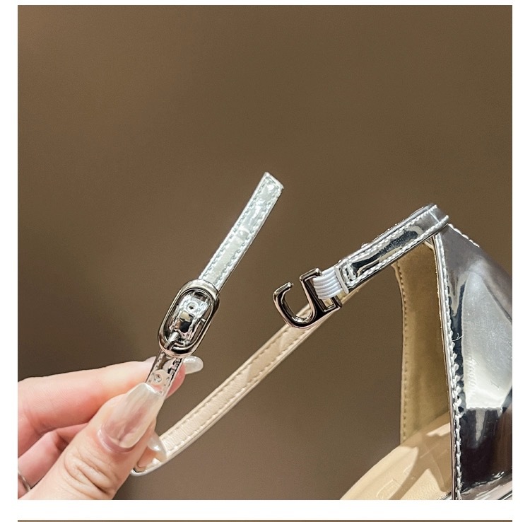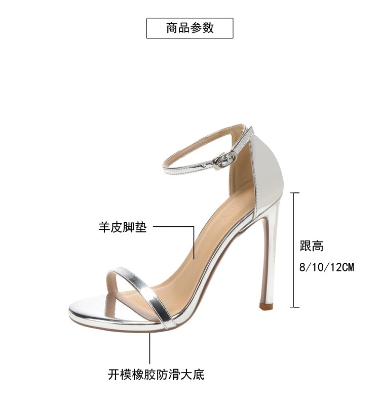 2024 년 여름 새로운 도착 실버 버클 스트랩 샌들 여자 얇은 힐 12cm 섹시한 올매치 아름다운 오픈 발가락 하이힐