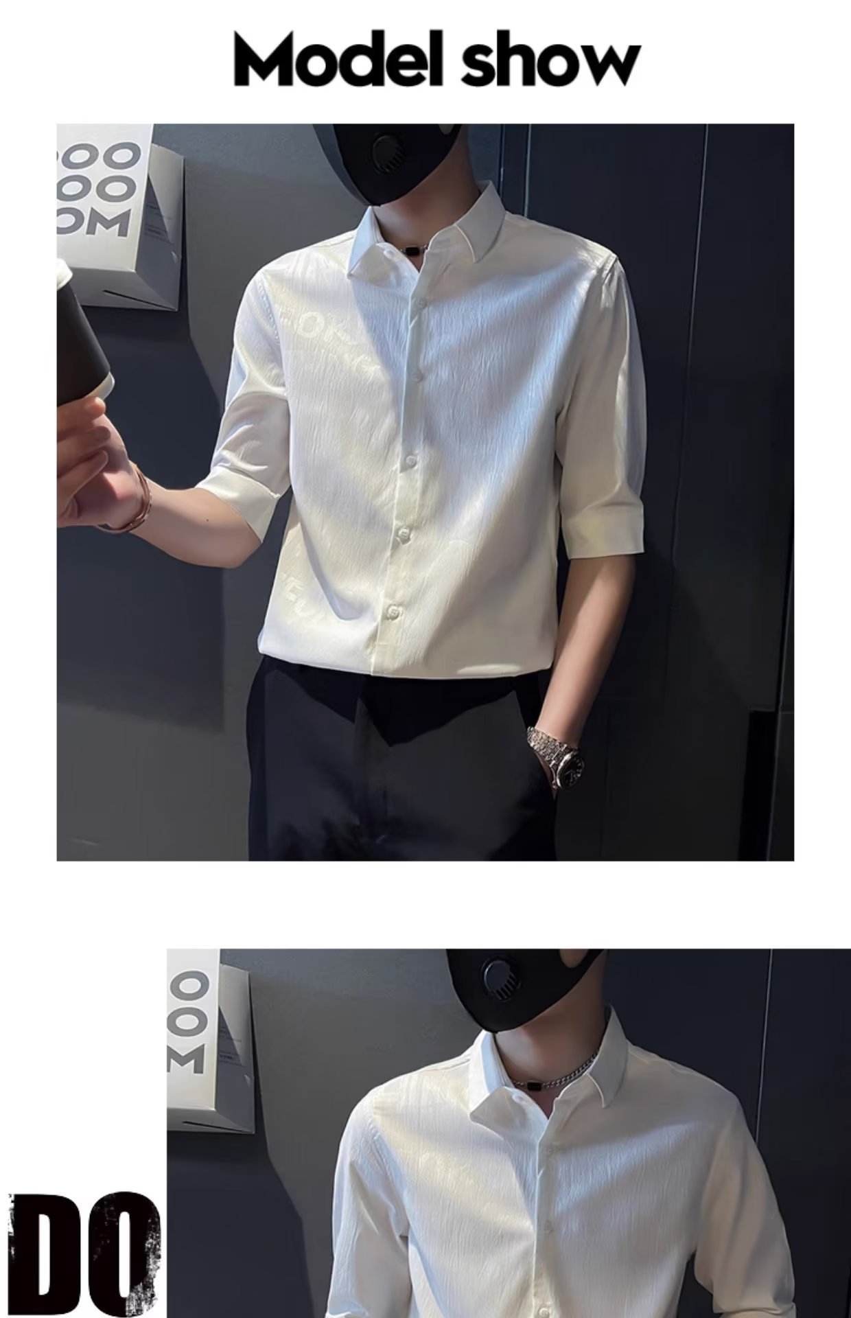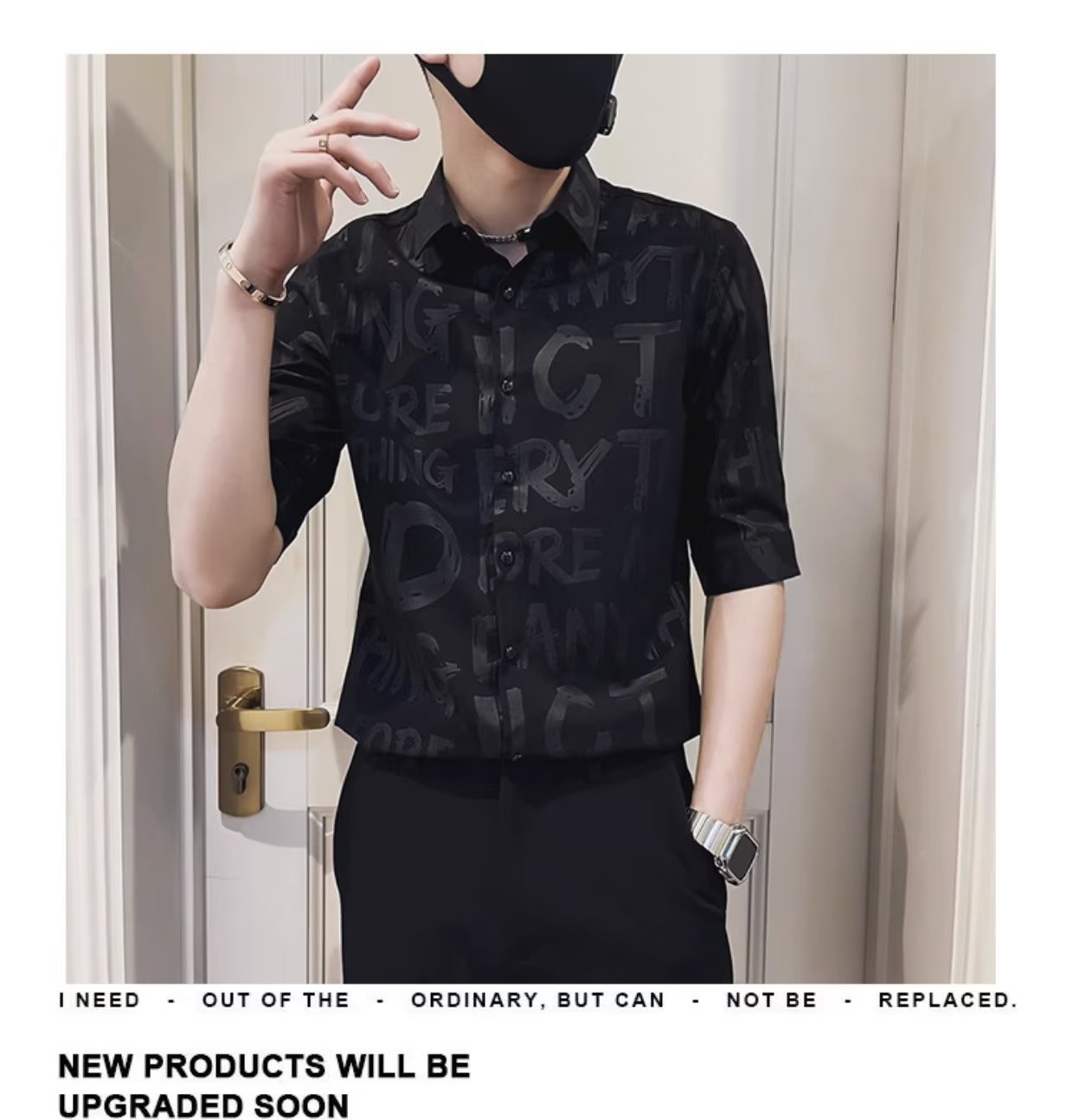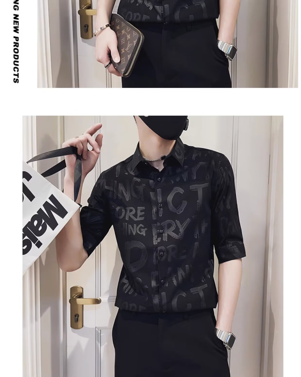 여름 새로운 도착 세븐 쿼터 슬리브 셔츠 남성용 센스 트렌디 한 야피 핸섬 슬림 레터 인쇄 트렌디 브랜드 옷깃 탑 셔츠
