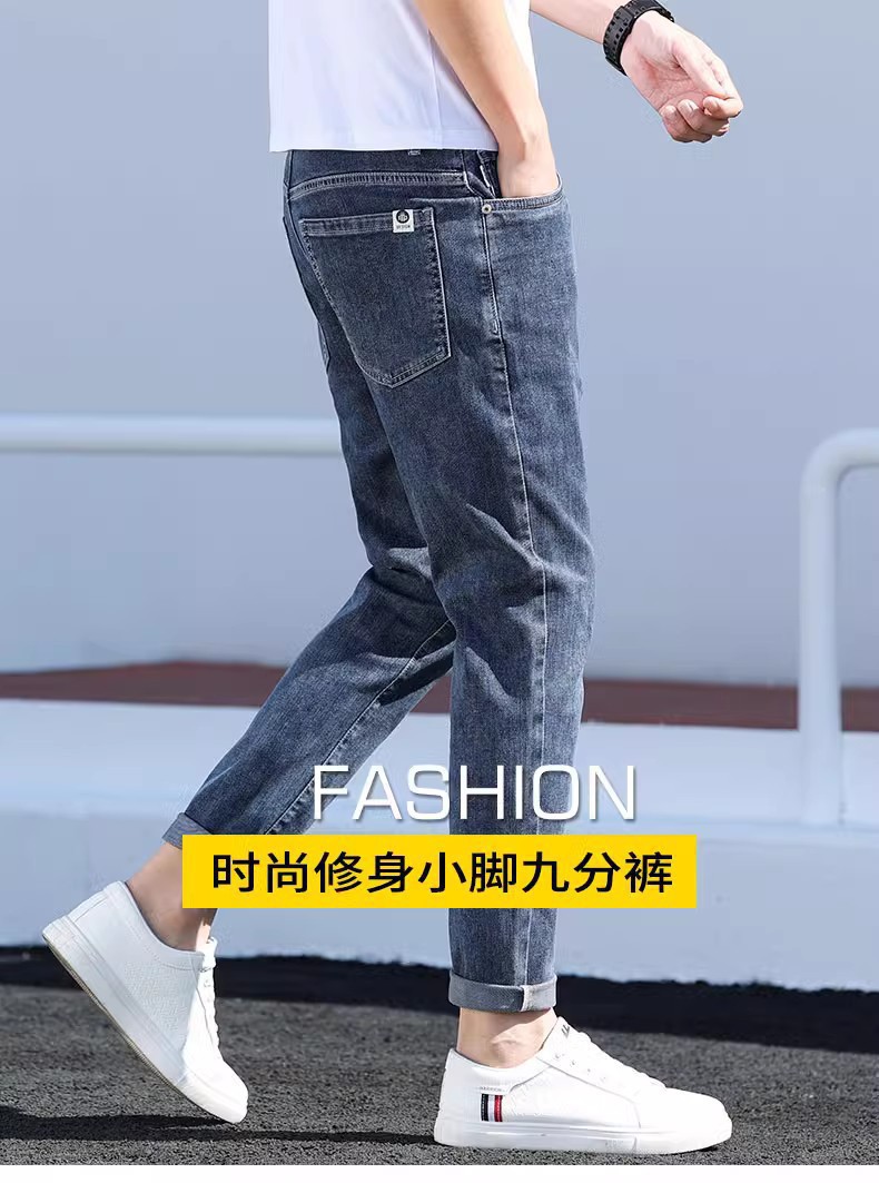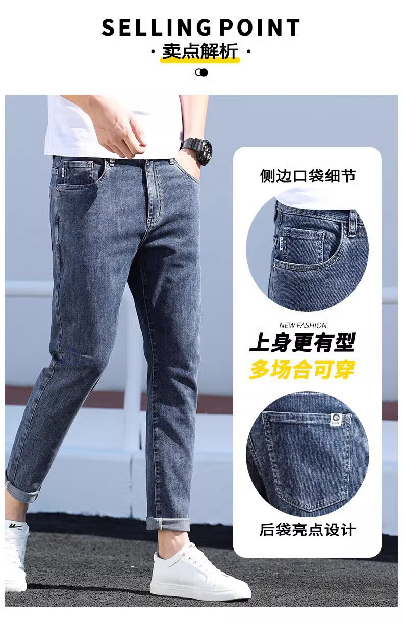 2023 새로운 봄과 여름 스트레치 청바지 남성 트렌디 브랜드 봄과 가을 남성 스트레이트 슬림 핏 스키니 바지스토어 가기